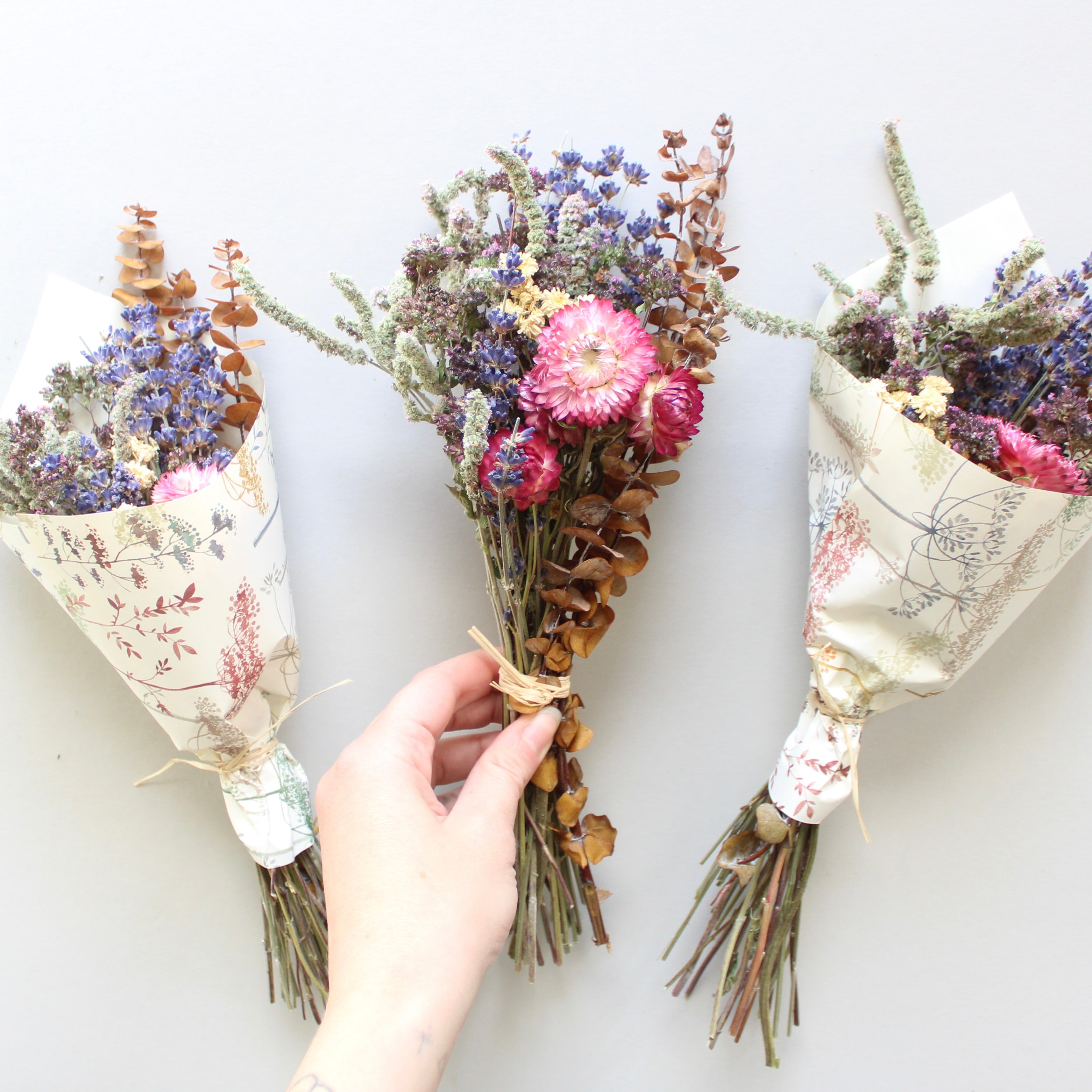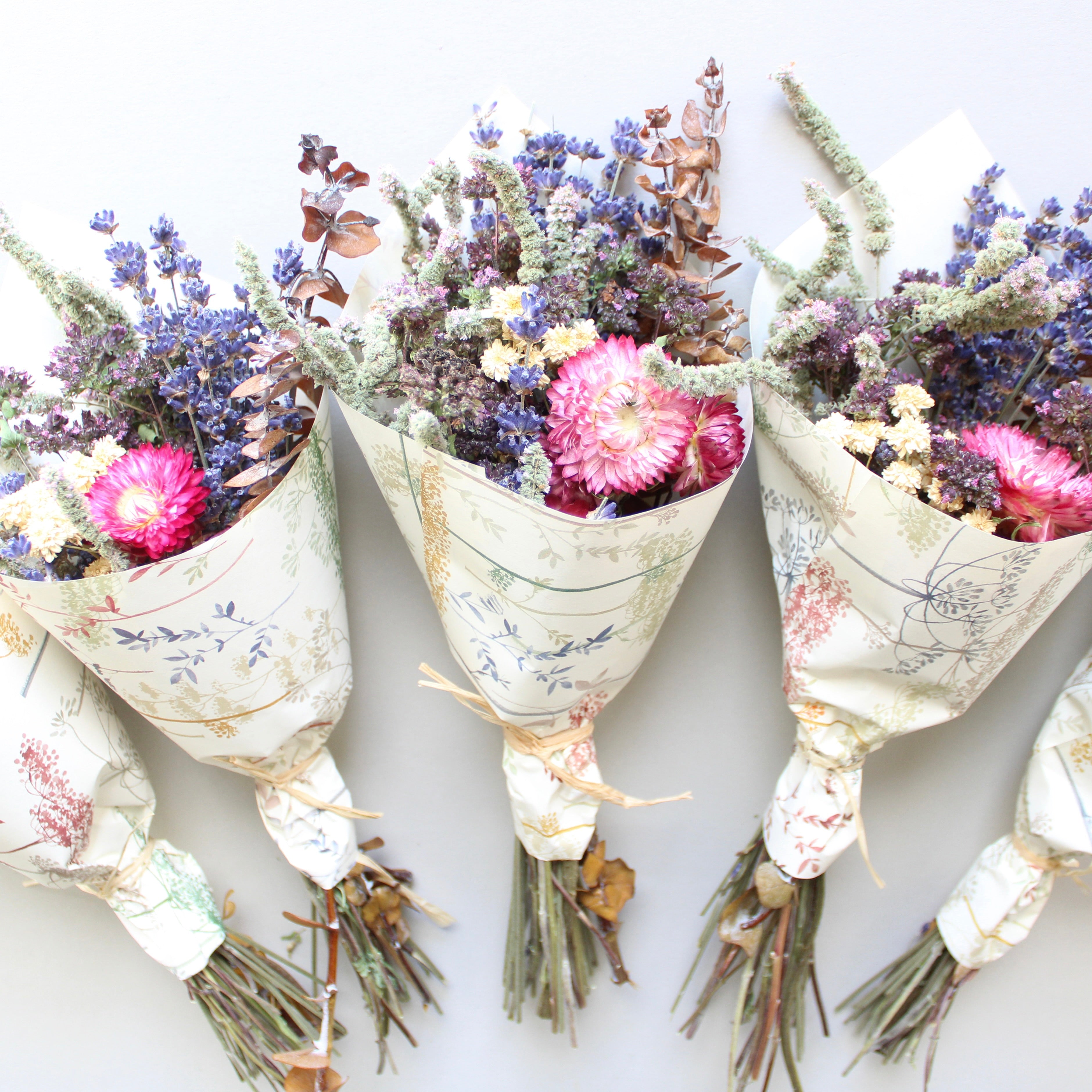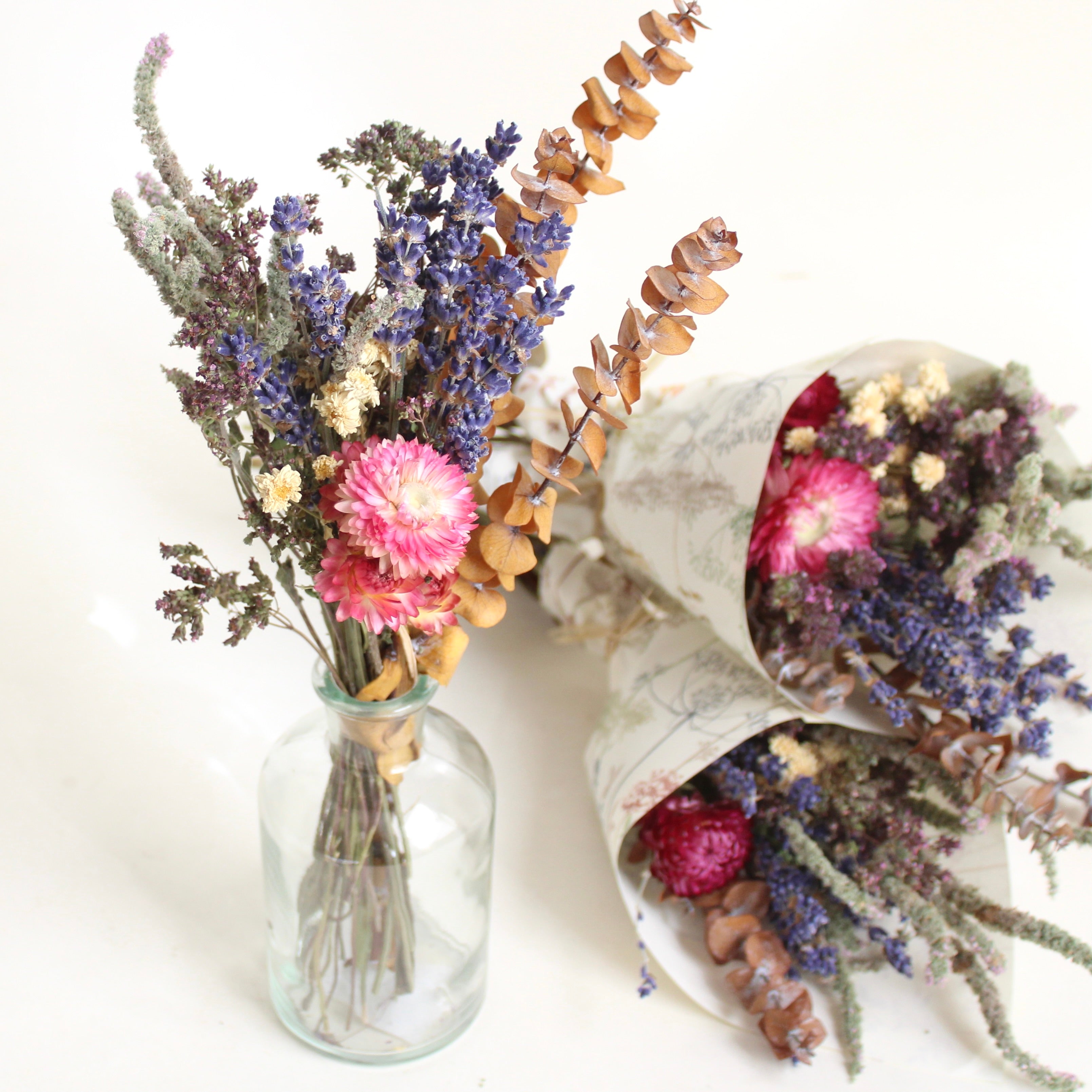 Petite Fragrant Garden Bouquet features eucalyptus, mountain mint, lavender, immortelle, strawflower, and apple mint.