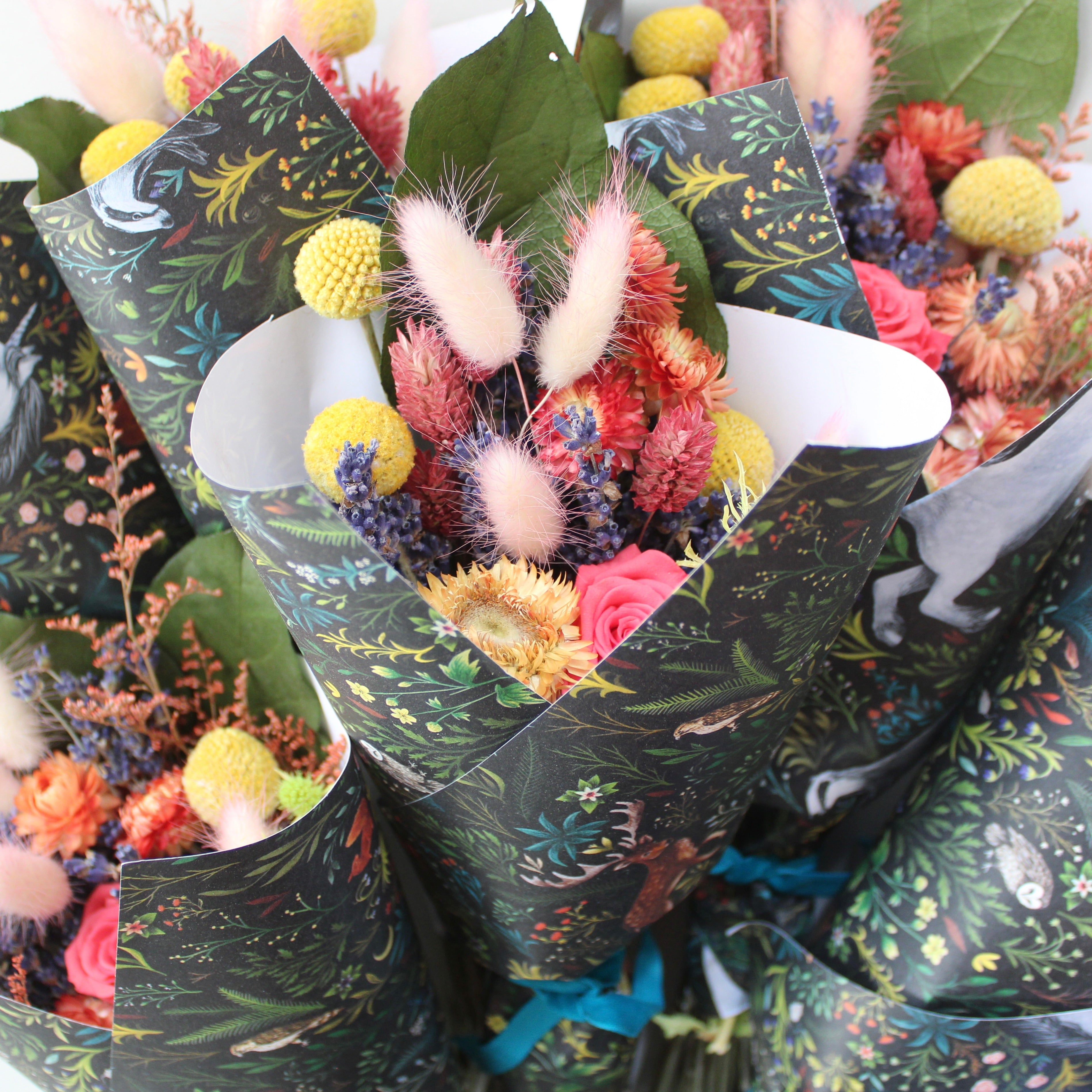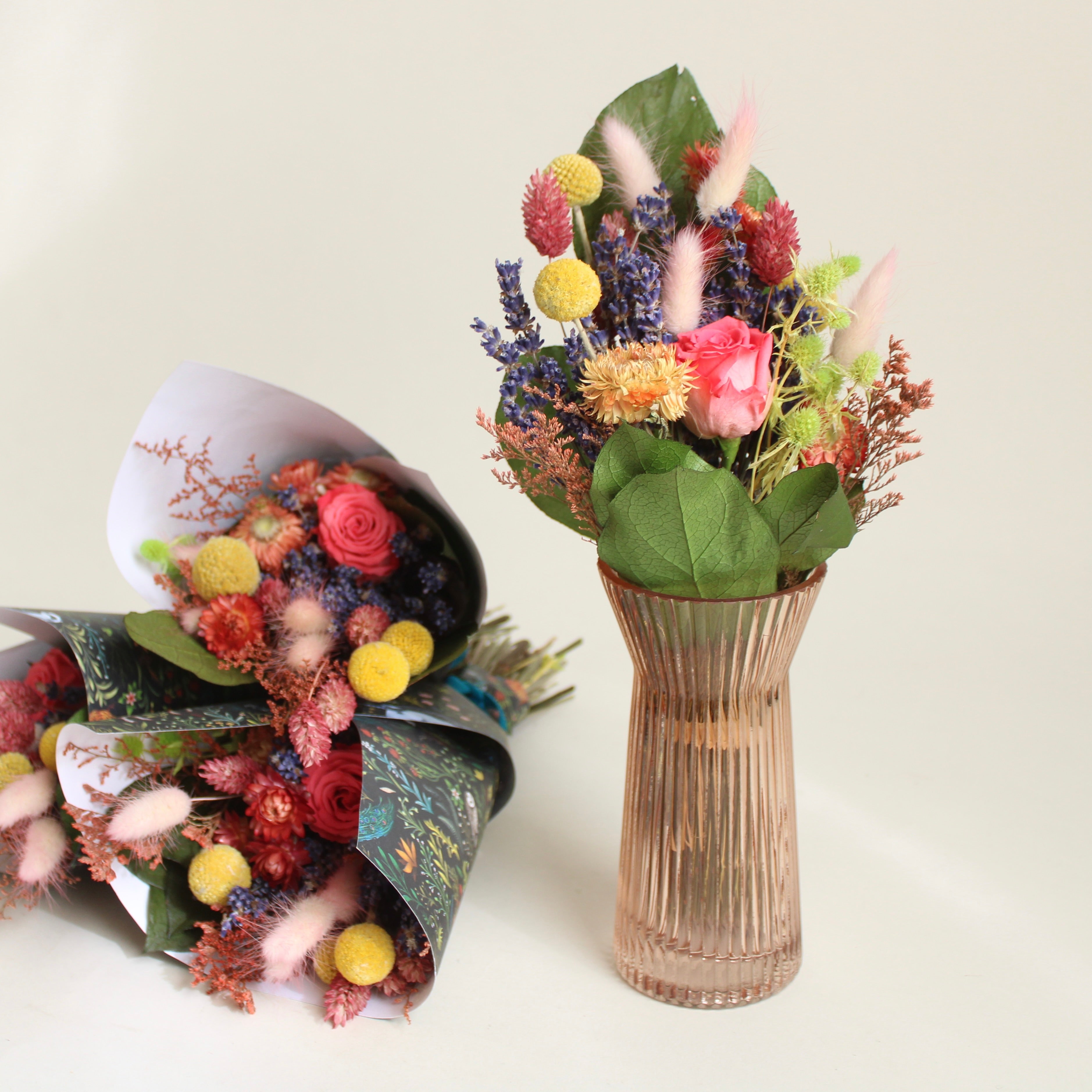 Dried flowers offer a long-lasting, low maintenance option that don't require water or refrigeration making their environmental impact far less than their fresh counterparts.