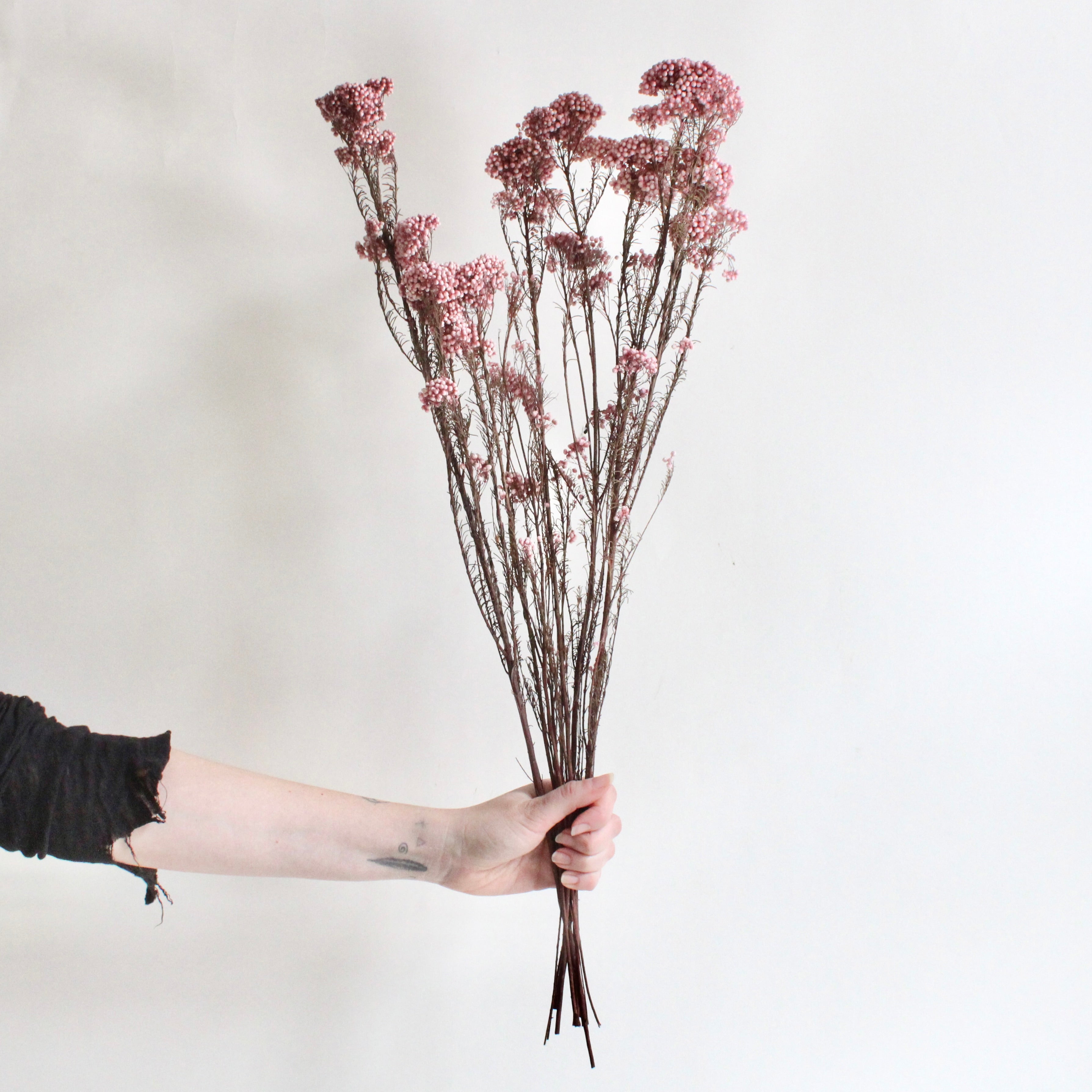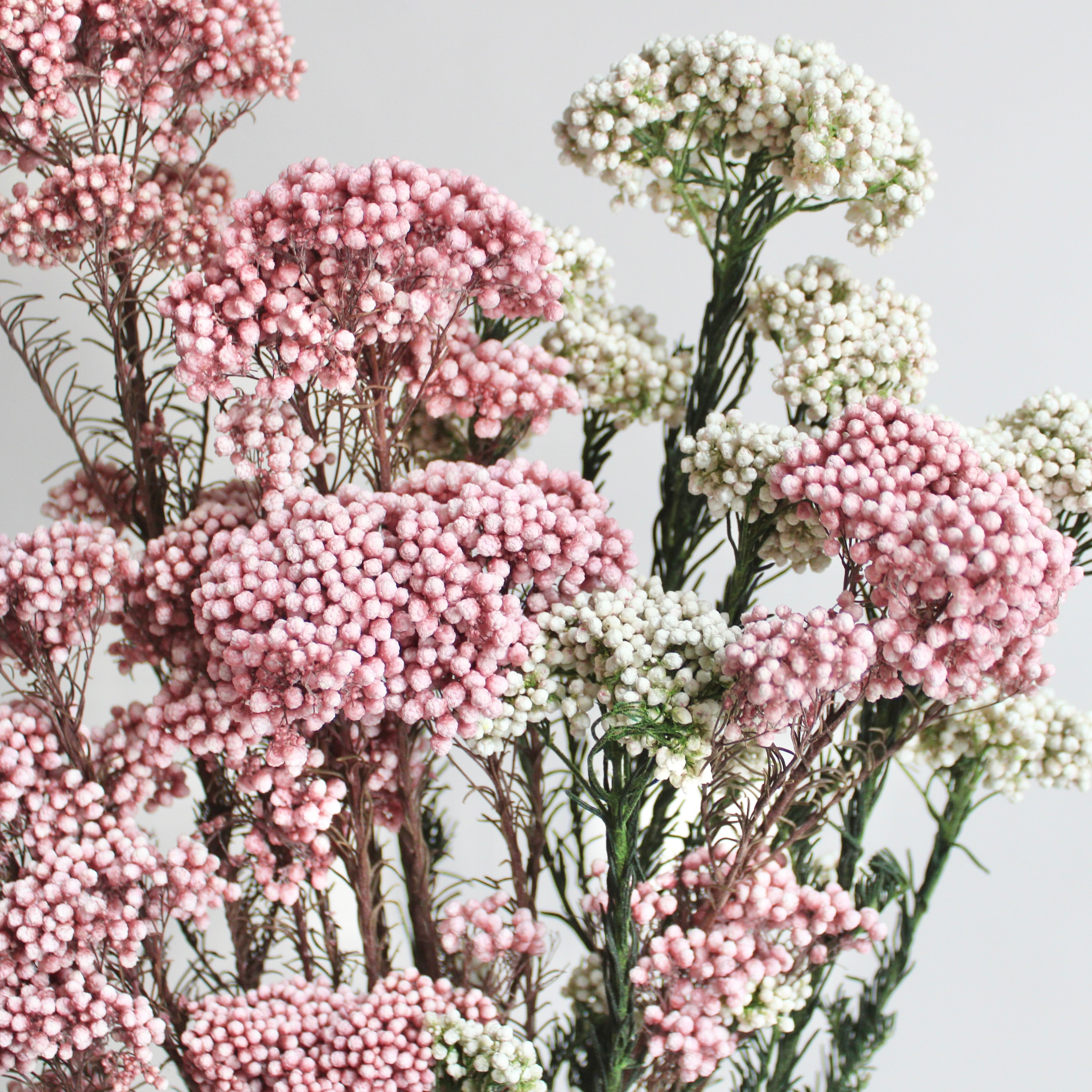 This Australia native has found its way to Roxanne's Dried Flowers. Sure to last, the preserved rice flower is pliable enough to arrange with ease. Compliment other flower heads by using as a lush filler, while perfectly capable of standing alone. The cream flower offers versatility for a wide range of color palettes and moods, while the pink stands out amongst greenery.