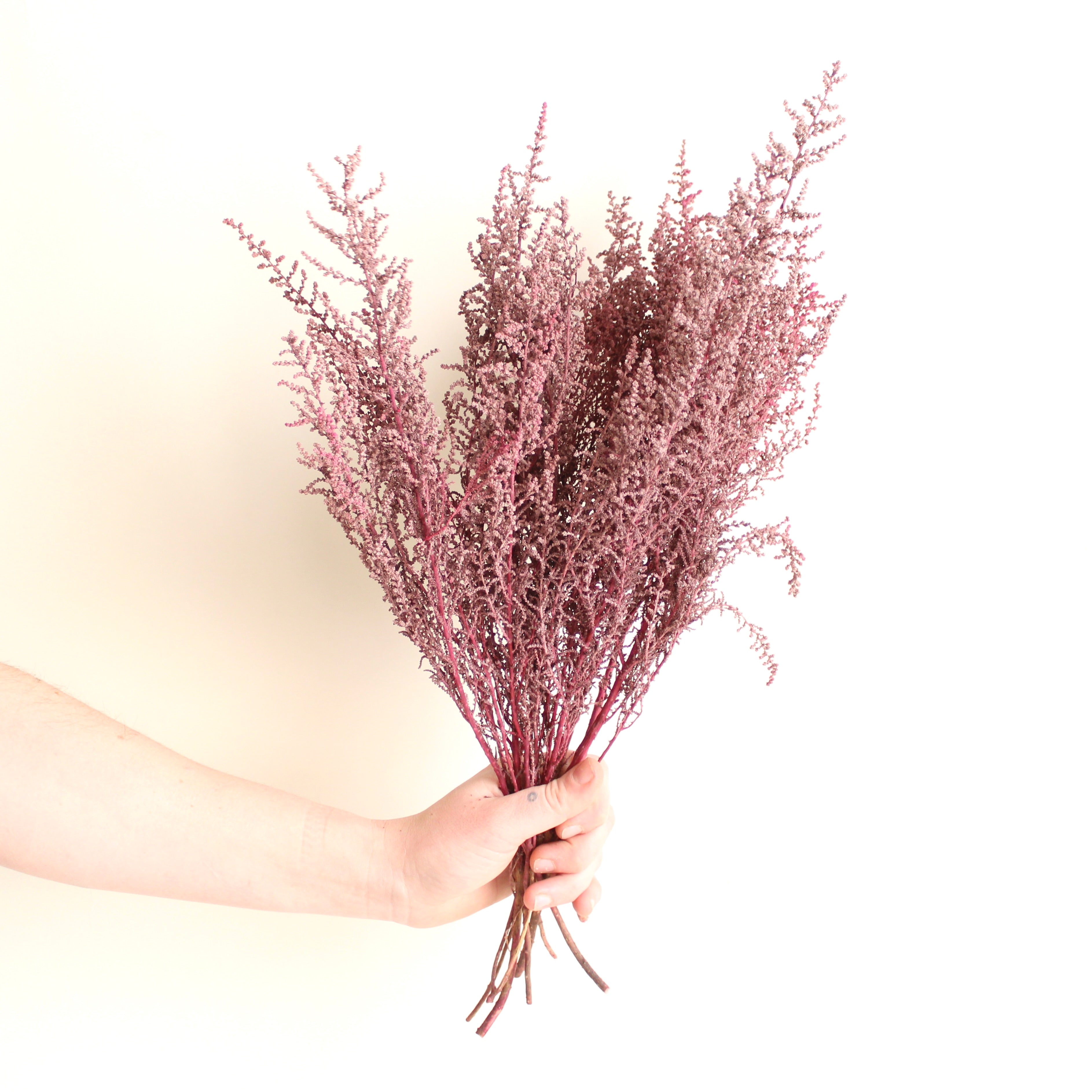 Native to Africa, Stoebe Plumosa has been dyed and preserved for arranging ease. This pliable foliage will seamlessly work itself into new and past creations alike. Use Stoebe for adding wisps of movement reaching out from clustered flowers in arrangements, wreaths, and bouquets.