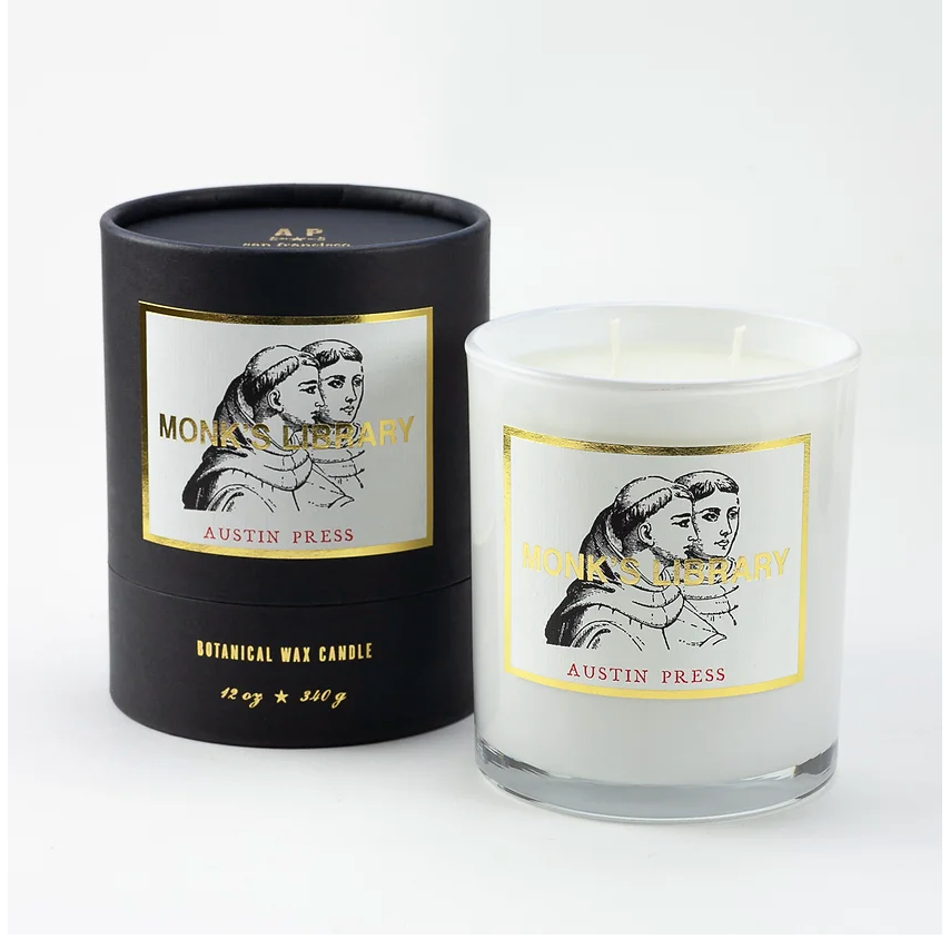 The Monks live on a quiet hillside sanctuary where they are dedicated to prayer, song, and study without interruption. To those outside the cloister walls, these men are a mystery. But that suits them well. Bergamot, lemon, and mint cover the field just beyond the only window that gives light to the library. Handmade incense of lavender, geranium, sage, and clove fill the room. Rich cedar and balsam shelves house the collection of ancient books providing the perfect ambiance for pensive contemplation.