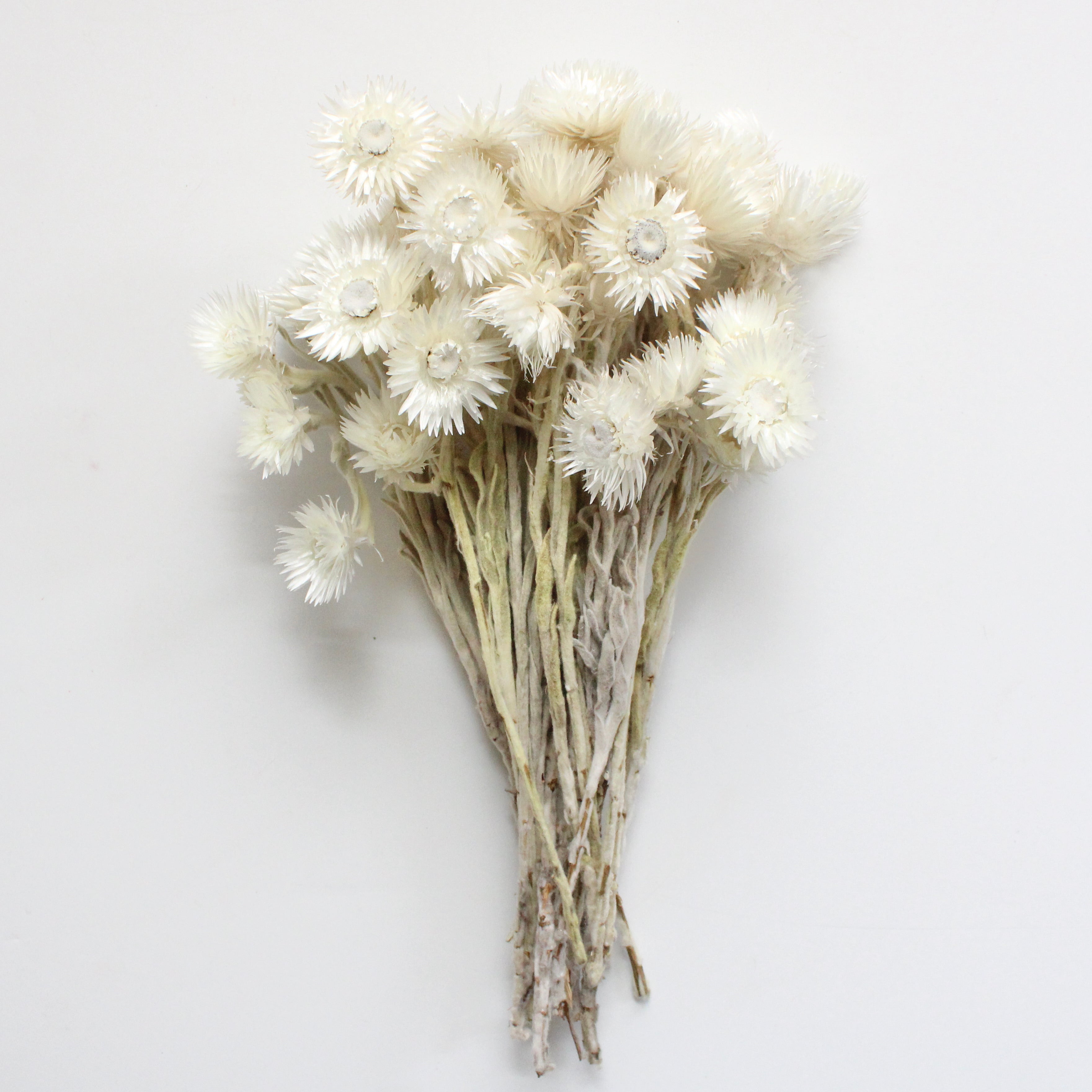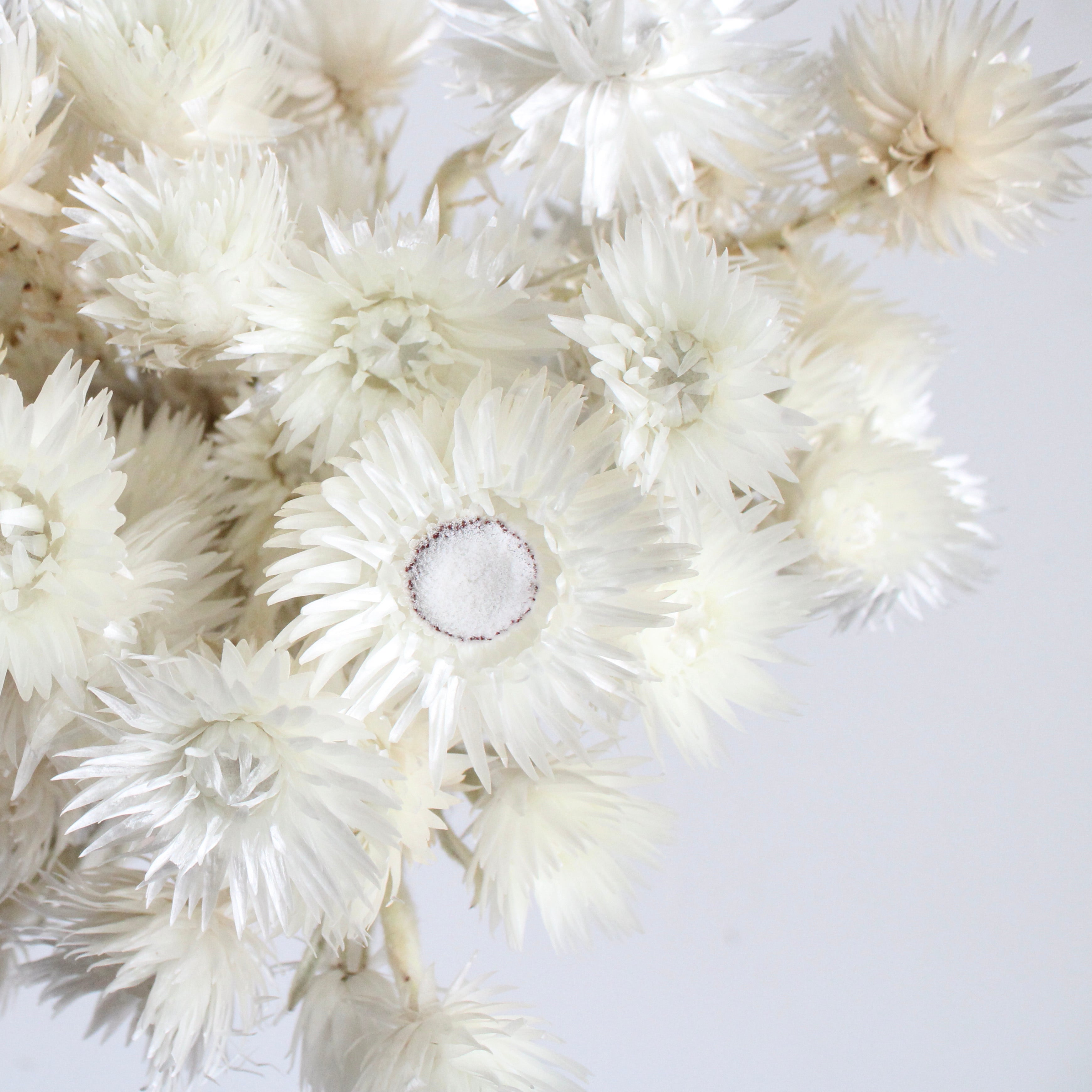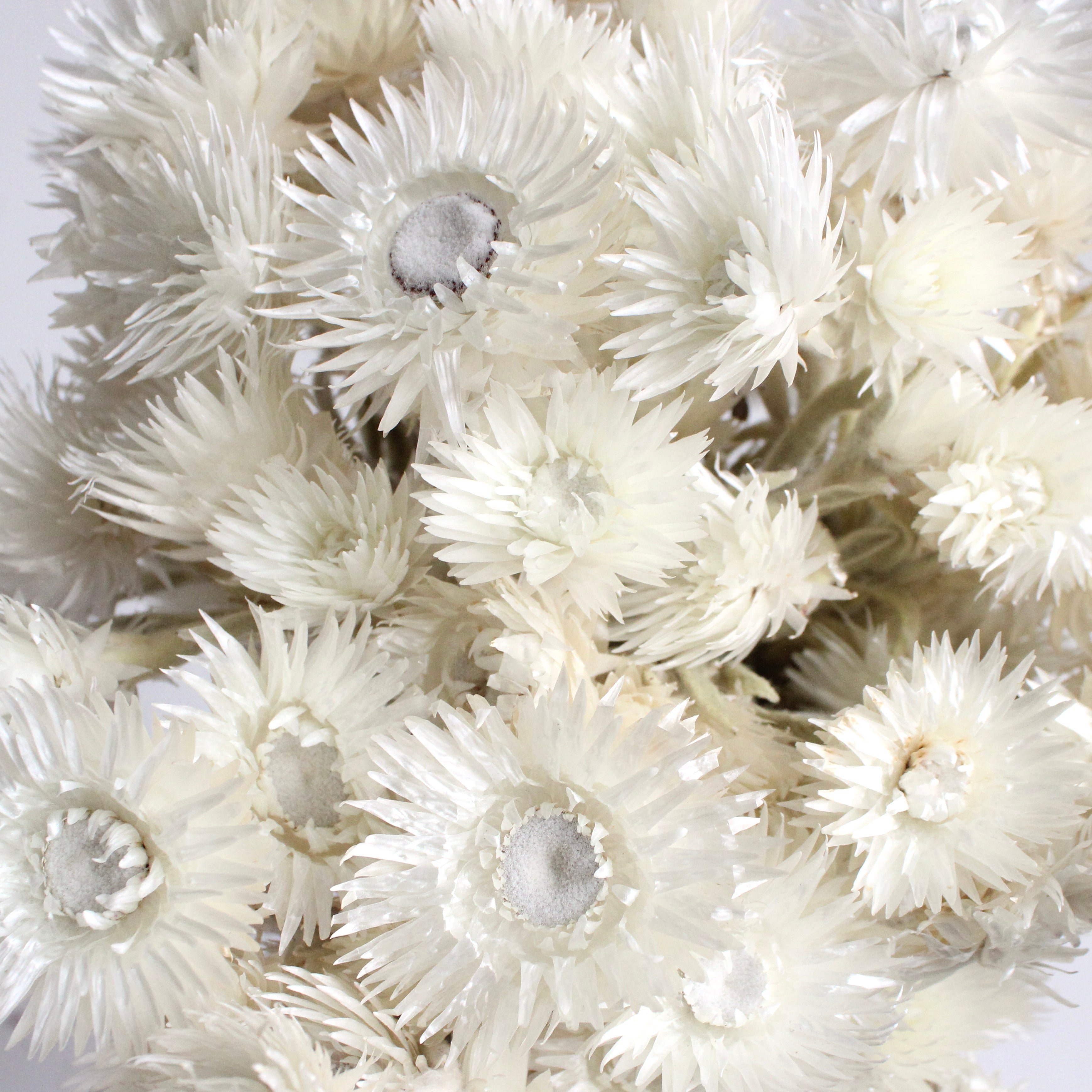 Brighten arrangements with white, feathery blooms of Everlasting. The shade of the flower will pop when mixed with other flora and foliage, or use in a monochromatic arrangement with other whites and creams.