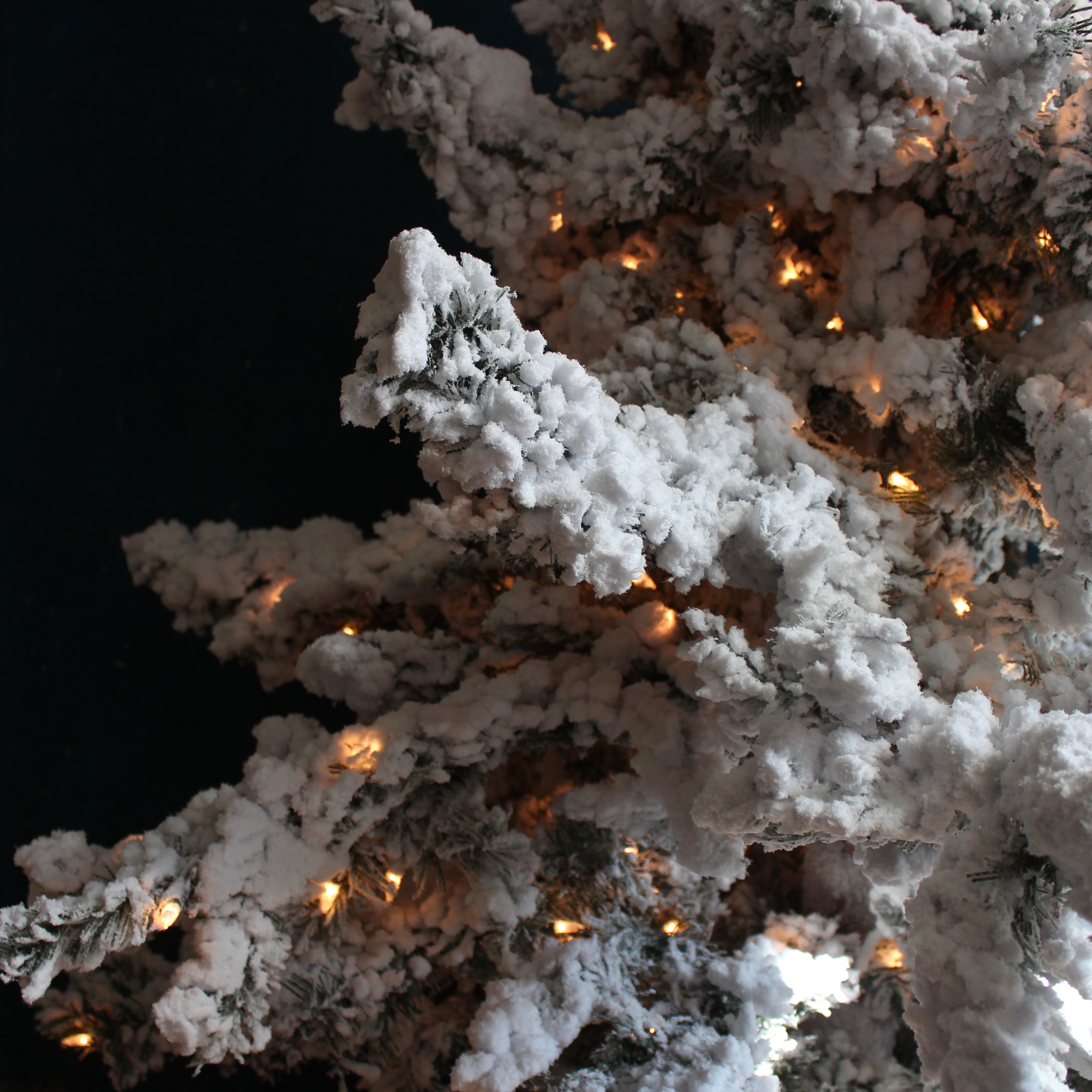 Be merry, be bright! These classic holiday trees are covered in faux snow and pre-lit for an effortless holiday display.