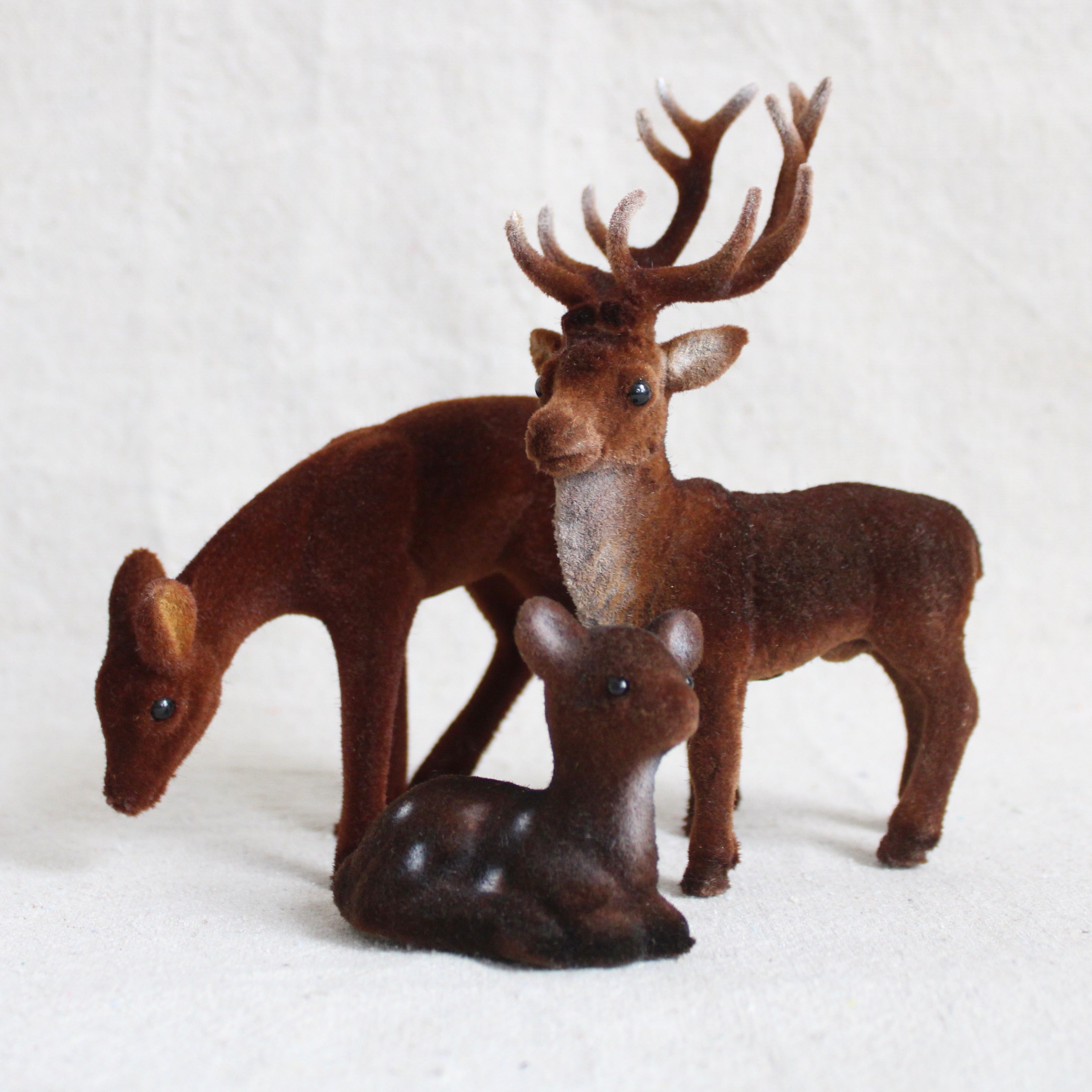 Add a festive family of flocked deer to your holiday collection. They'll nestle in perfectly between boughs and baubles.