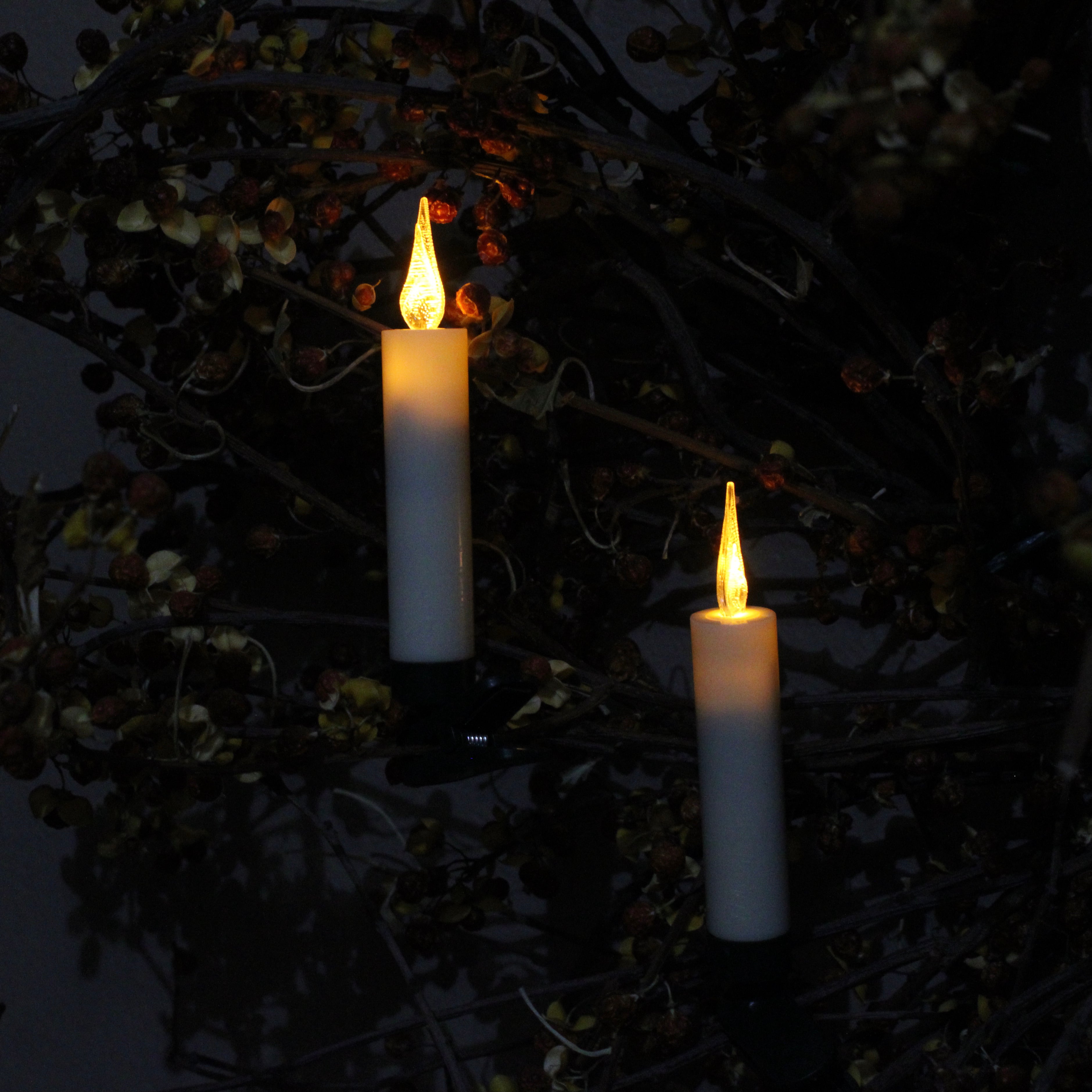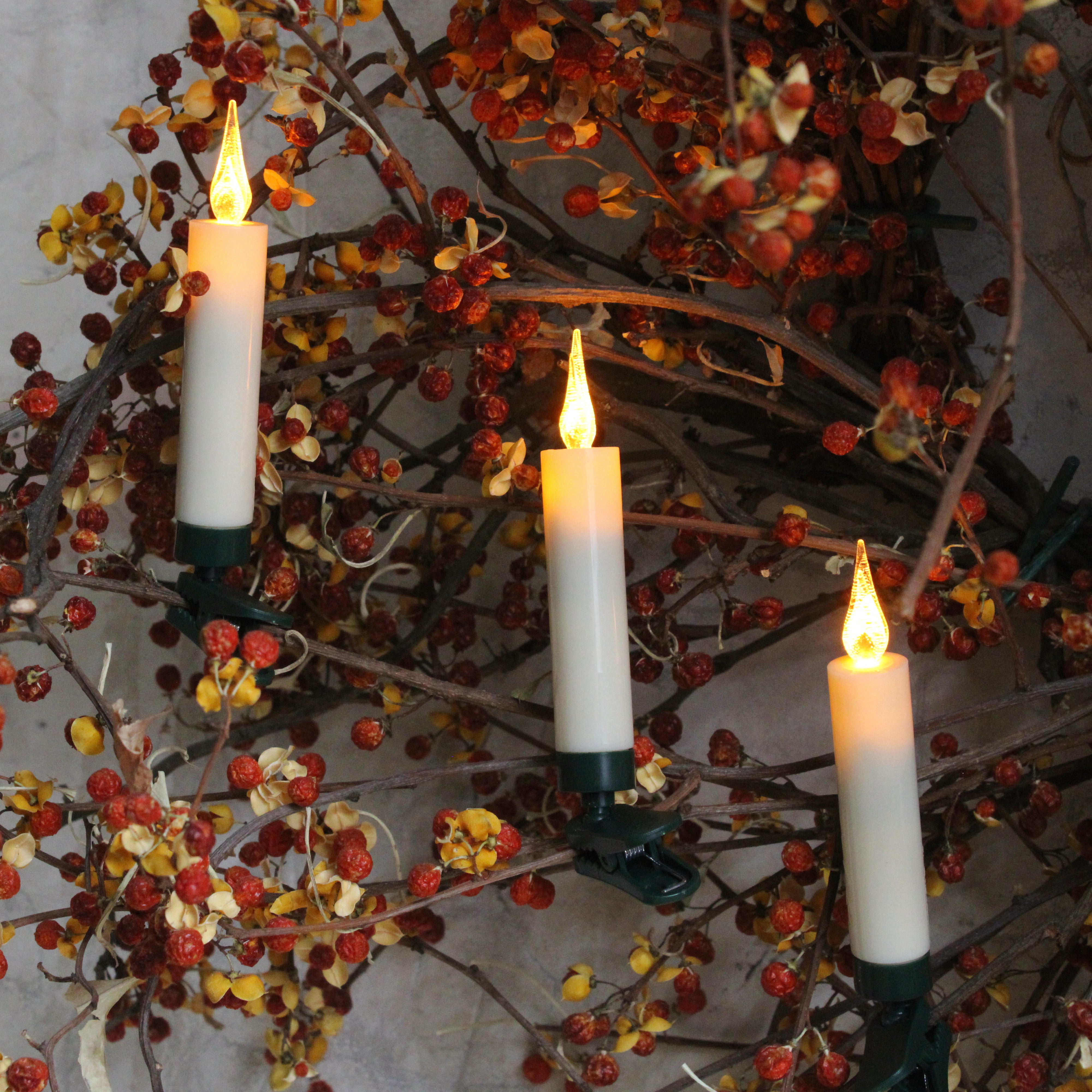 Illuminate your tree with adjustable clip-on LED lights, designed to mirror the soft flicker of festive candlelight.