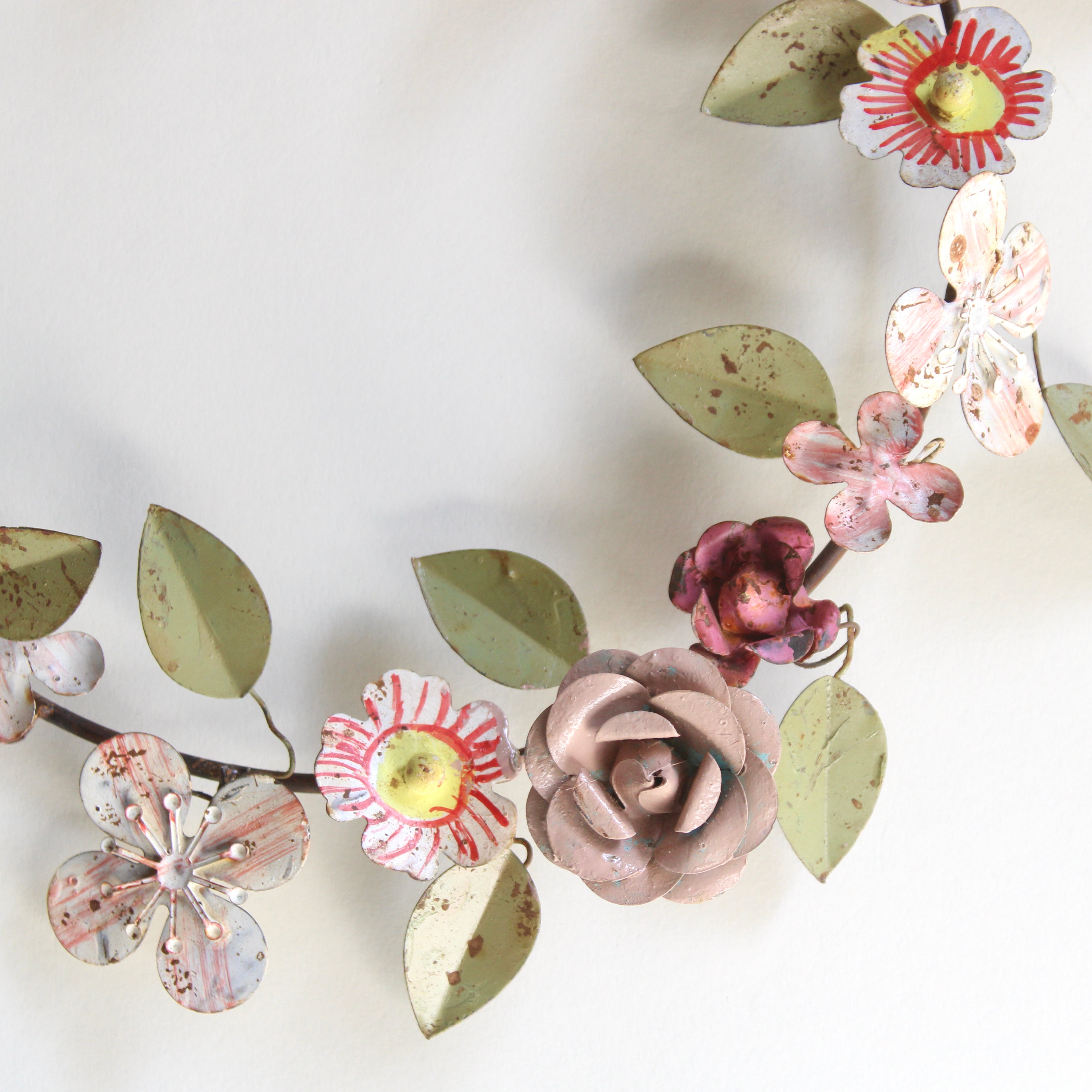 Something small, floral, and everlasting to brighten up a room or door. This sweet wreath features metal flowers and leaves, each adjustable to display just as you like. Bring flowers into year-round decor or save for a festive springtime collection.