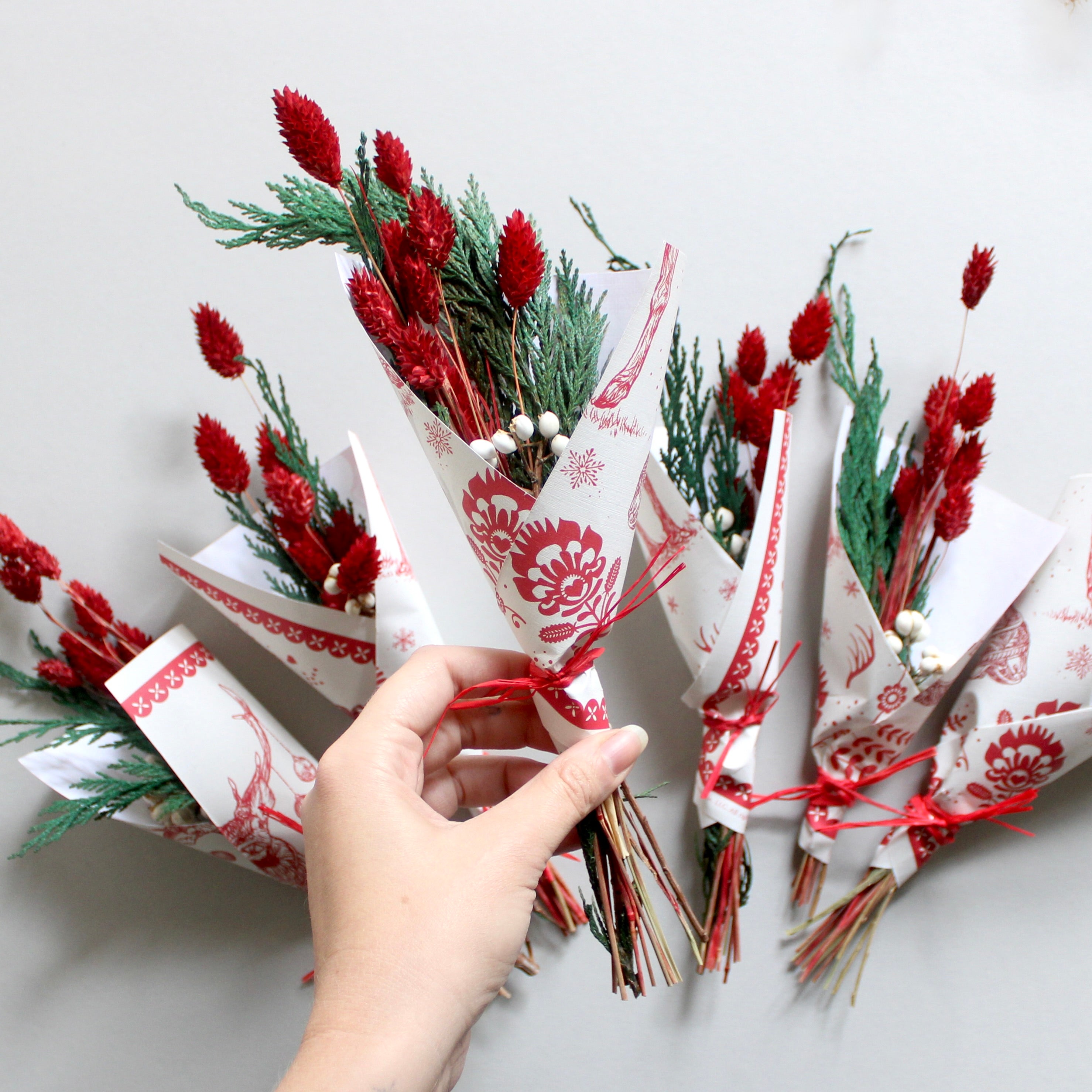 Mini Be Merry Bouquet features cedar, phalaris, and tallow berry.