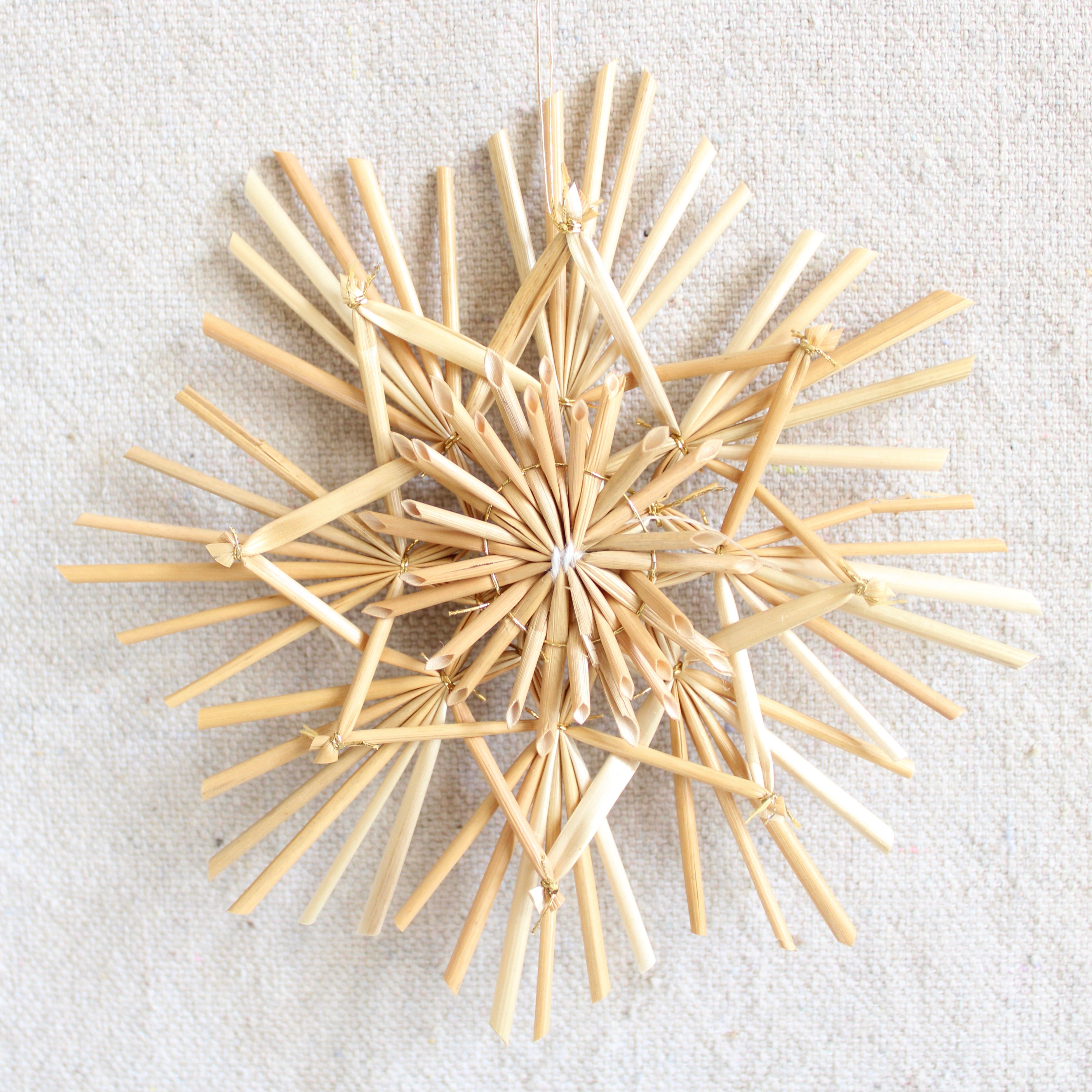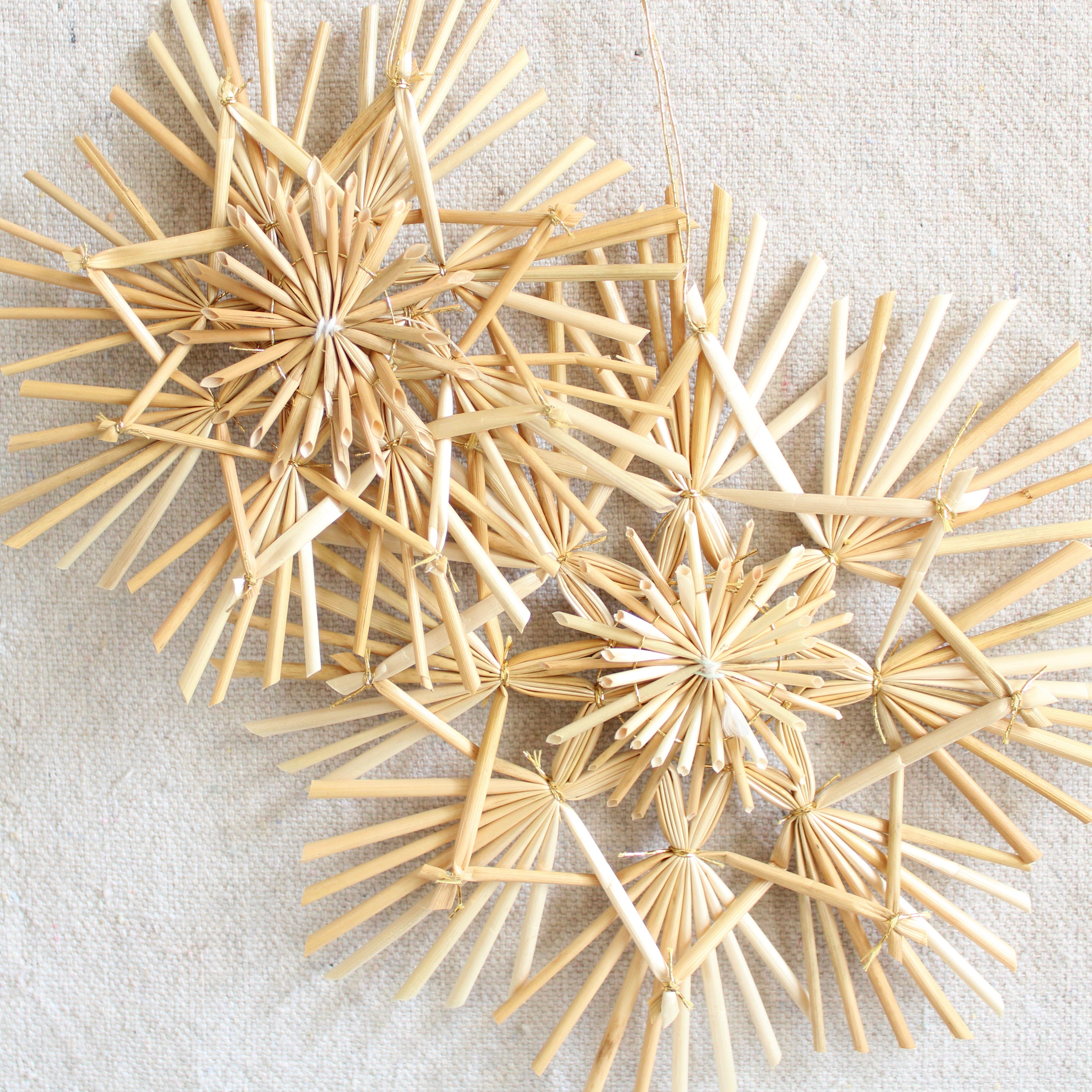 Natural Straw Stars exude a Scandinavian vibe for a hygge holiday. The two petites are perfect for hanging on the tree, while the large star is perfect for making a statement on a door or wall.
