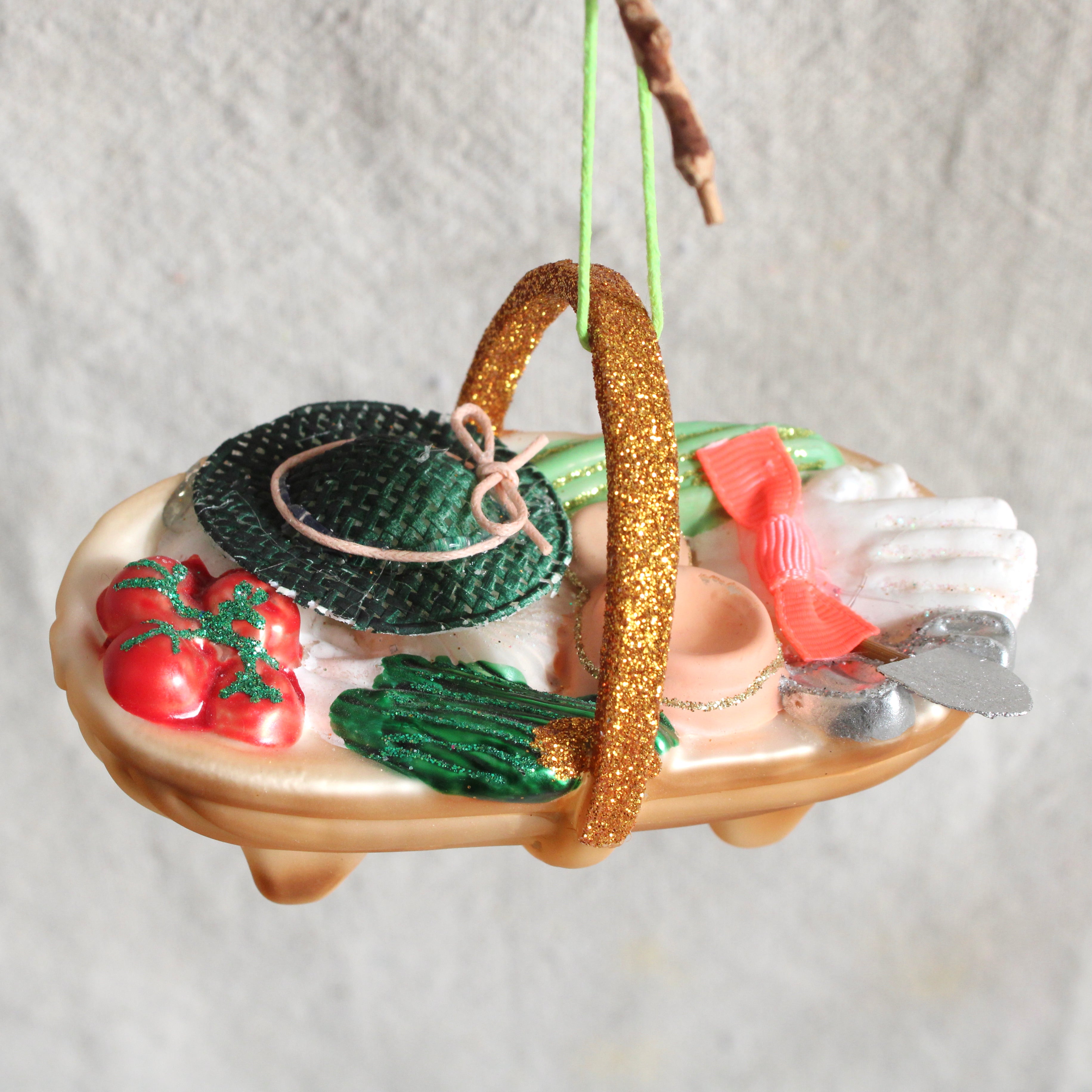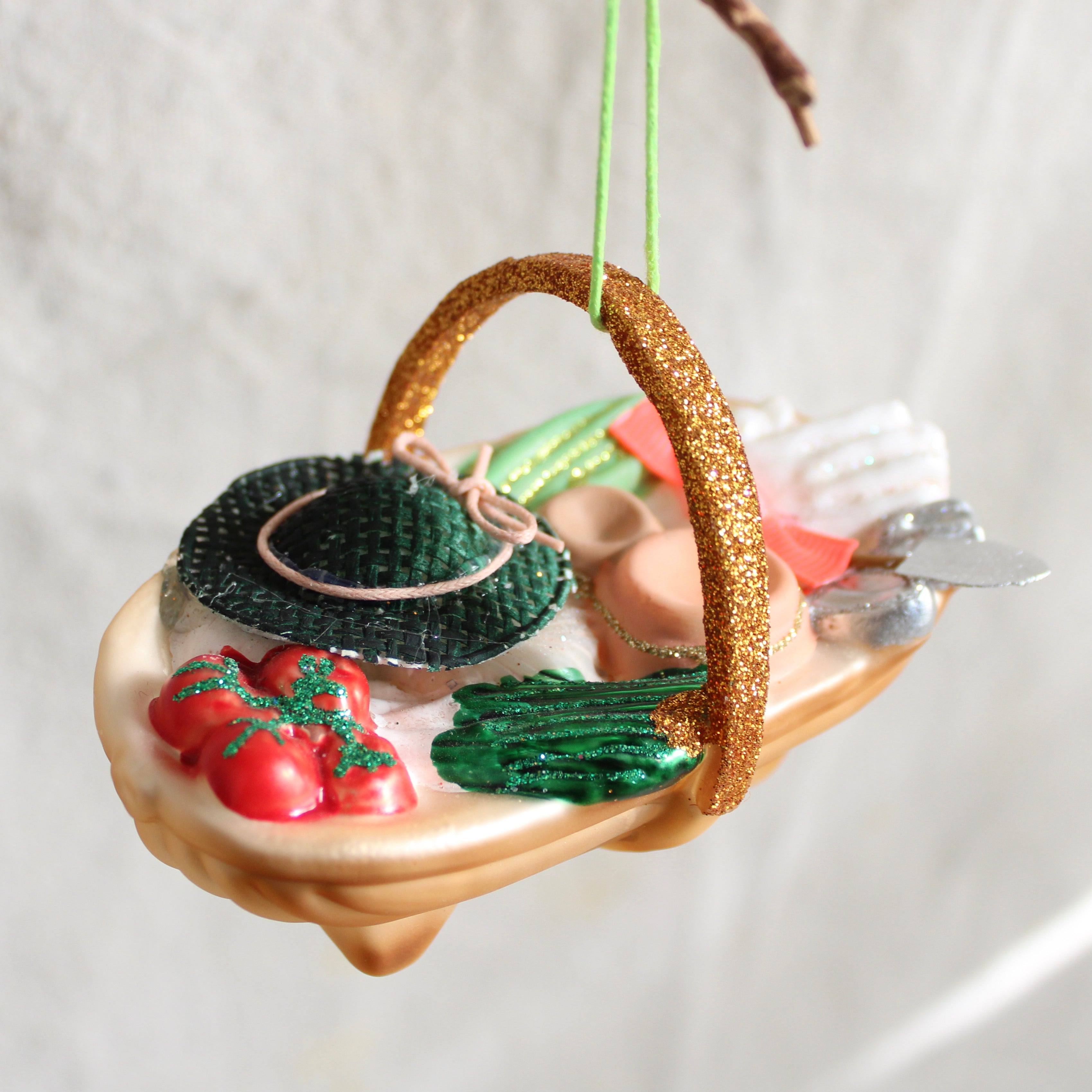 The sweetest little garden themed ornament! A trug filled with all of the essentials every gardener is sure to recognize.
