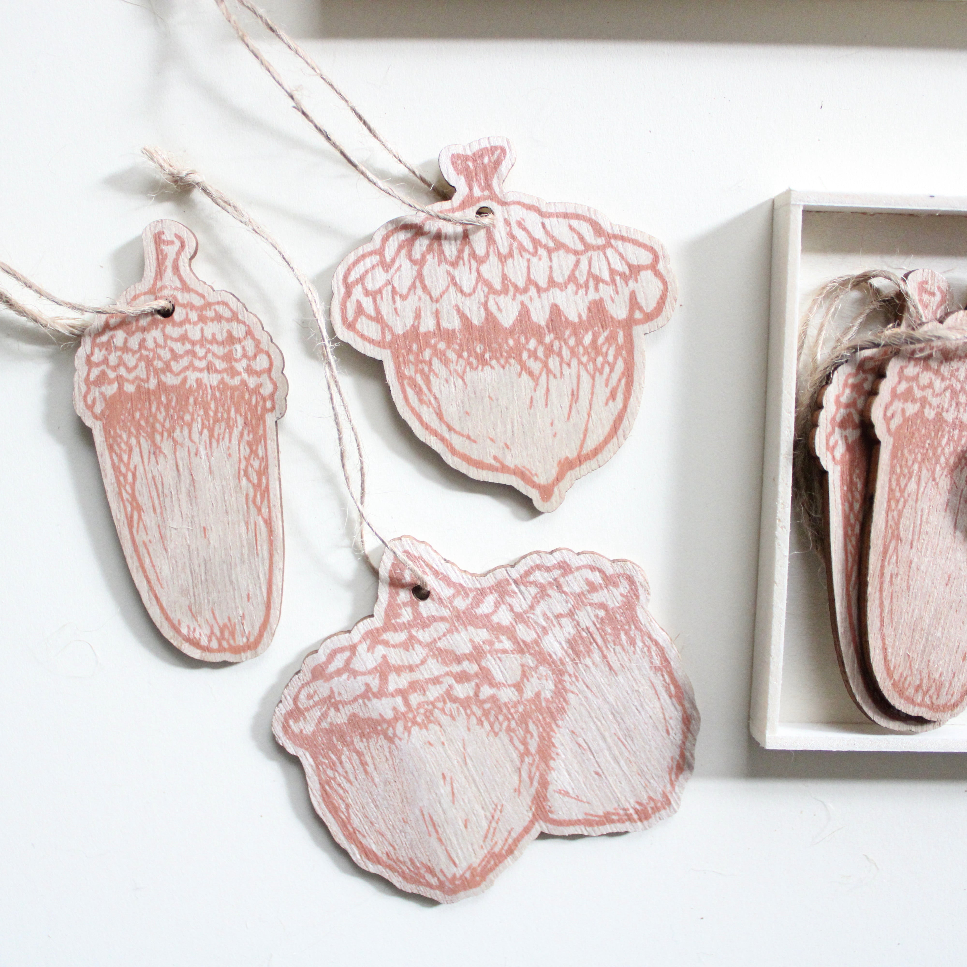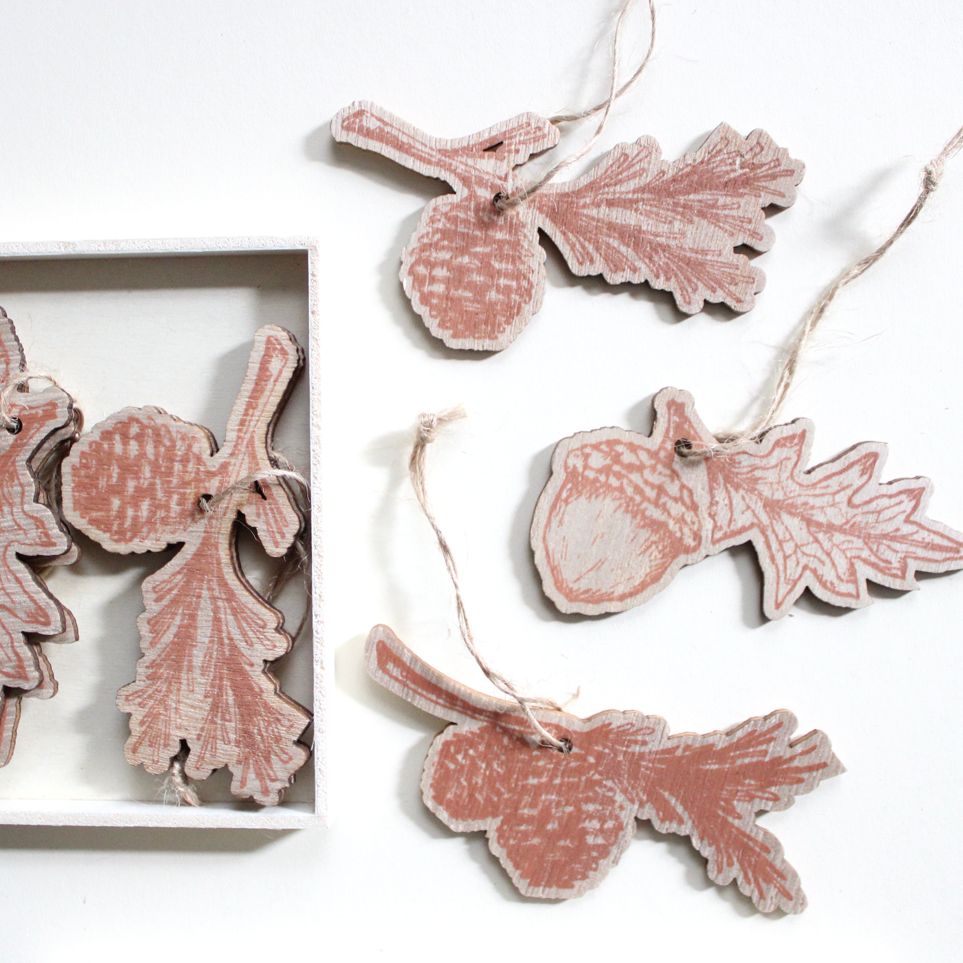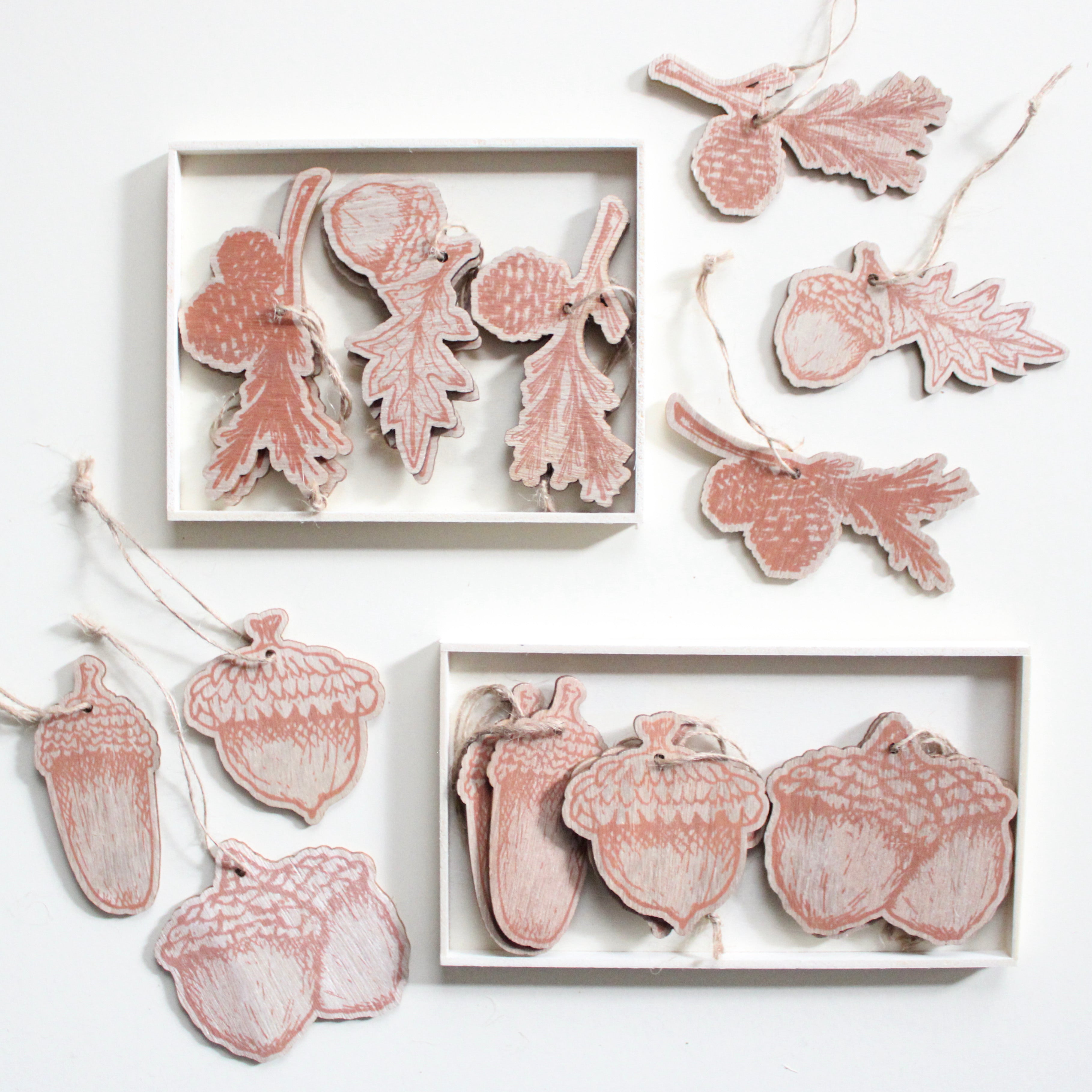 Spruce up your tree with a collection of acorns and pinecones! Each set of 9 features 3 different designs to gift or display this holiday season.