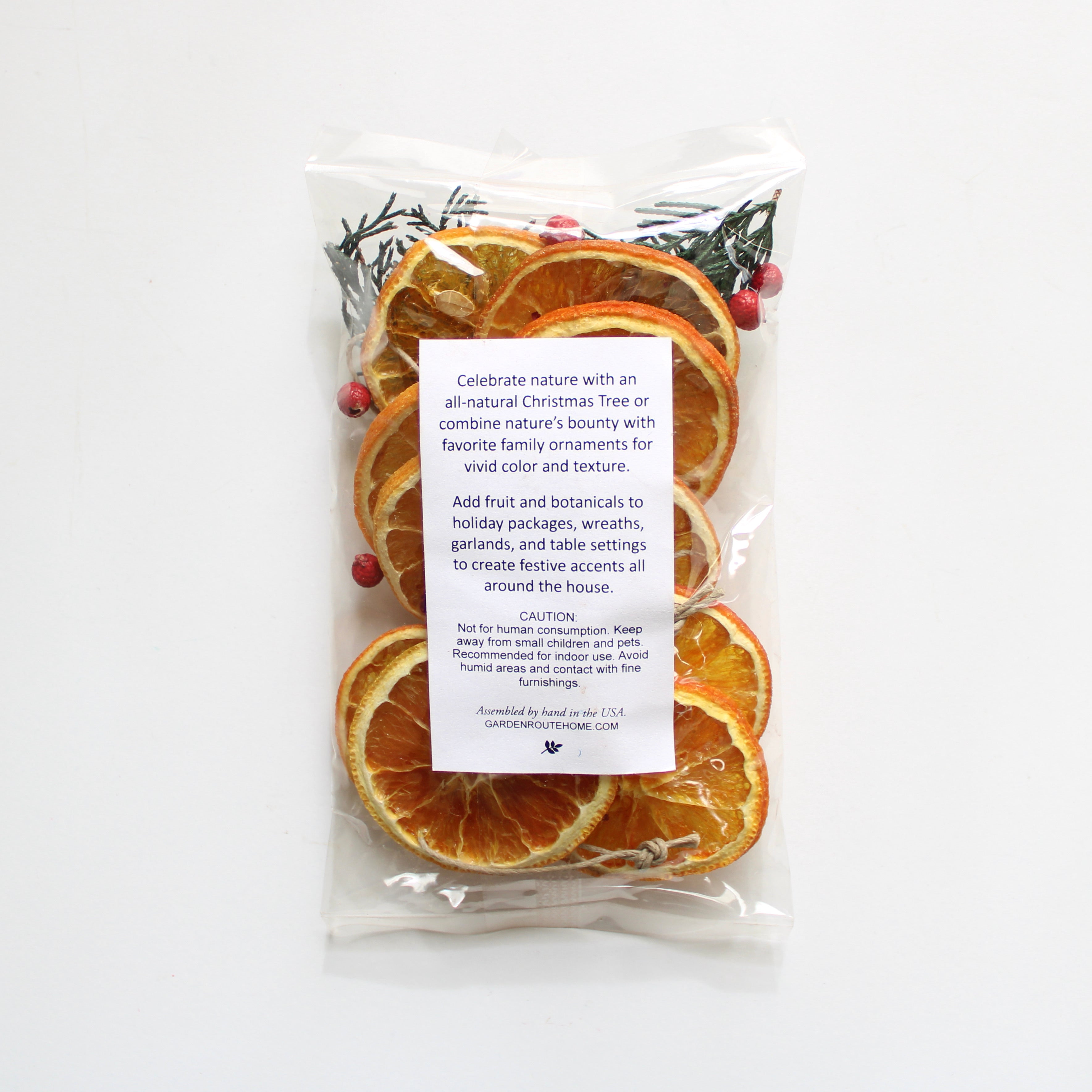 Decorate your tree with naturally dried orange slice ornaments. This festive mix includes a few extra sprigs of holiday cheer for your decorating.