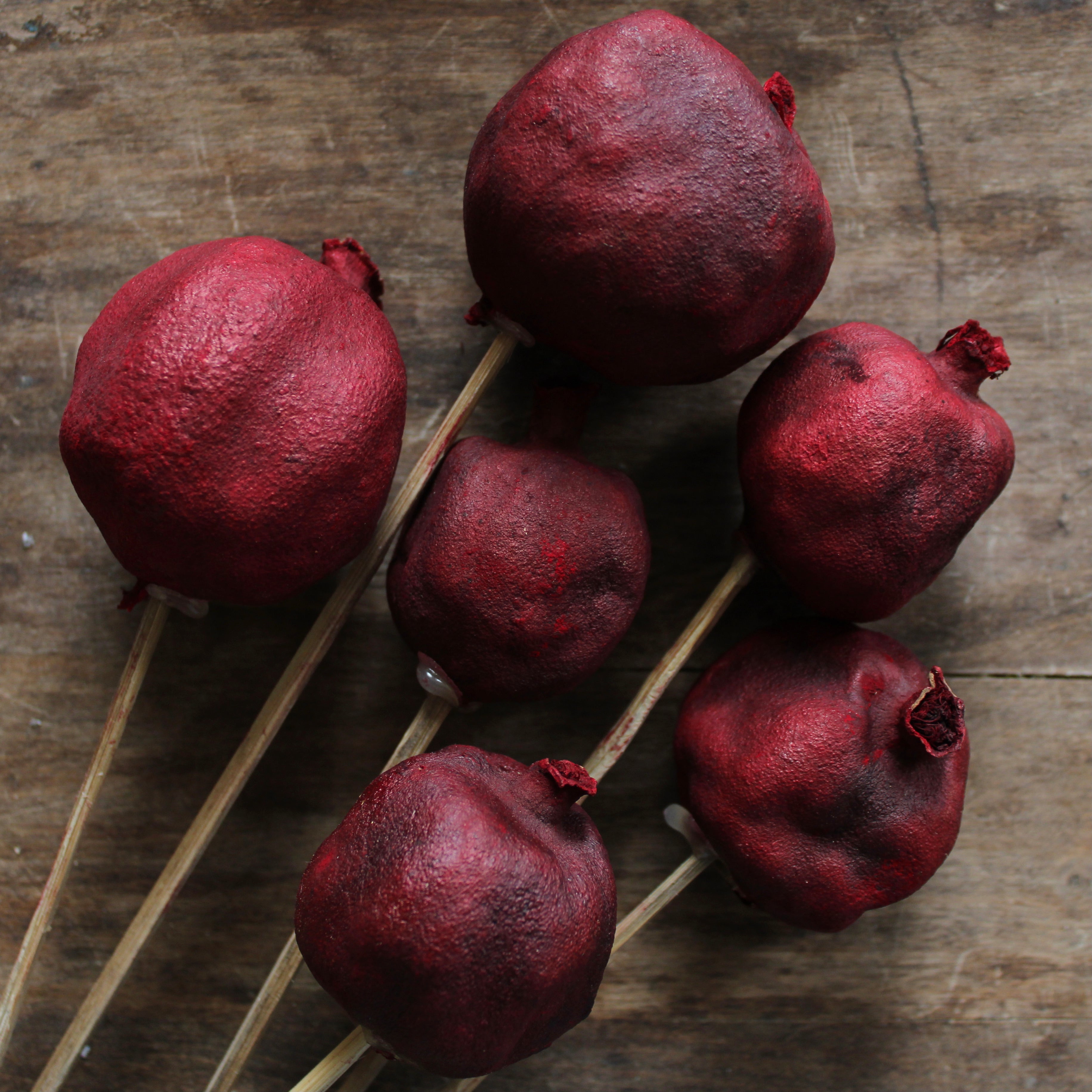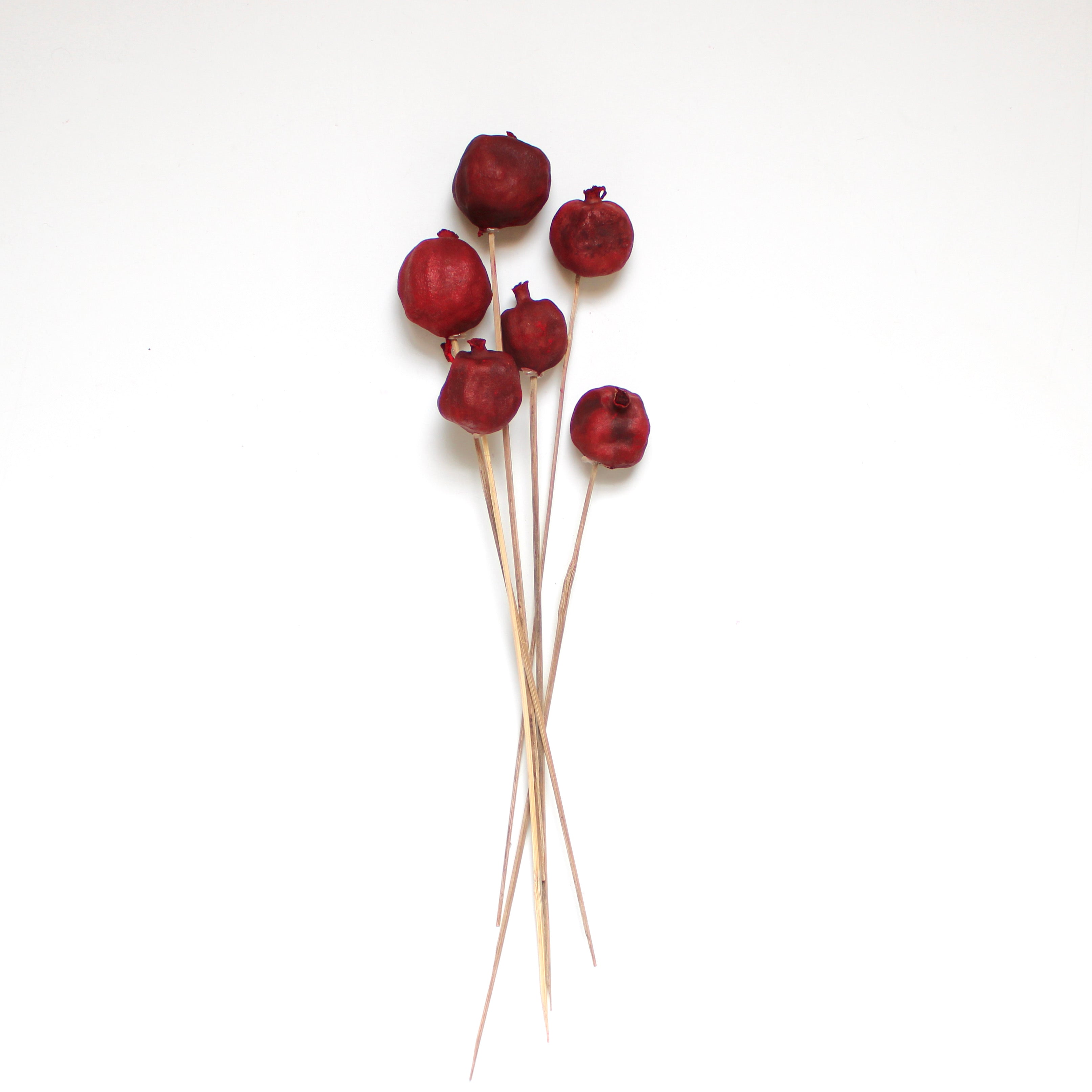 Arrange dried pomegranates into bouquets, arrangements, wreaths and more with ease using their long attached reed stems.