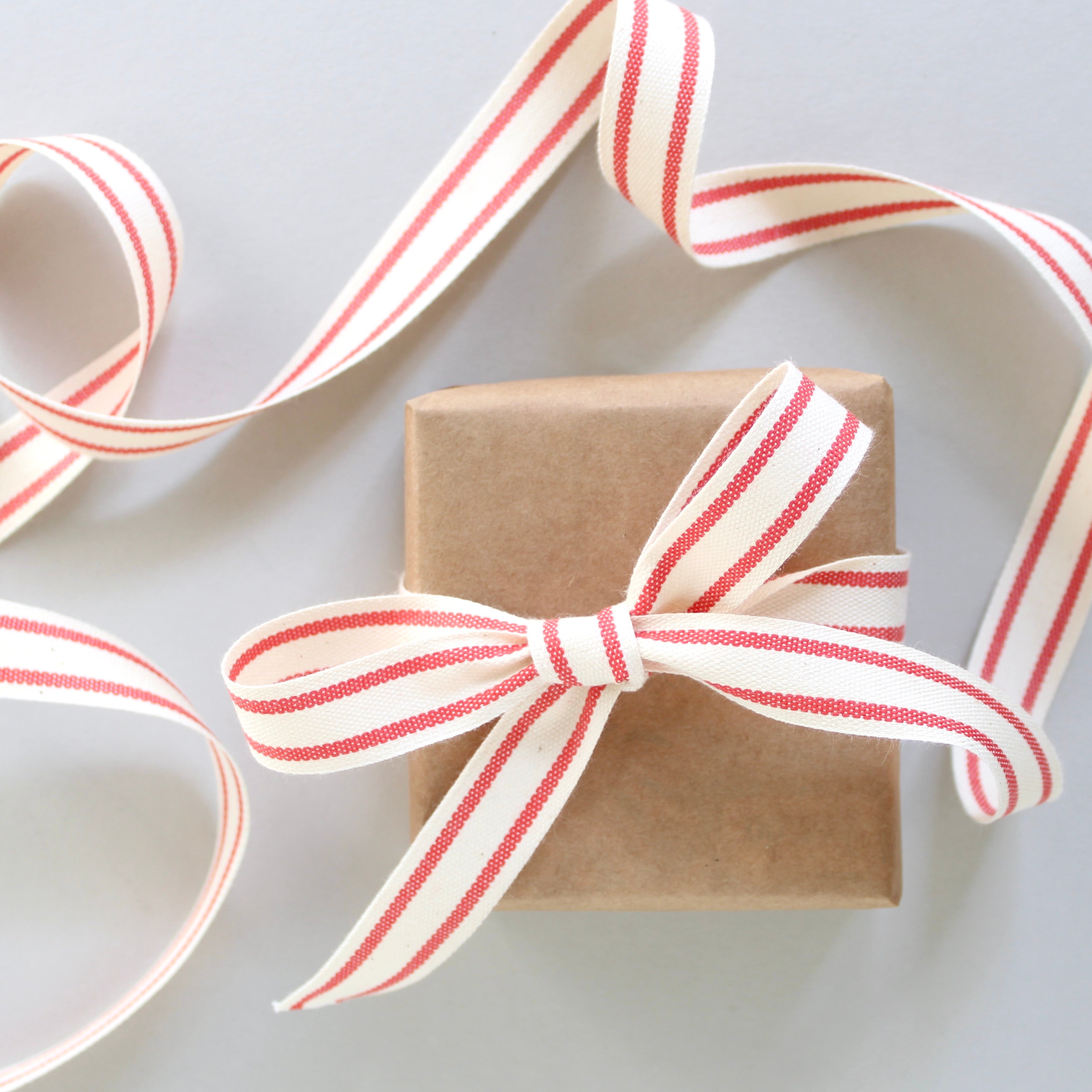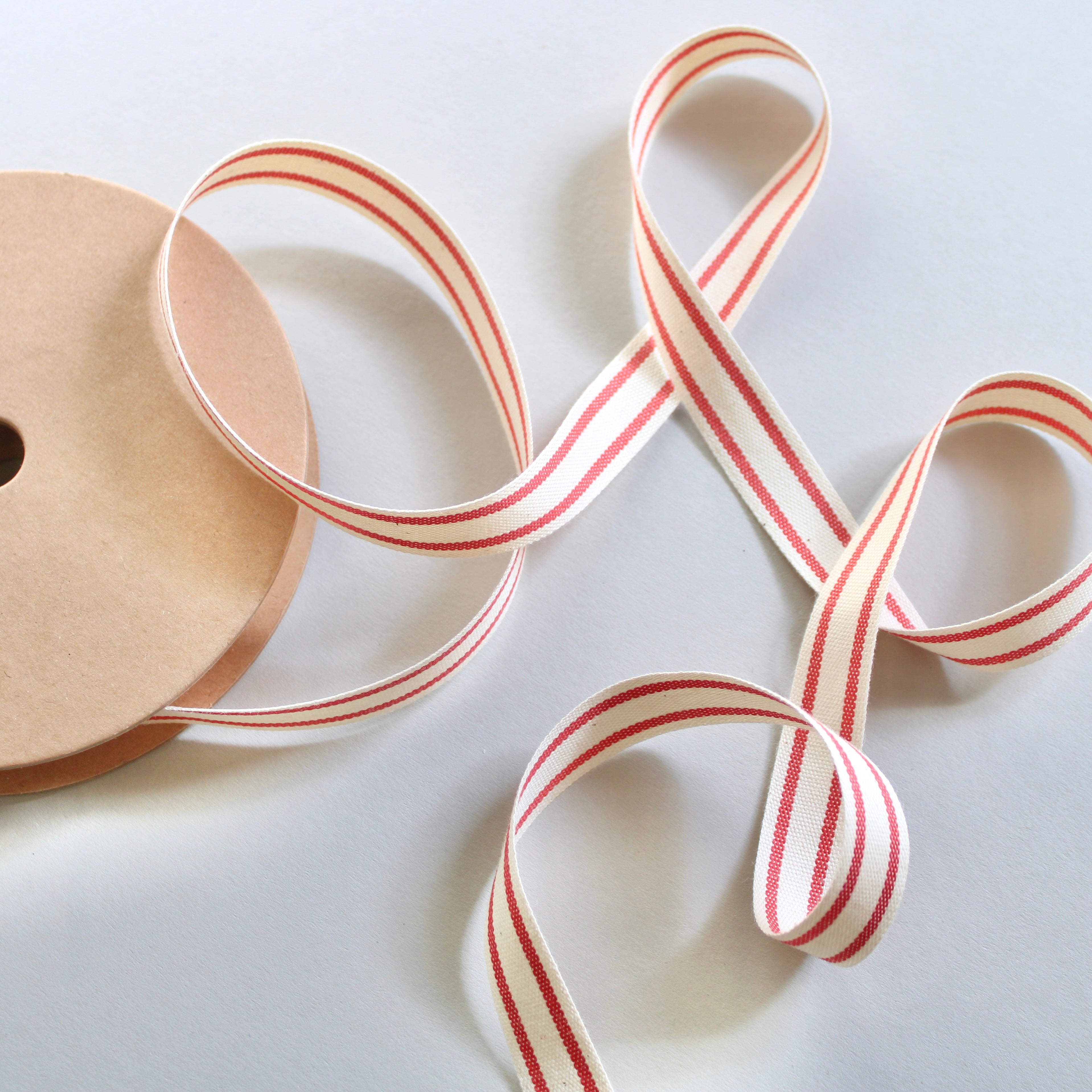 Ribbon - Woven Red Striped Cotton