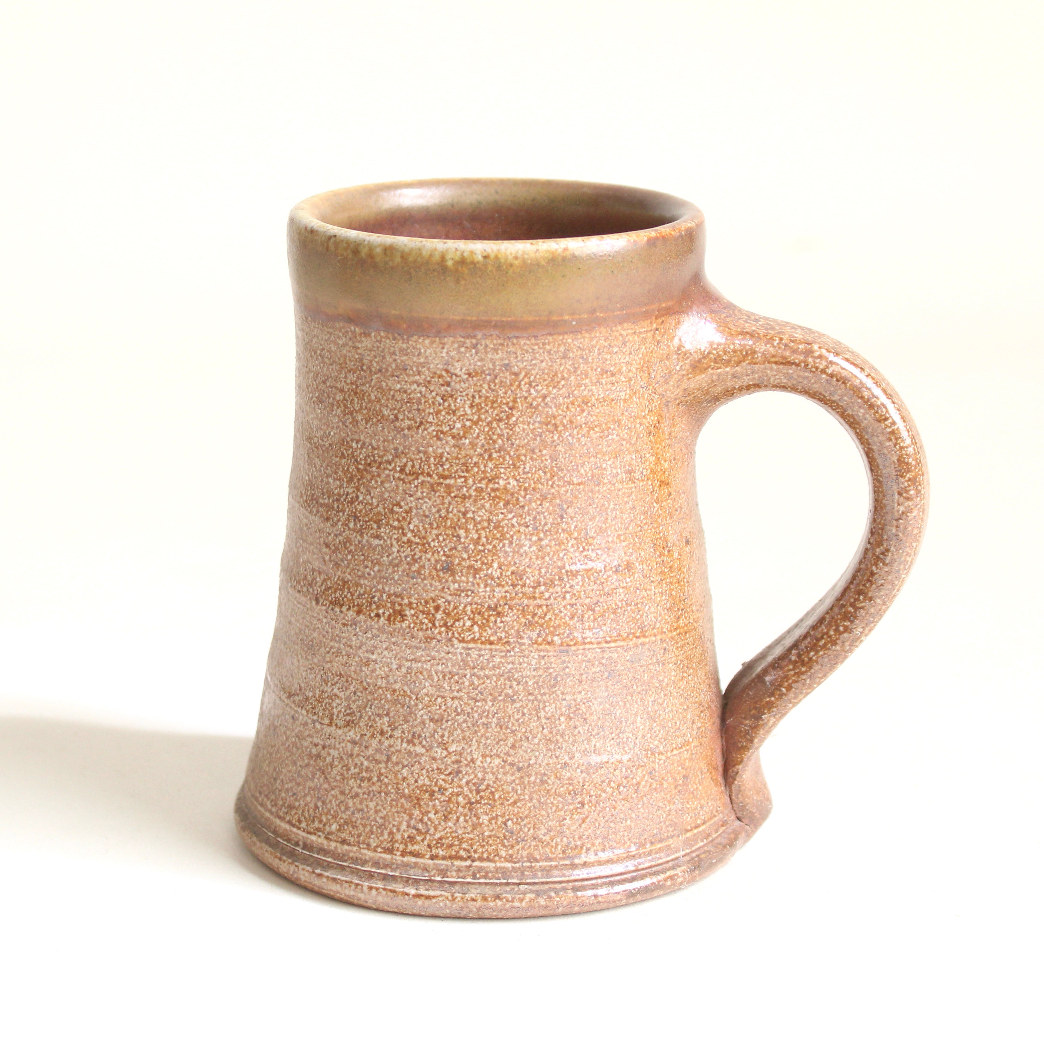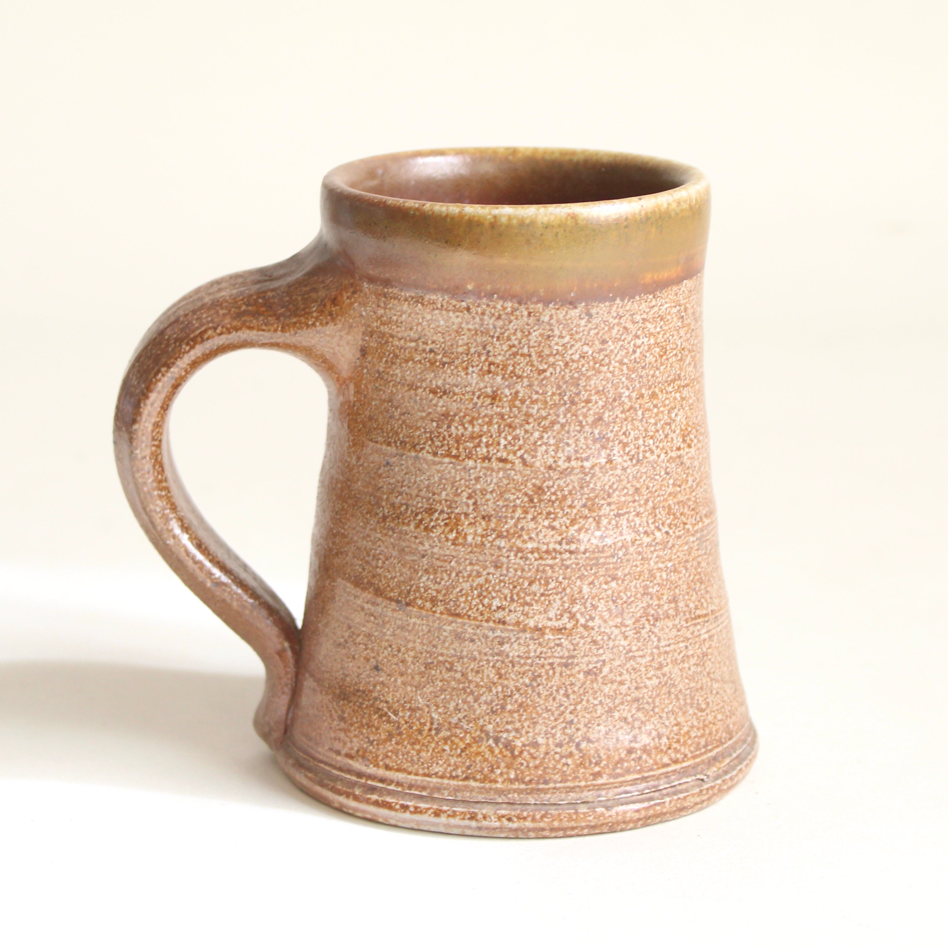 A draught of homebrew would suit this handsome stoneware tankard well. You will feel like days of yore drinking from this sturdy wood fired, salt glazed mug. Rustic and functional , it is the real deal.