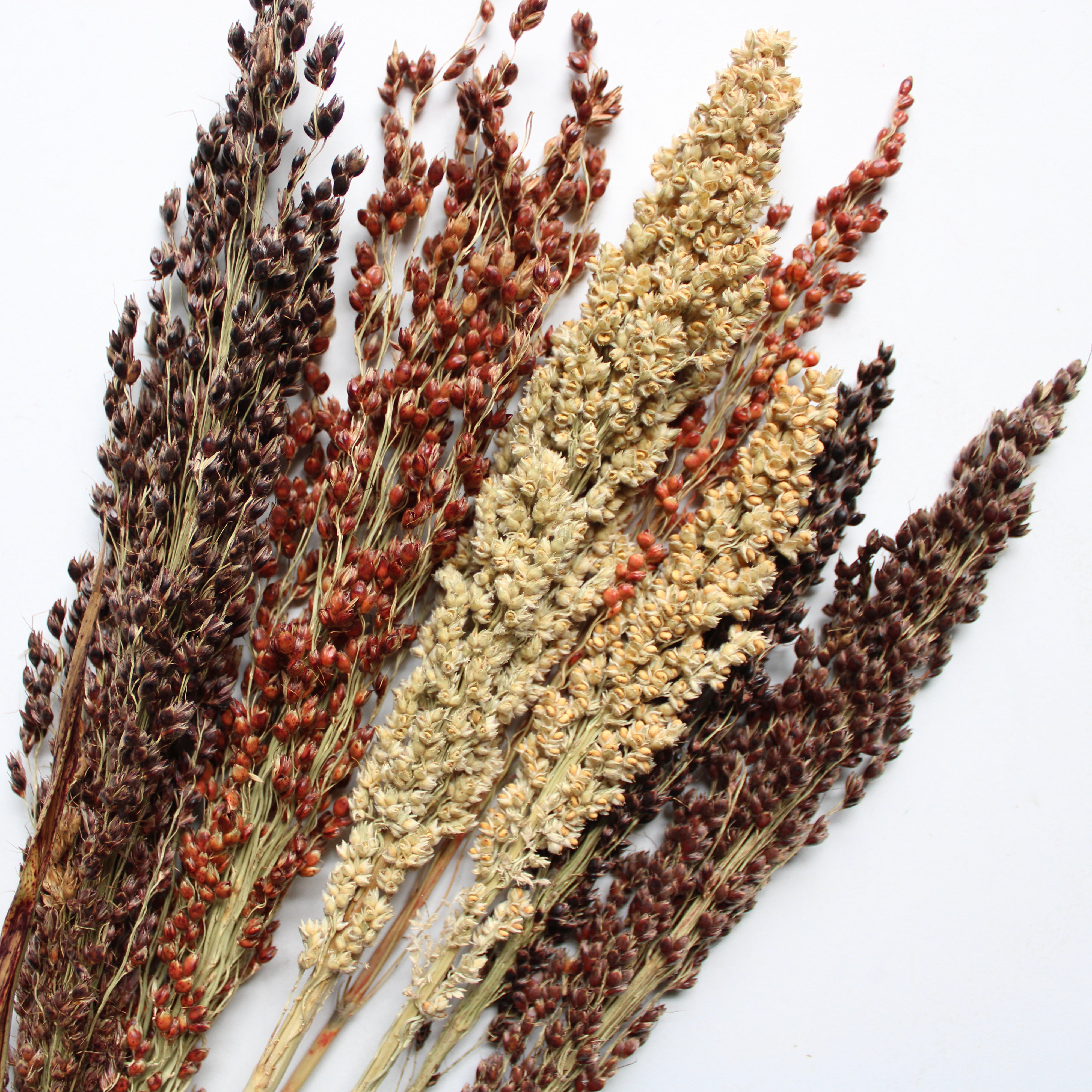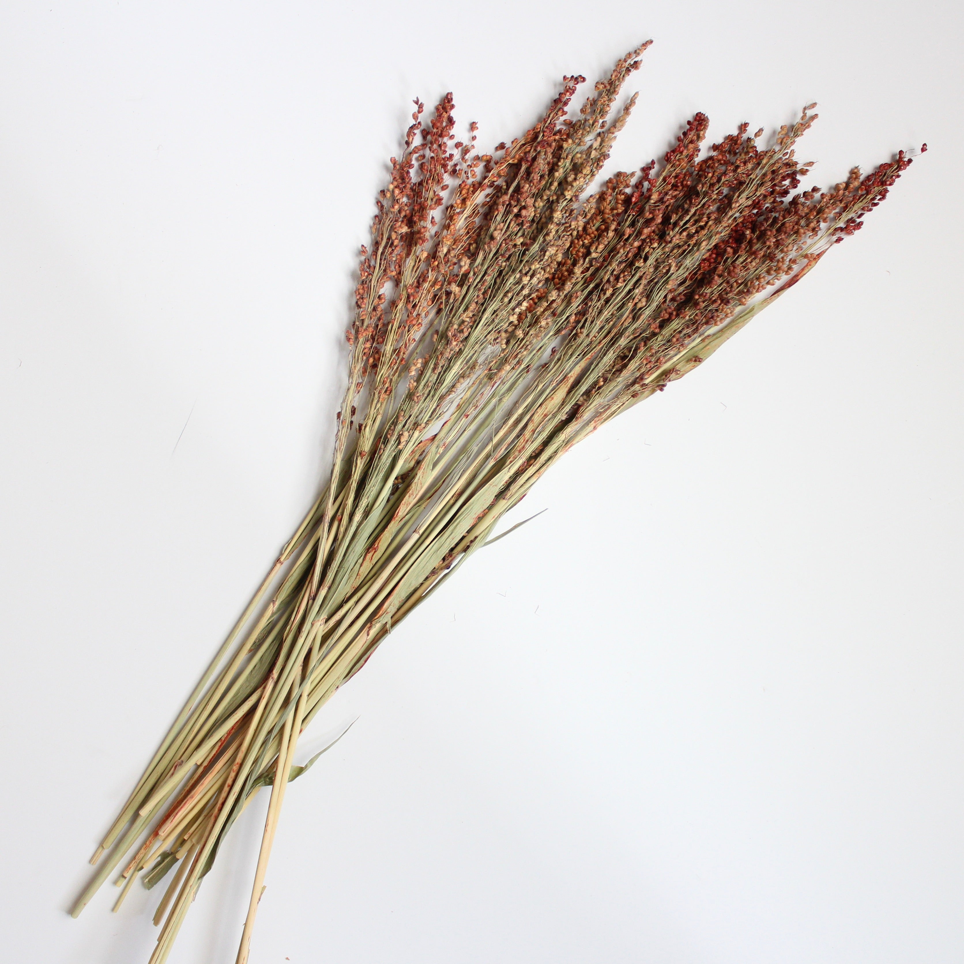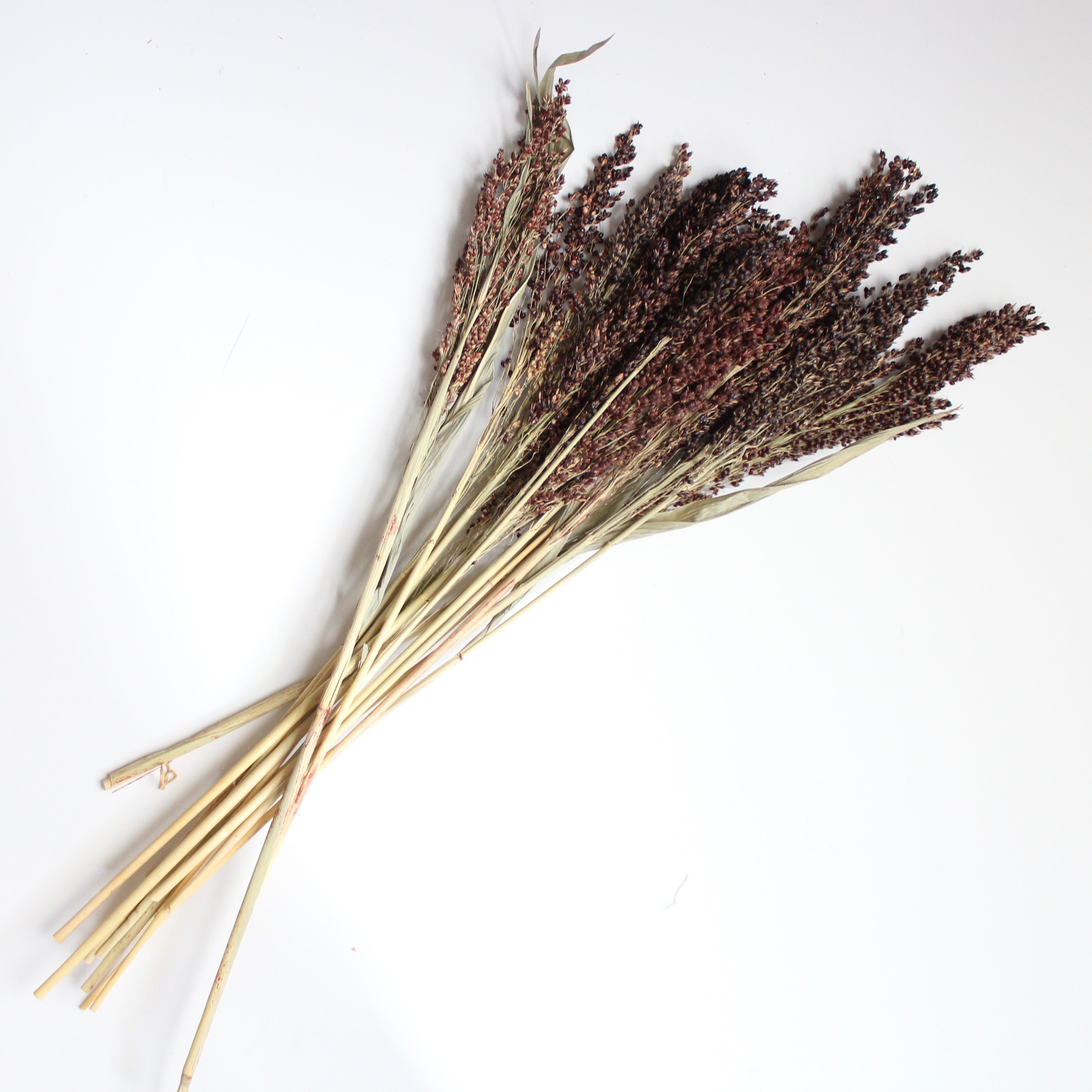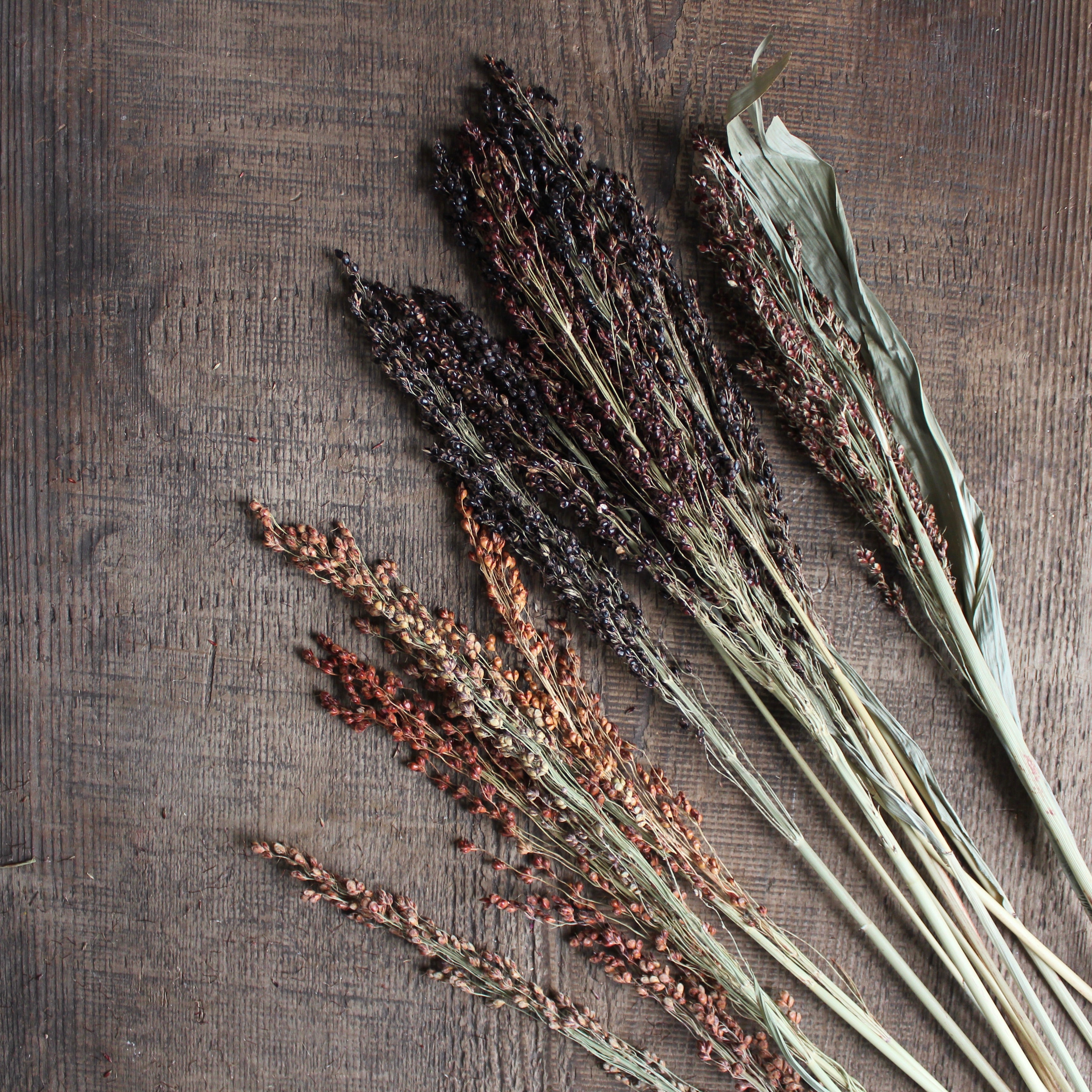 One of our seasonal favorites Broom Corn (sorghum) comes with a rich history. As hinted in the name, Broom Corn was once used for making brooms after Benjamin Franklin introduced the grain to the US in the early 1700s. With historical value and a way with movement, Broom Corn will add interest and intrigue to your seasonal arrangements.