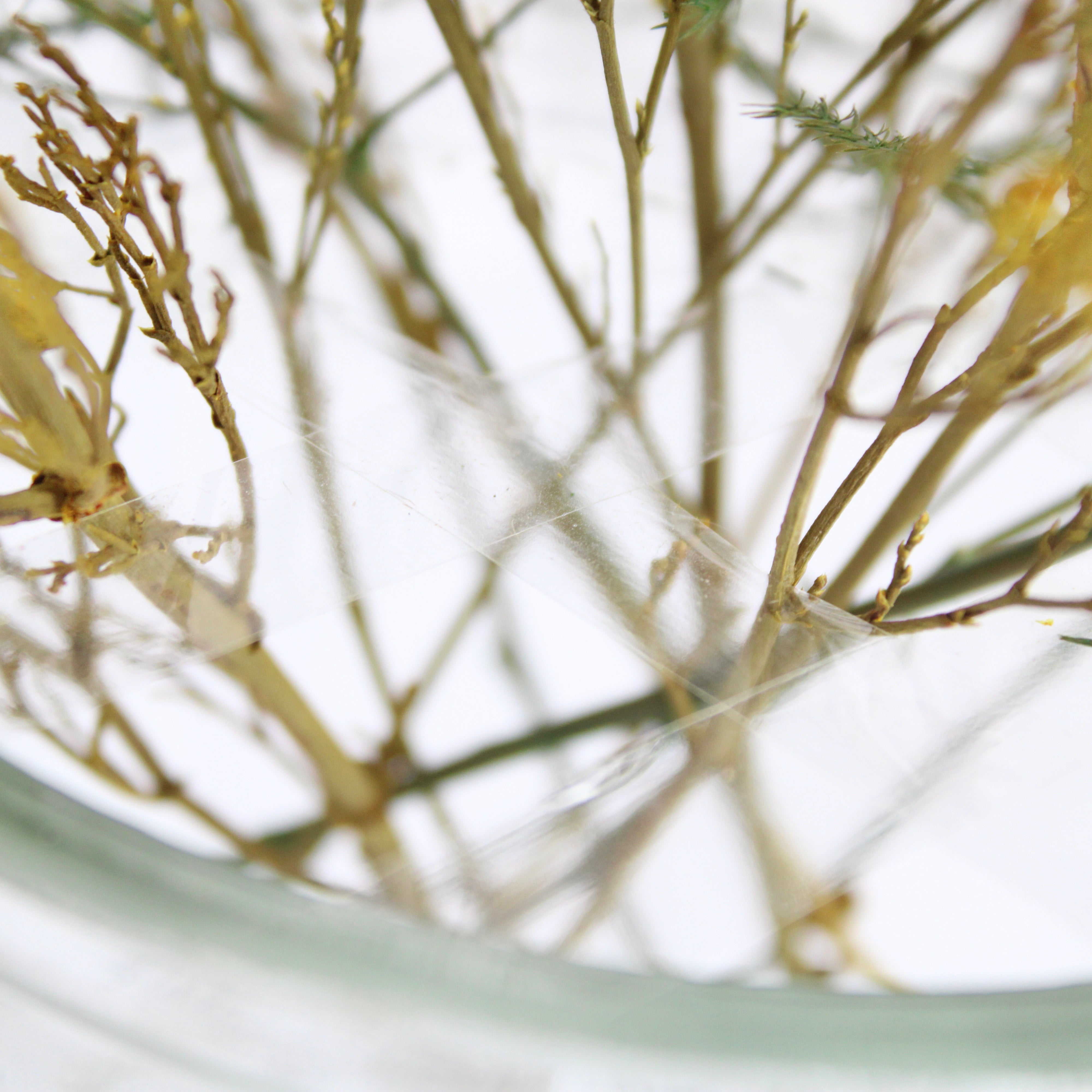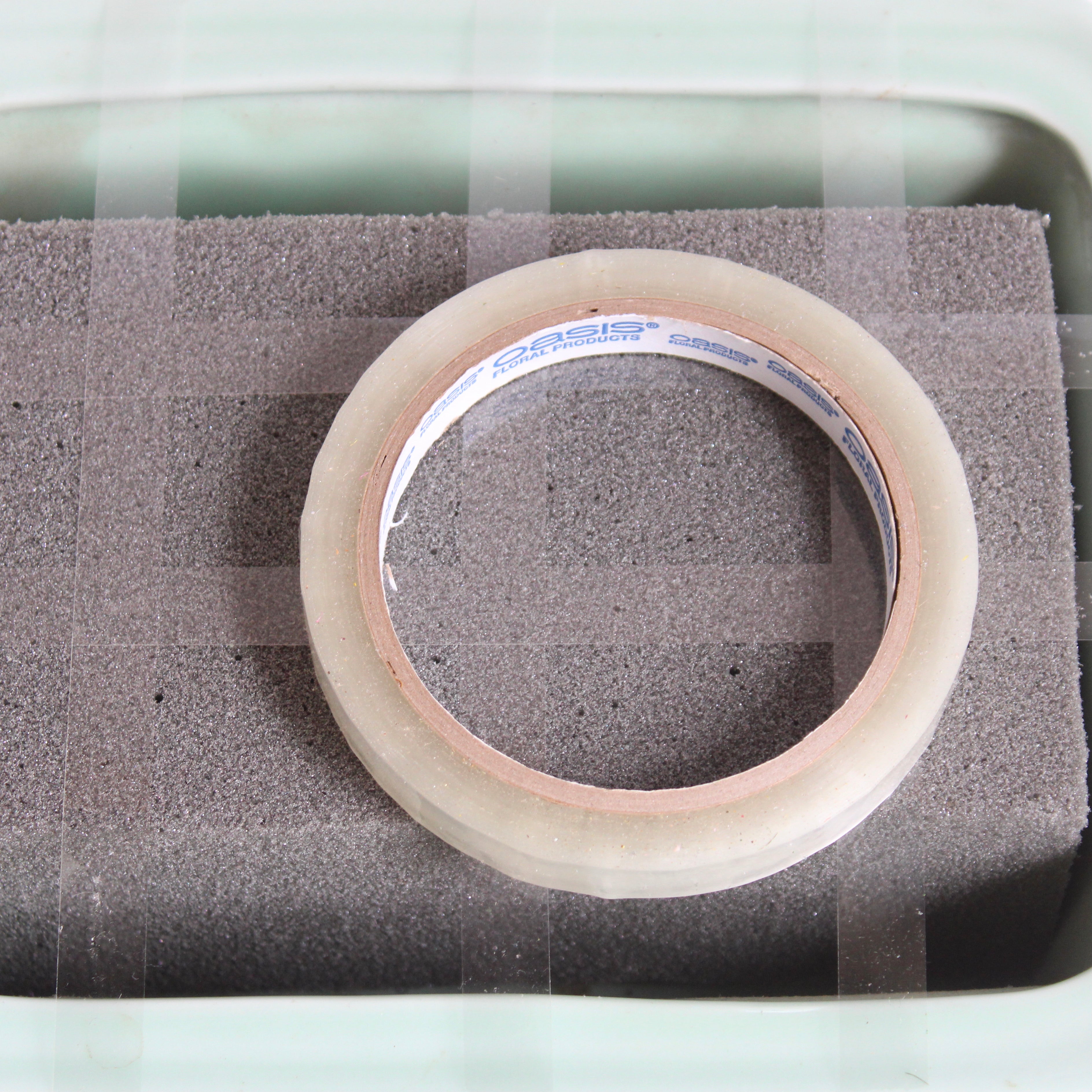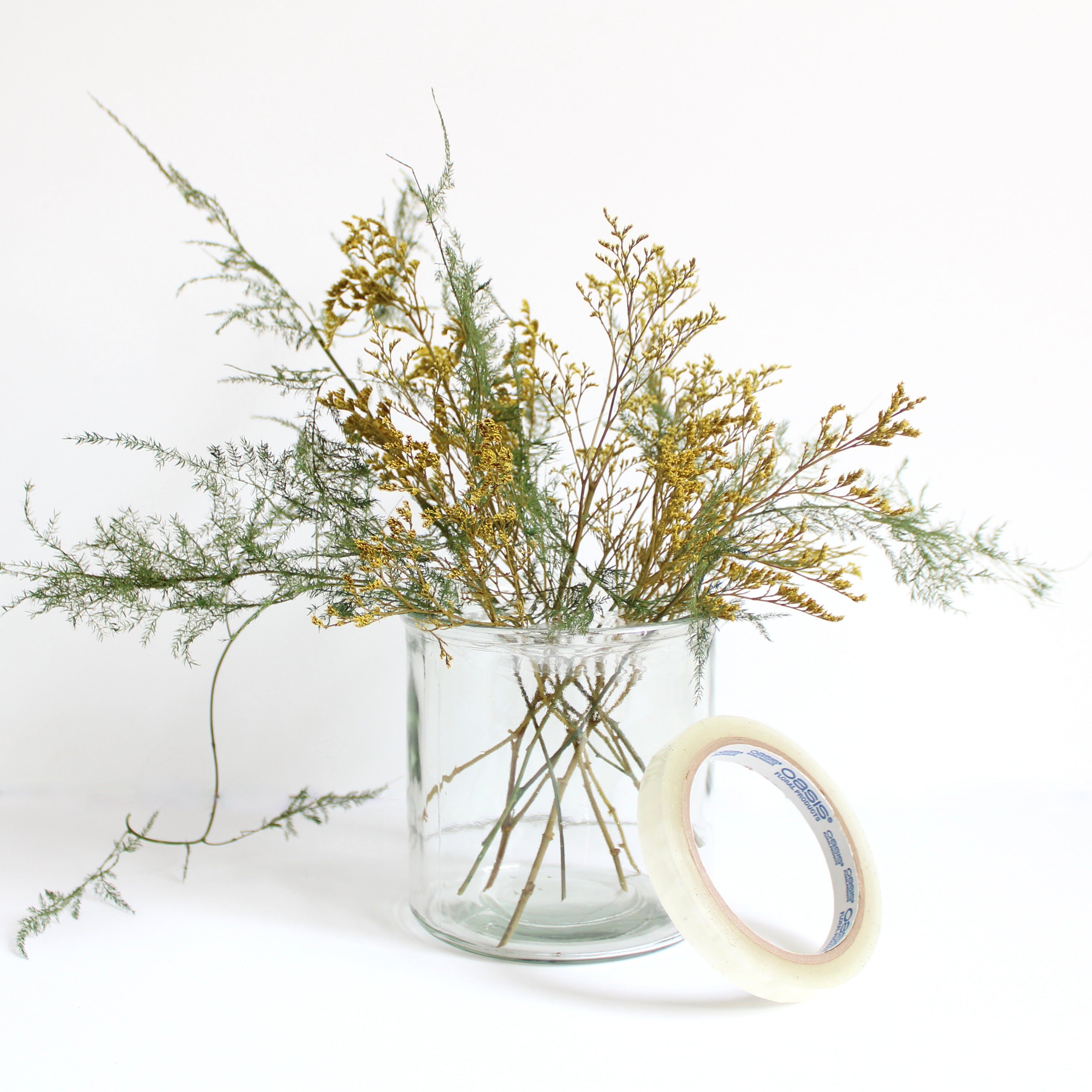 Secure stems in vessels with the use of discreet clear tape. Whether creating a tape grid at vessel opening or securing foam within, clear tape is a go-to tool for dried flower projects.