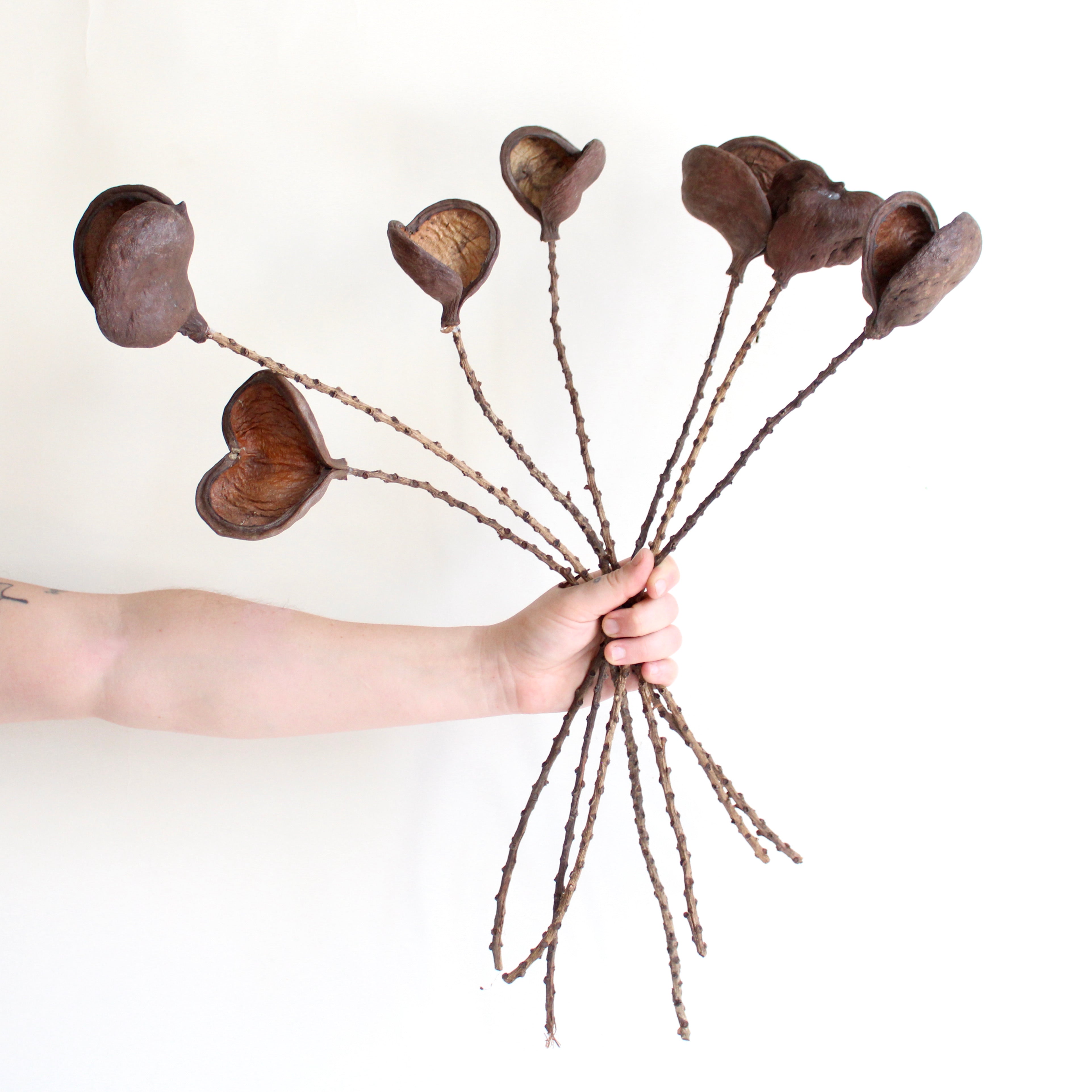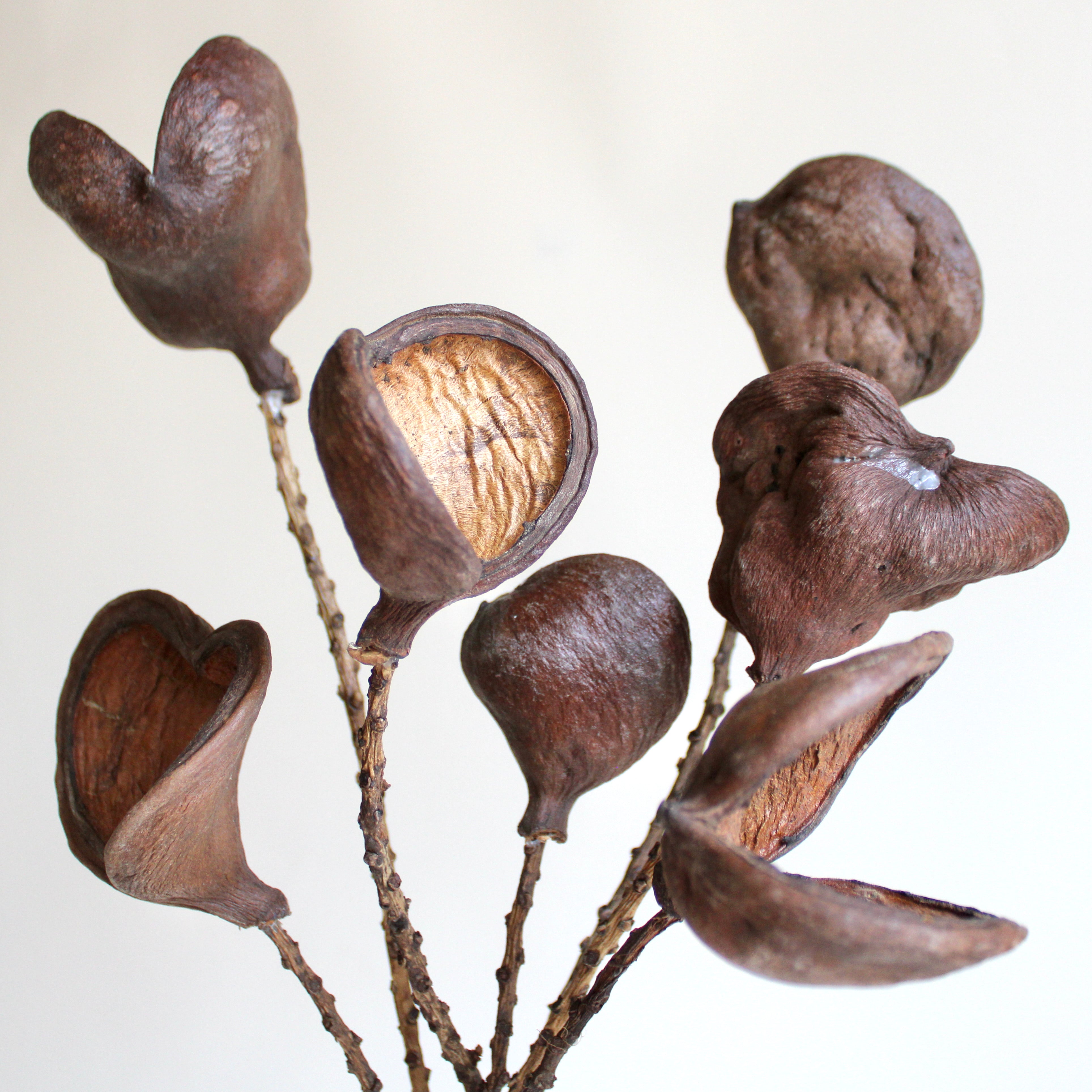 Add a natural, sculptural touch to your dried arrangements with Badam Nut. Attached to long, leggy stems, these textural elements are easy to tuck into bouquets and vase displays. Nestle them among flowers and foliage to introduce contrast and a bit of structure among softer forms.