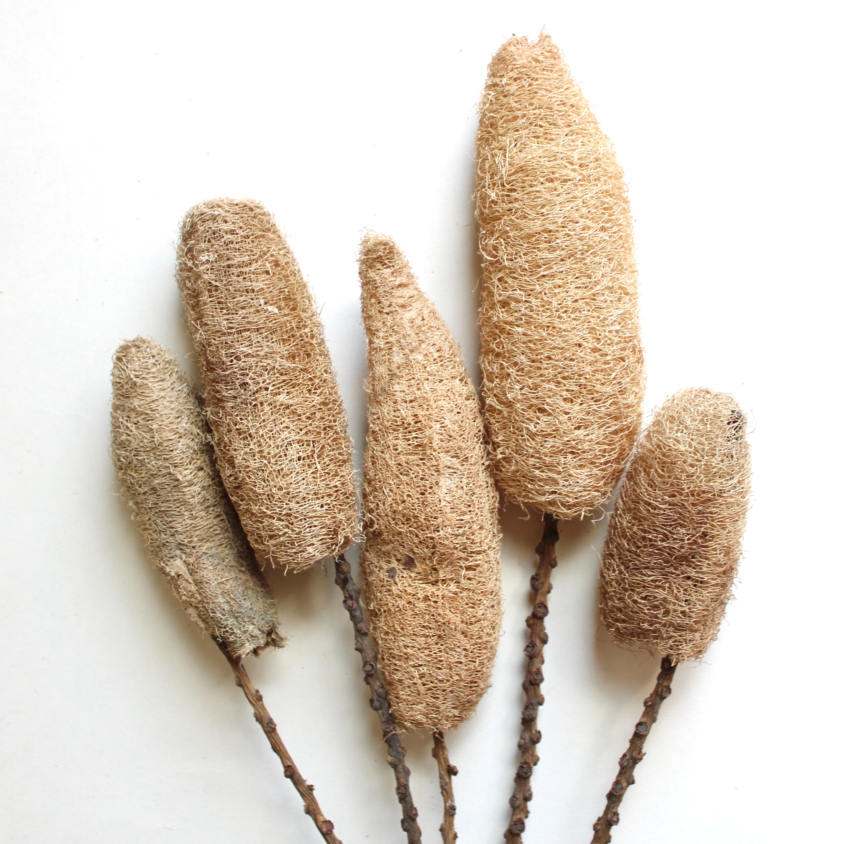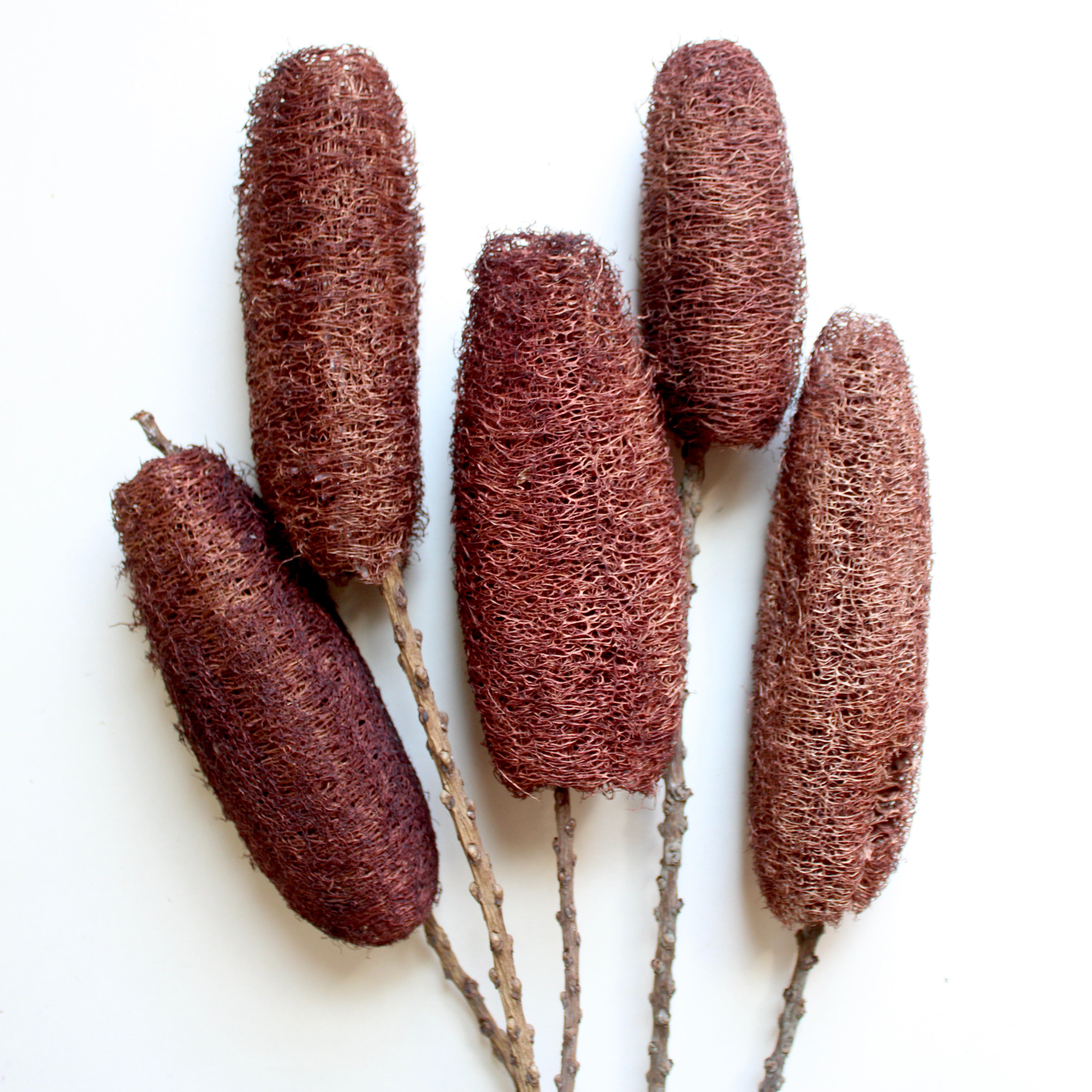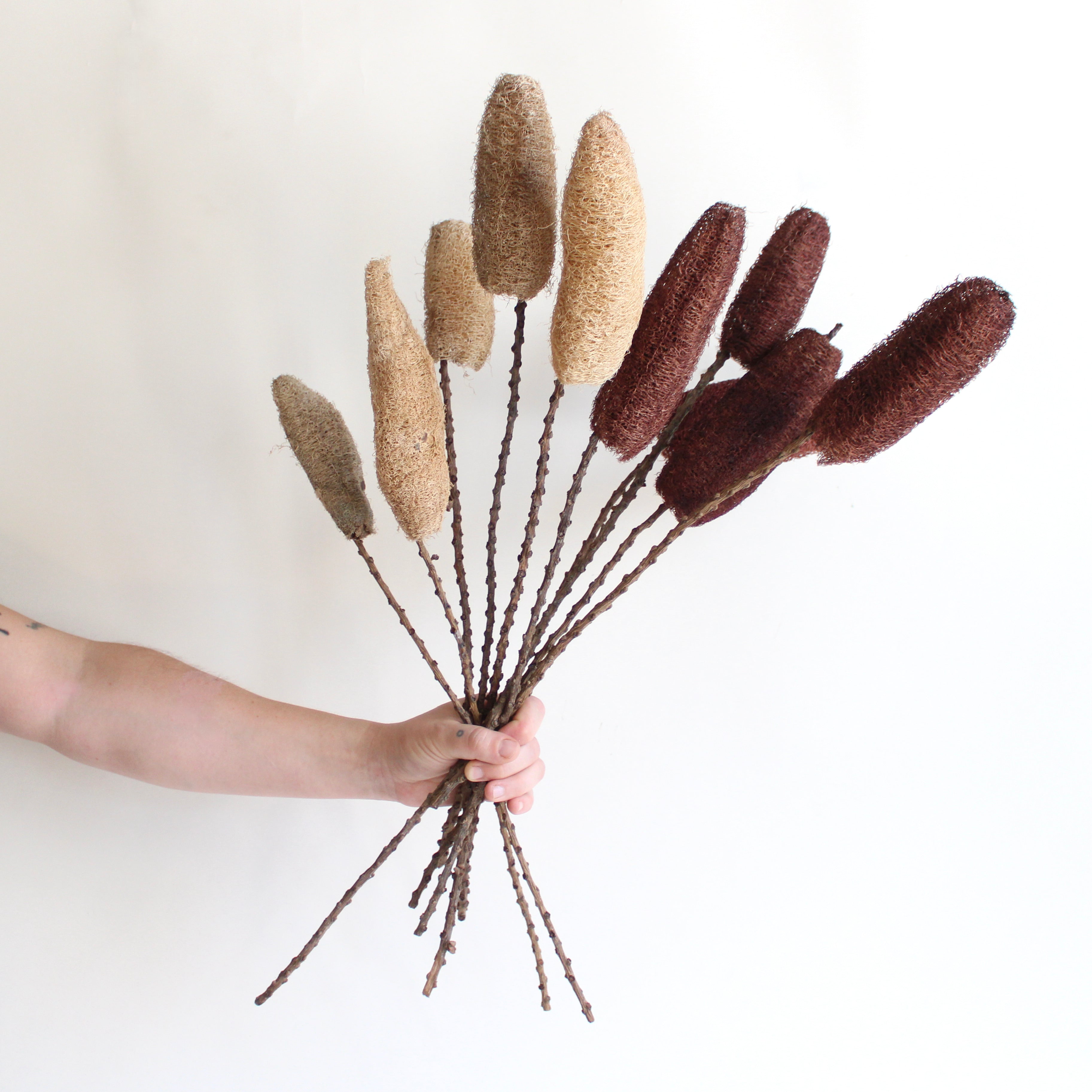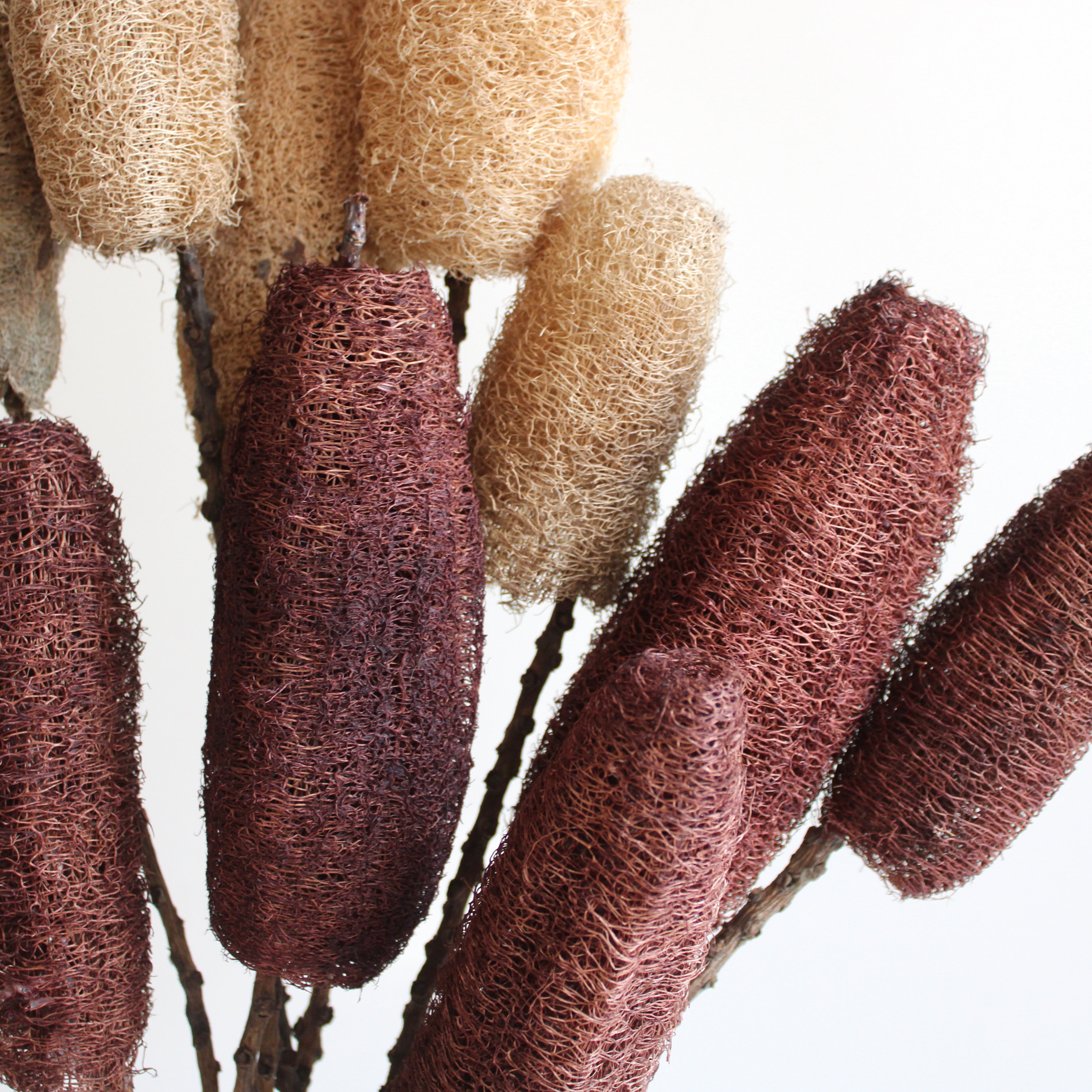 Add texture and interest to your dried flower designs with our dried luffa stems. Available in natural and deep brown, they’re a striking addition to modern arrangements—whether paired with pods and branches, styled in a tonal mix of rich browns, or simply displayed on their own in a vase. Wherever they land, these sculptural stems make a bold, organic statement.