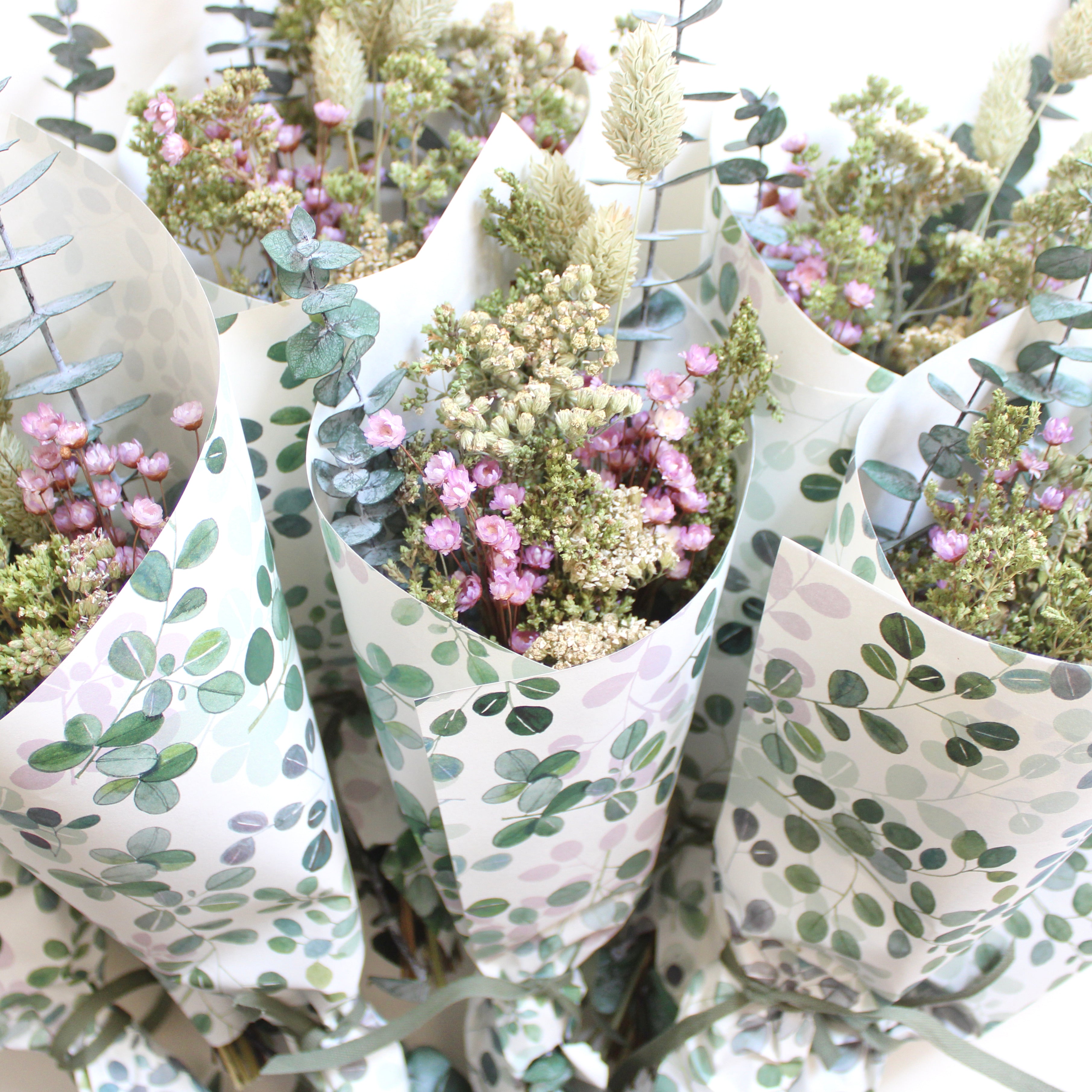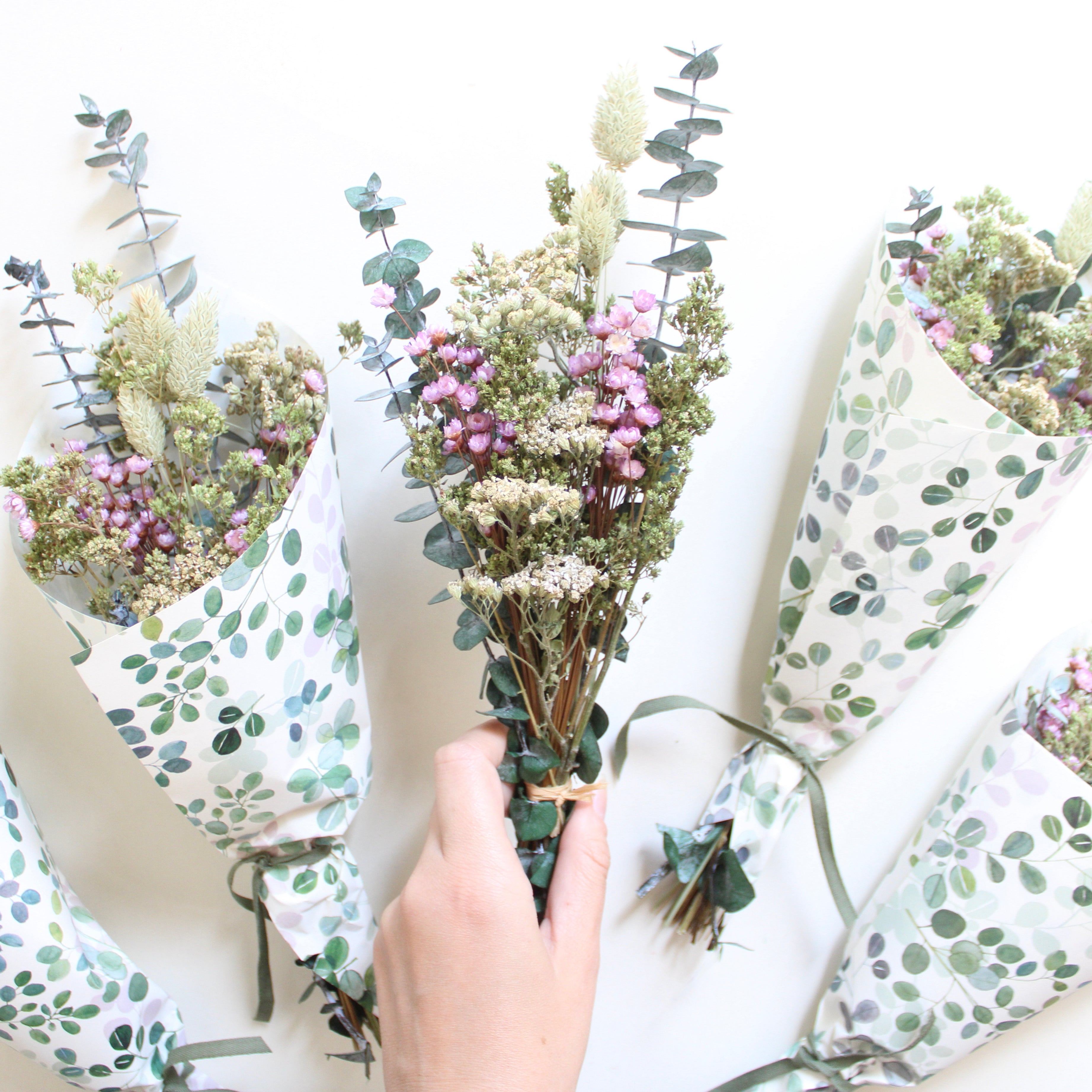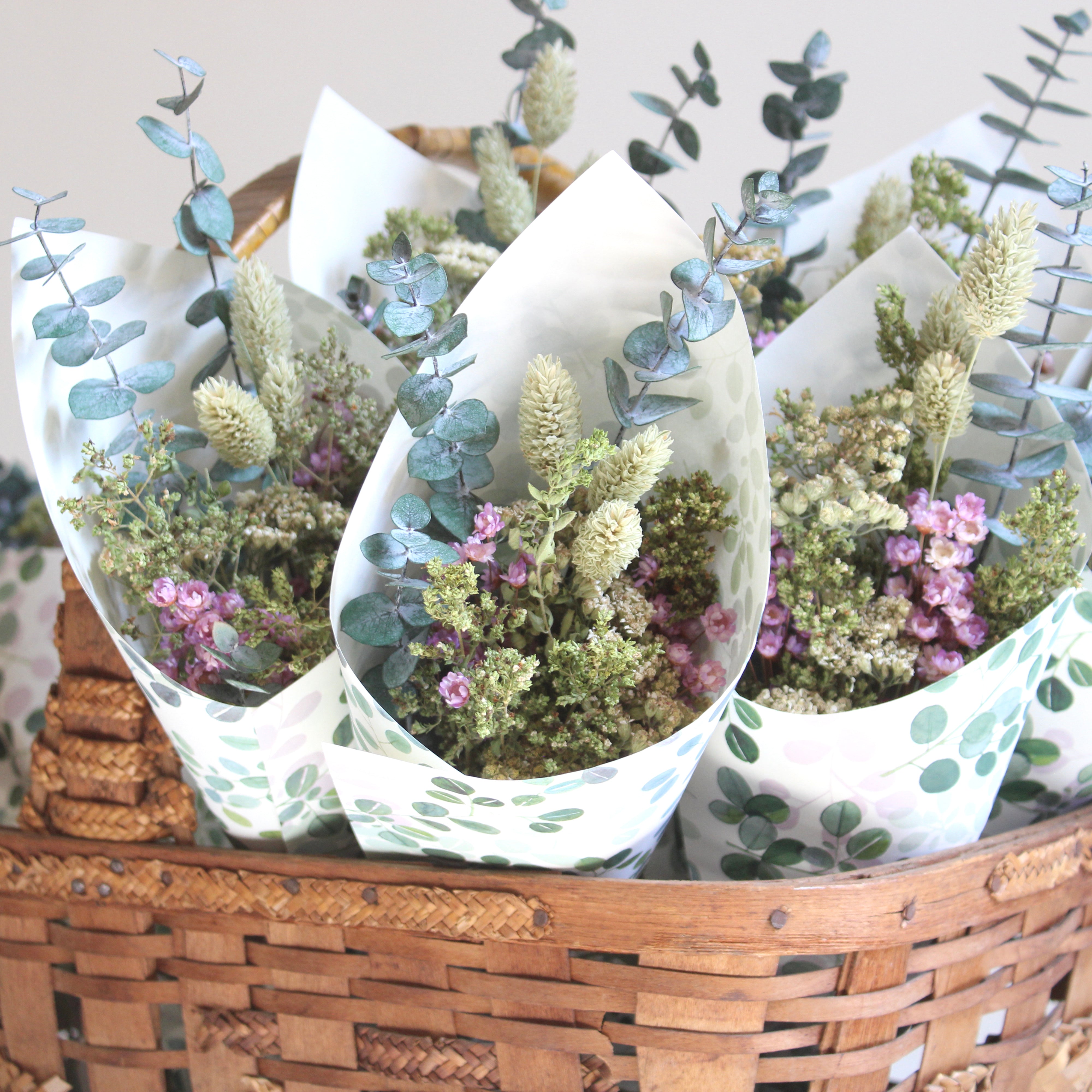 Field Notes Bouquet features eucalyptus, phalaris, star flower, oregano, and yarrow.