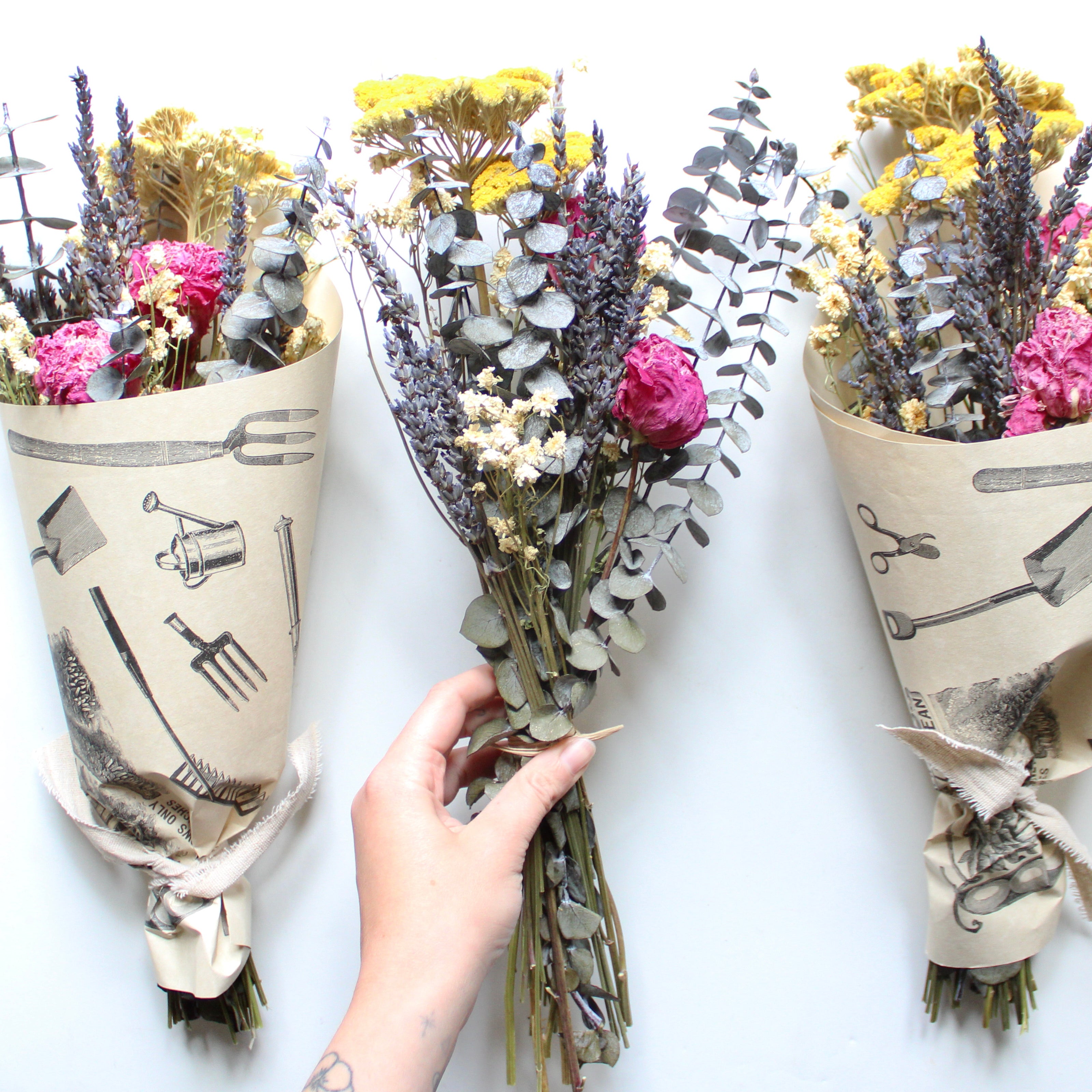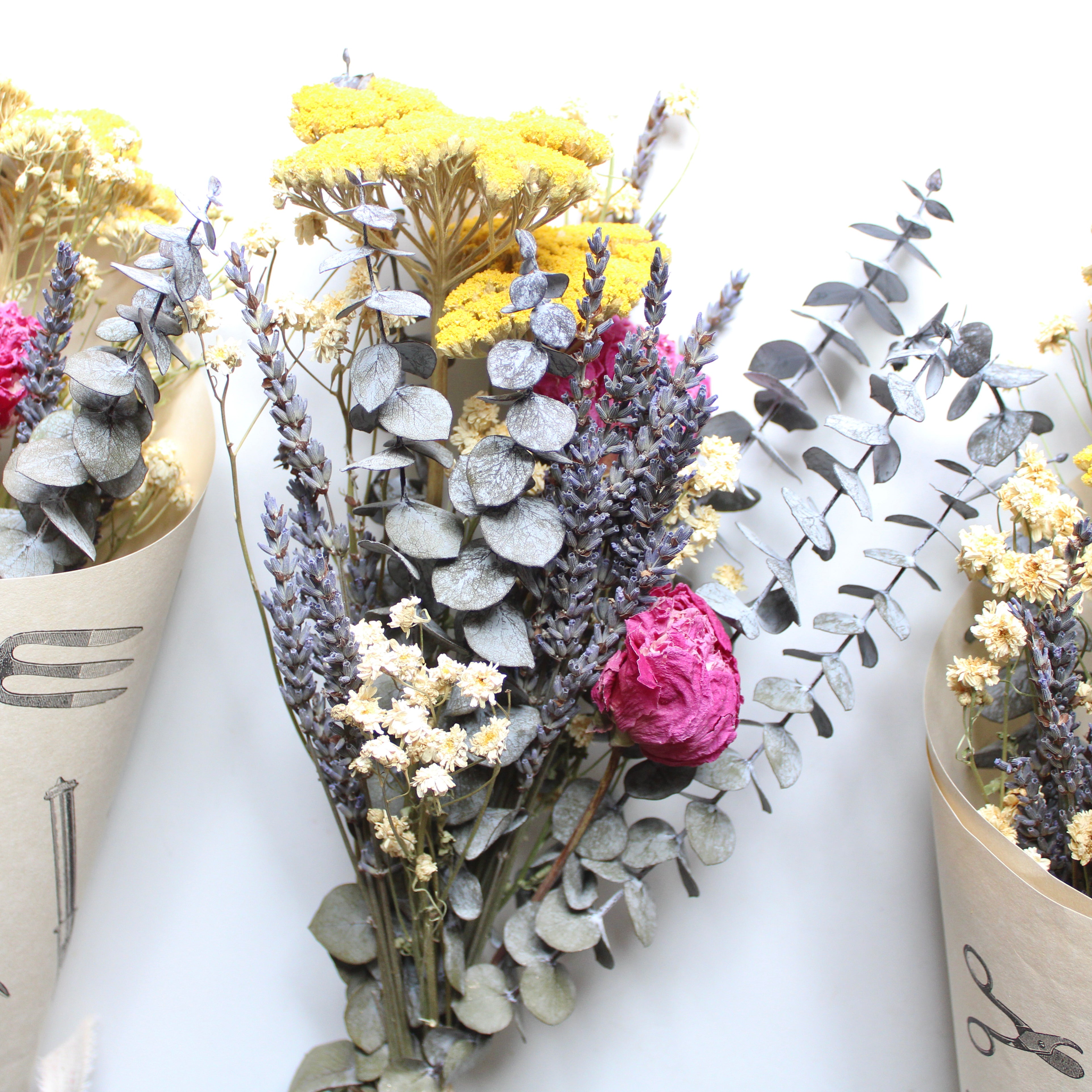 Dried and preserved flowers are mostly care free. The main factors that effect them are light or humidity. Direct sunlight can cause flowers to fade, and moisture can be absorbed and make certain flowers "wilt". If they end up getting dusty, we recommend canned air or a blow dryer on a low cool setting.