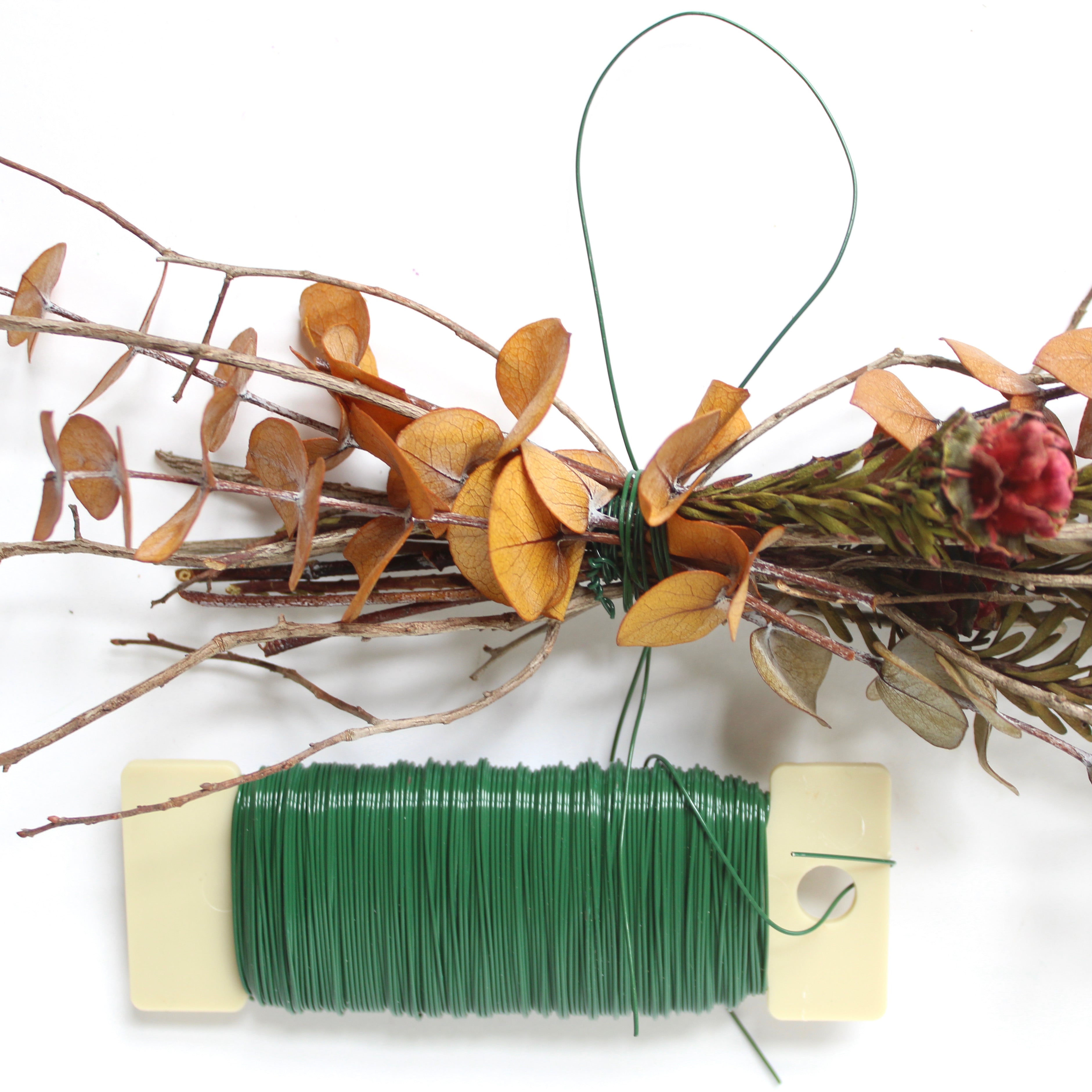 Bind thick stems, create wreath and swag hooks, and wire fruits and pods onto wreath bases with durable spooled wire.