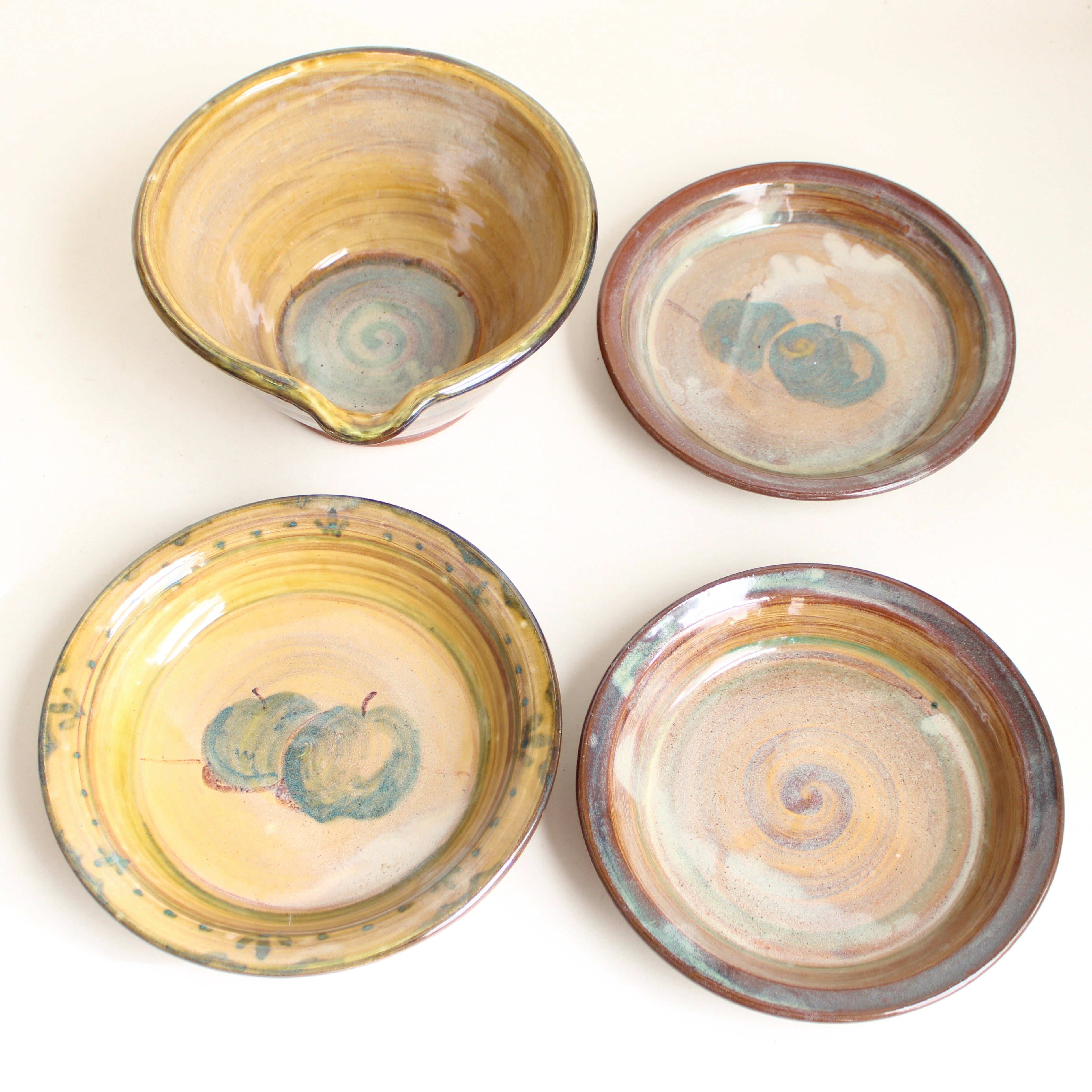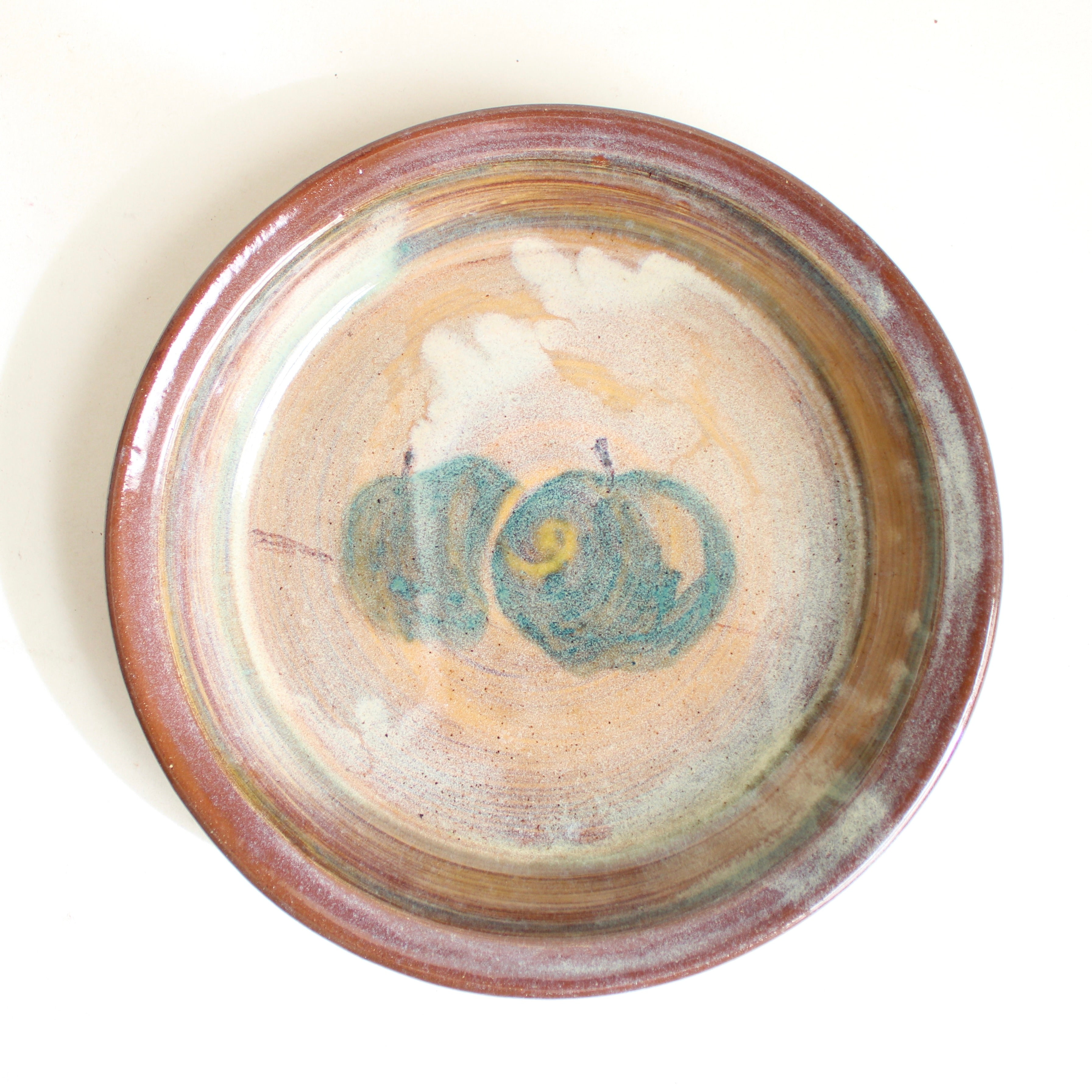 This fine redware pie dish is hand thrown and decorated with a fine glossy non lead glaze. hand thrown and decorated in the folk pottery tradition by master potter Eric Hahn.