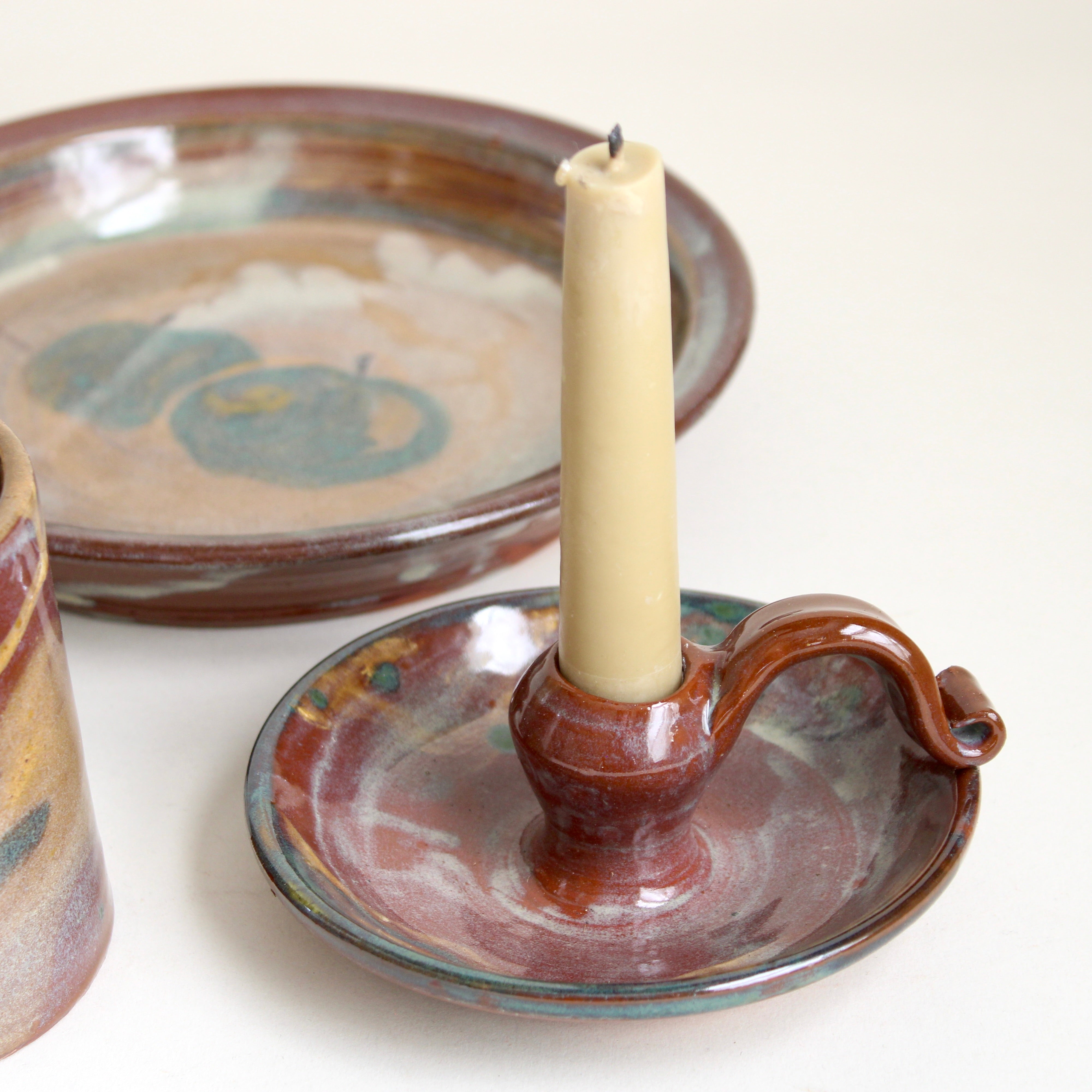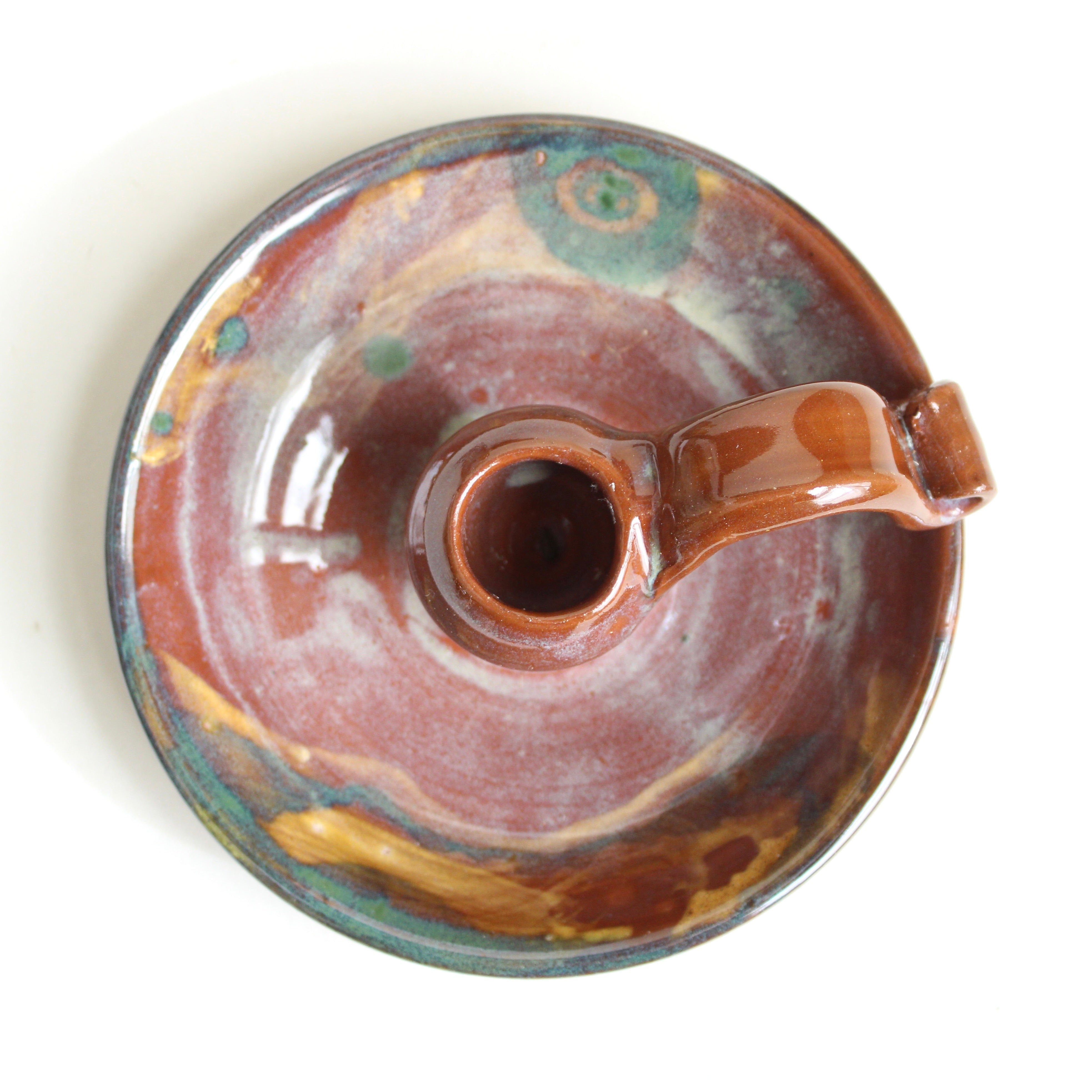 This is a hand thrown red clay candle holder, perfect for setting the mood on a winters eve in the castle. Glazed and fully functional, you will love the way this looks on your table!