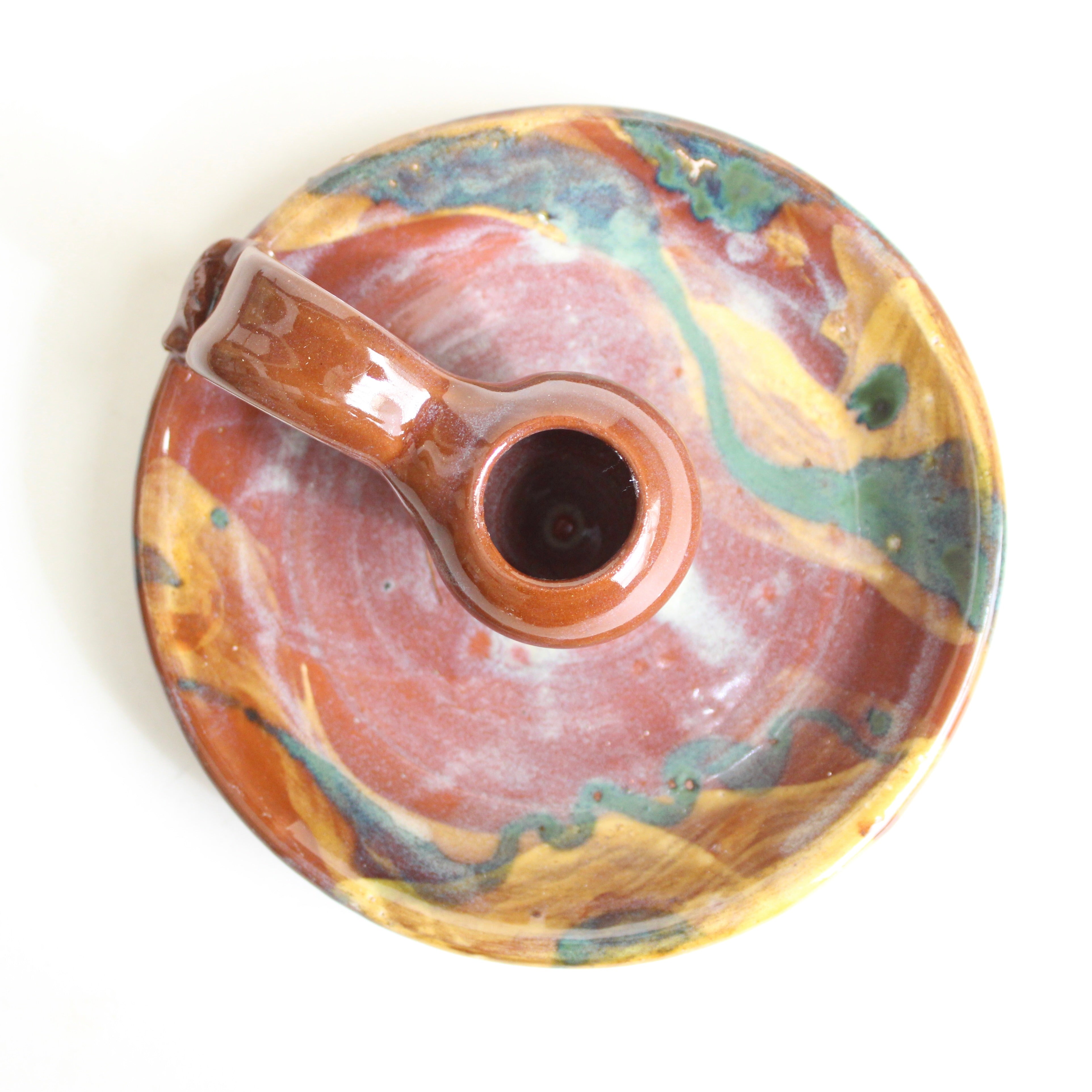 Ready to light your walk through the castle, this hand thrown red clay candle holder will provide a distinctly warm feeling to your wintry evening .