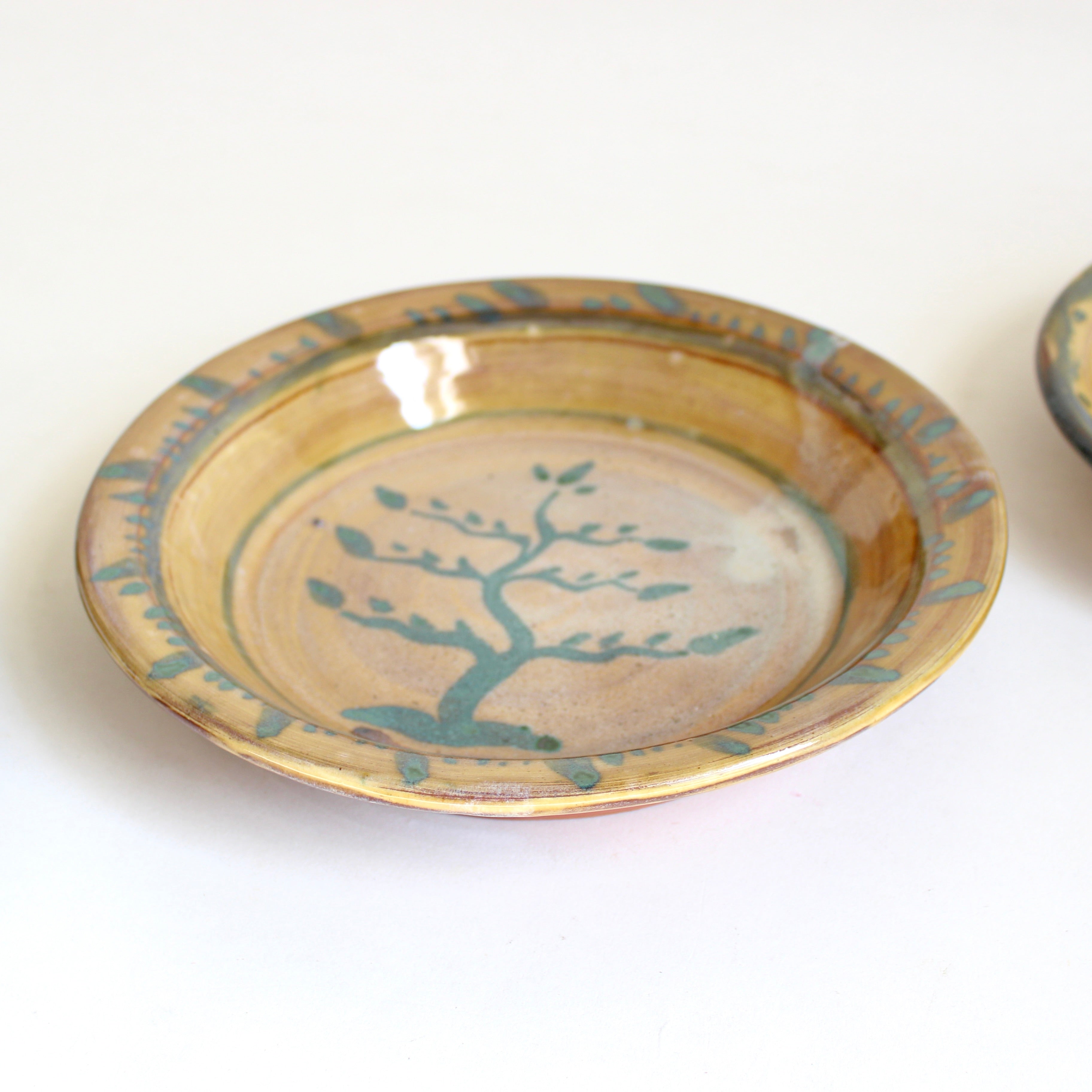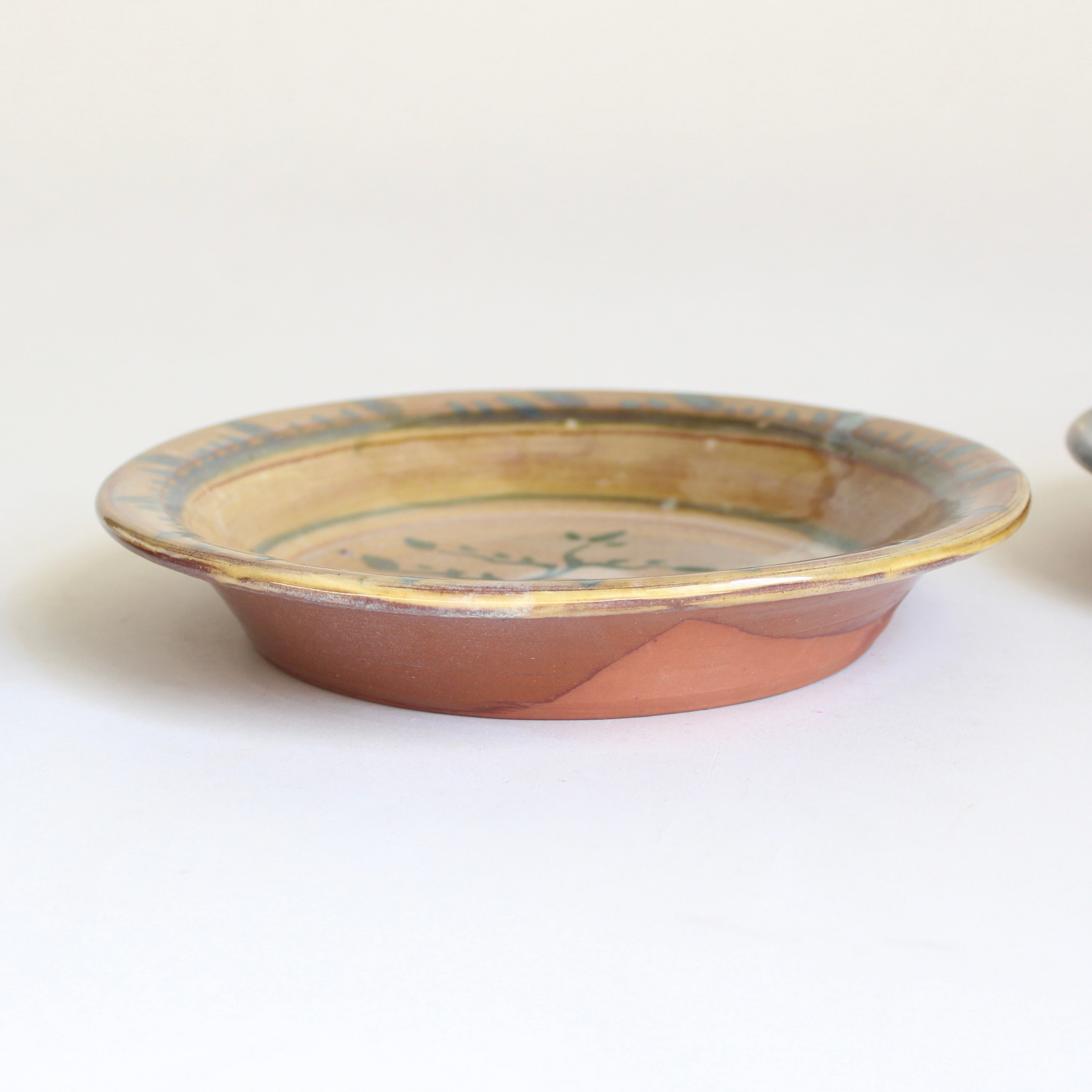 This traditional folk pottery was hand thrown and decorated in the American tradition of the colonial era redware potters. Both functional and beautiful, this plate could be perfect for baking pies or serving any fine meal. Non lead glaze , dish washer safe.