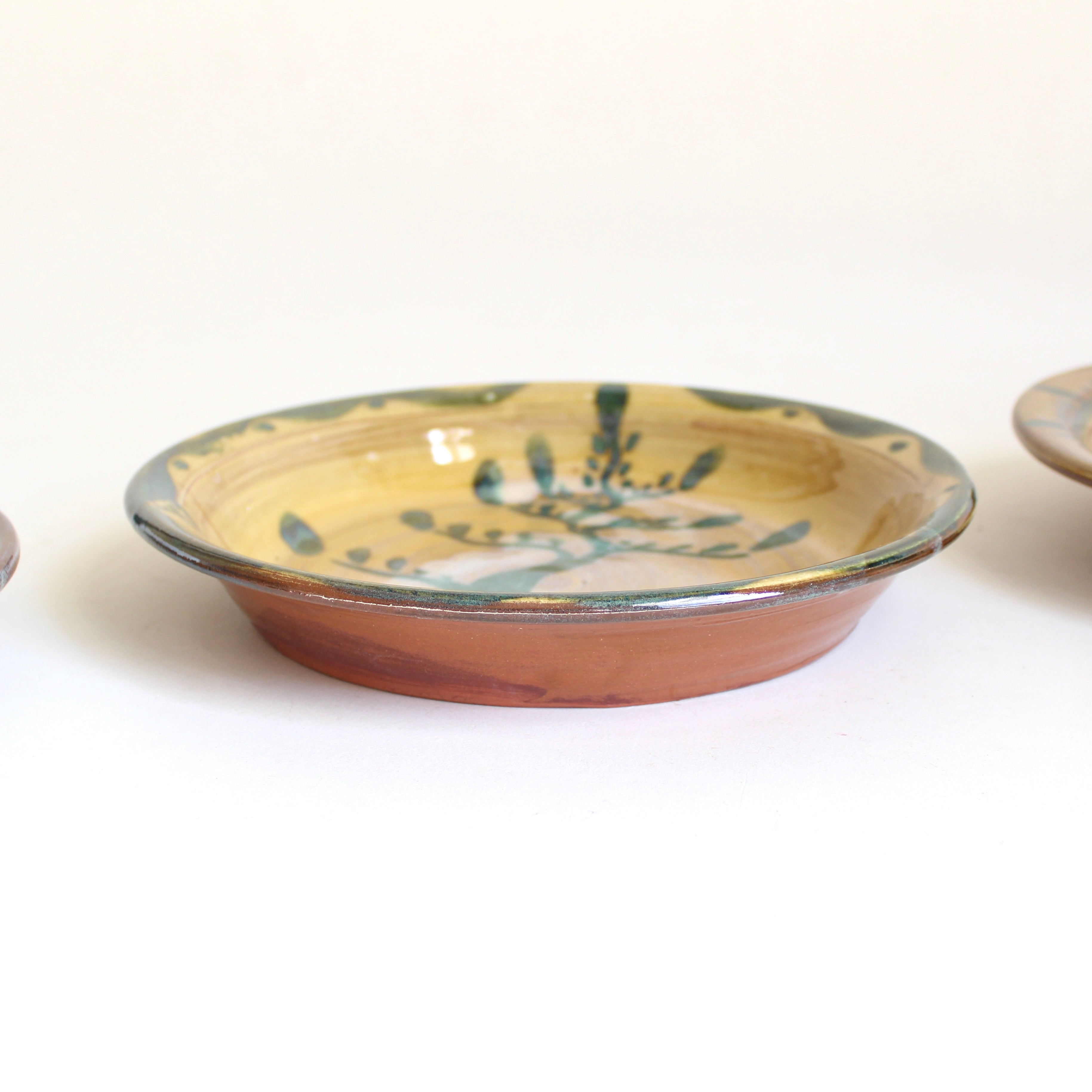 This traditional folk pottery was hand thrown and decorated in the American tradition of the colonial era redware potters. Both functional and beautiful, this plate could be perfect for baking pies or serving any fine meal. Non lead glaze , dish washer safe.
