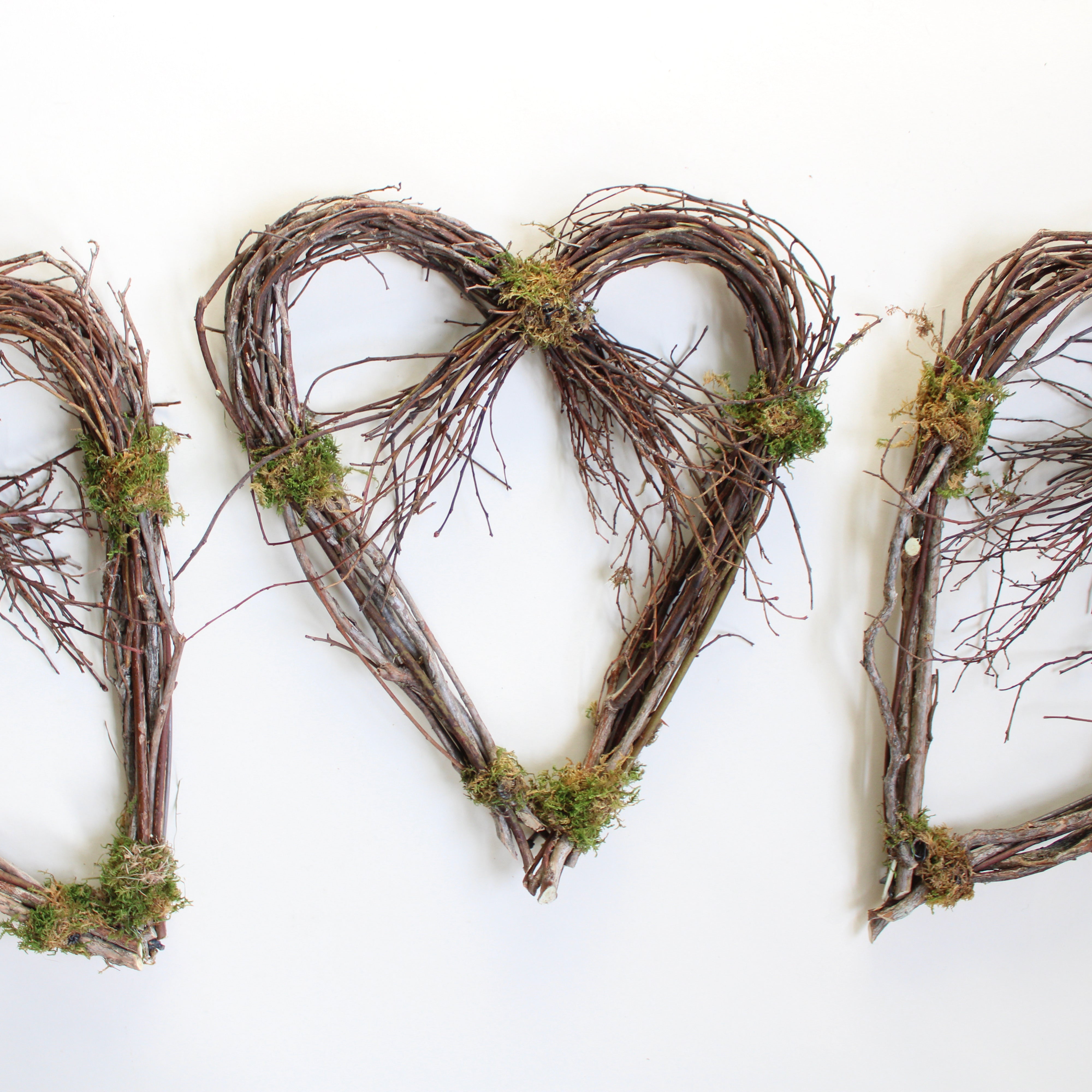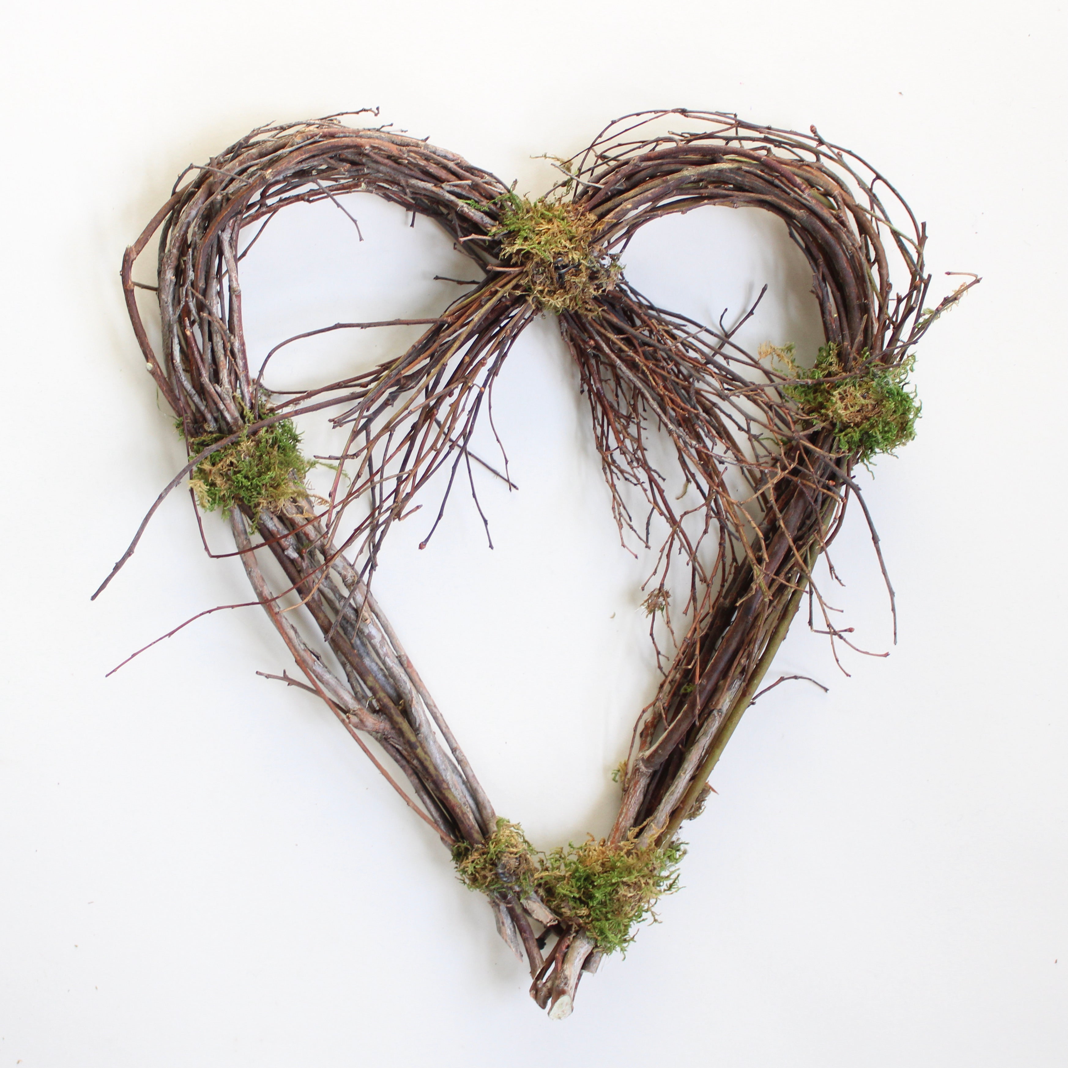 Add a charming touch to your front door or blank wall with a heart-shaped wreath. Crafted from dried and twisted blueberry vines and accented with preserved moss, this natural beauty is perfect as-is or easily personalized with dried flowers and a bow.