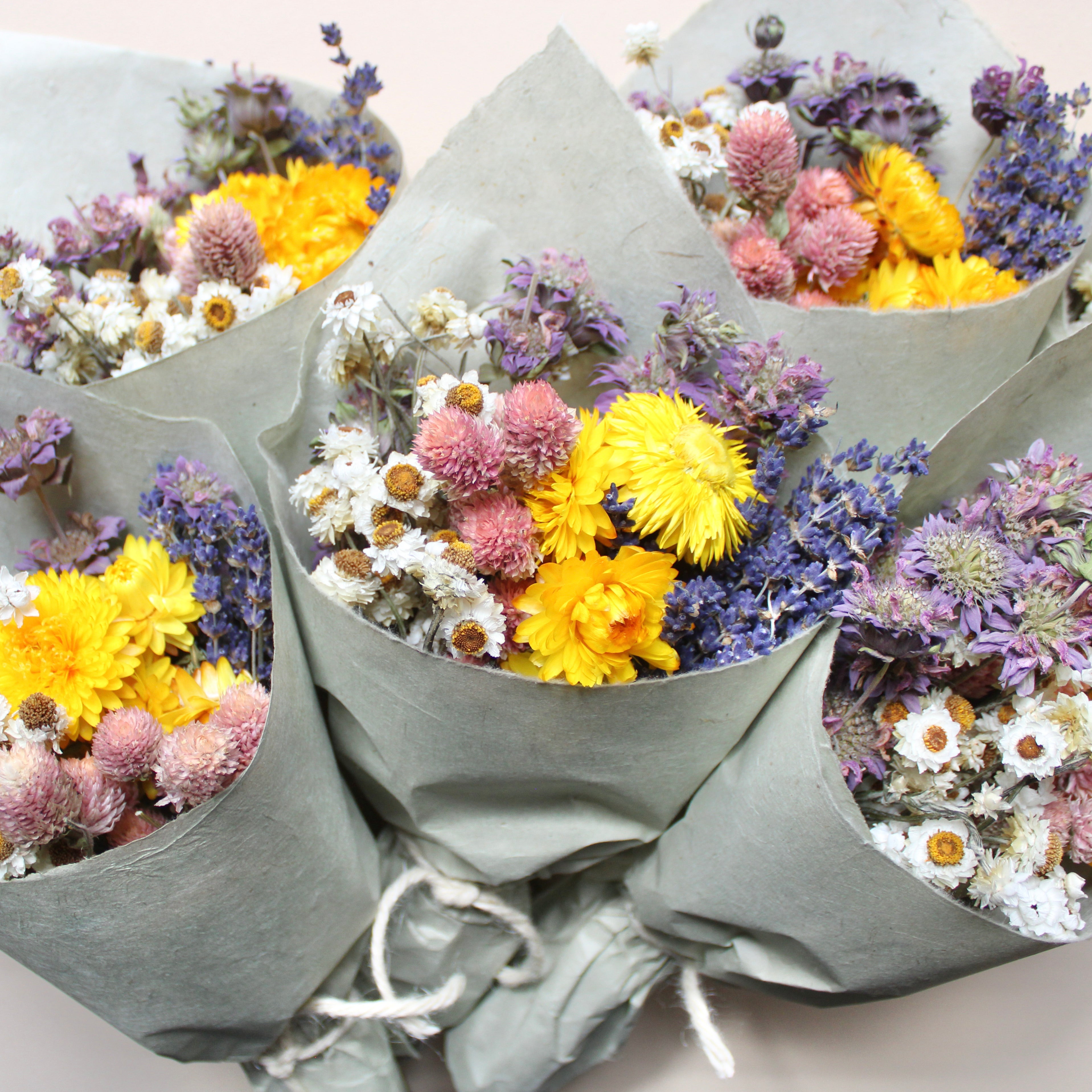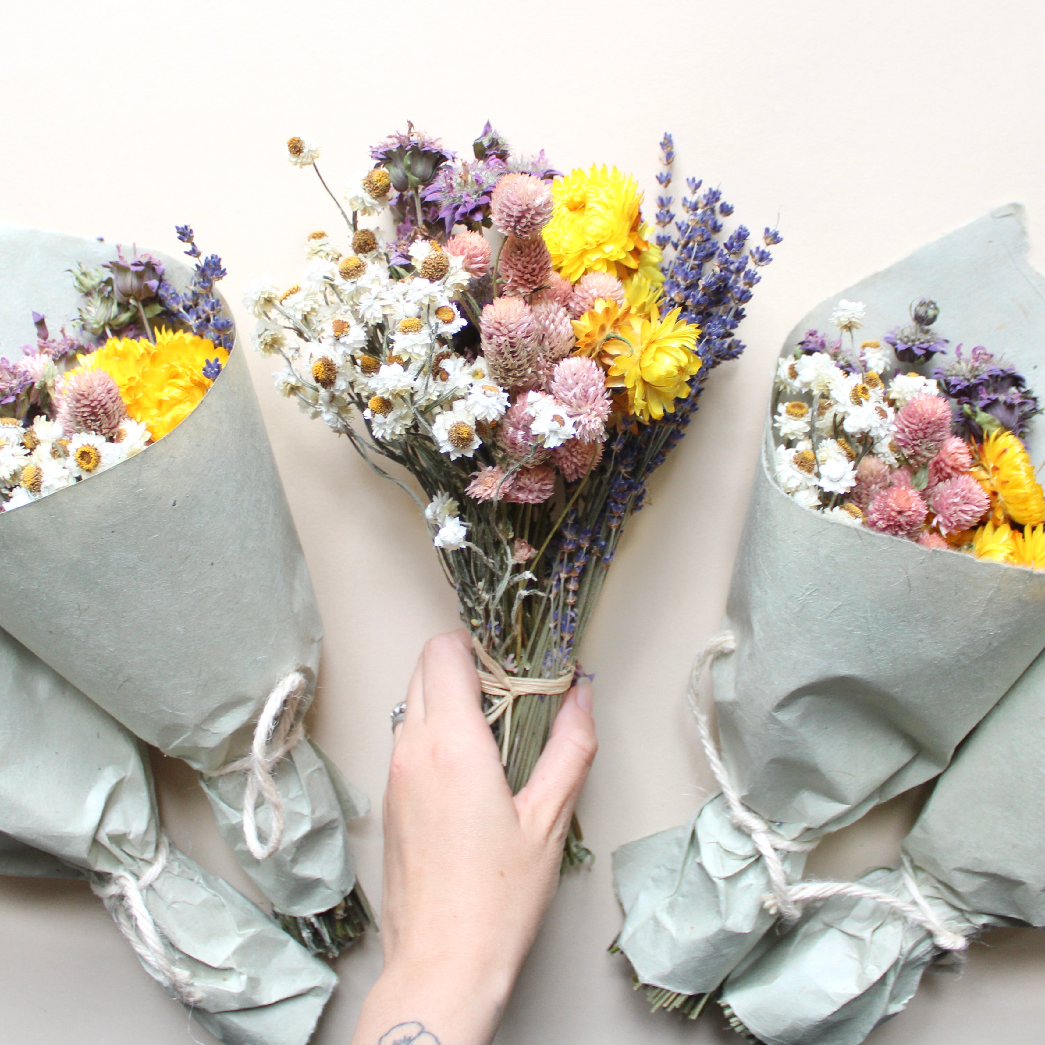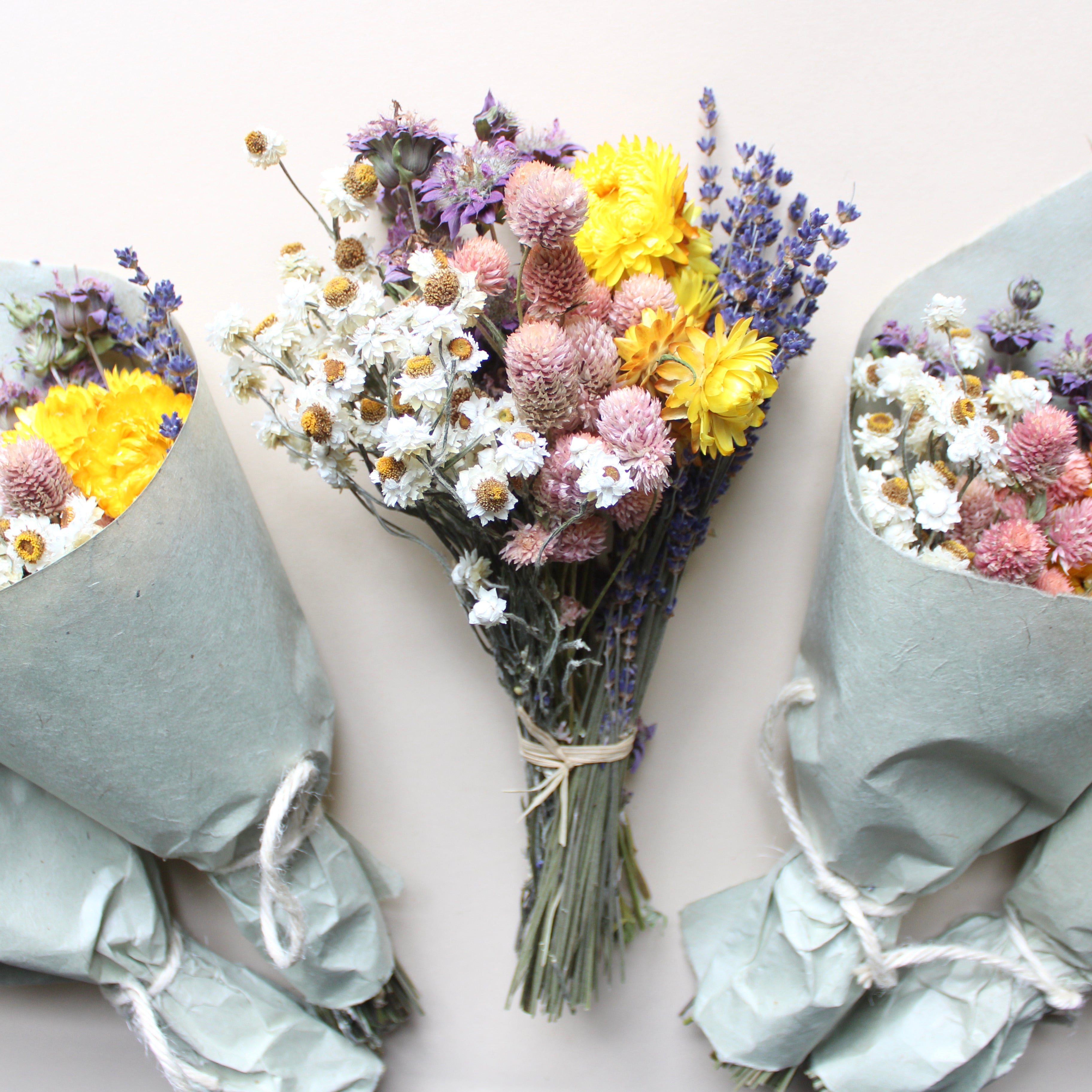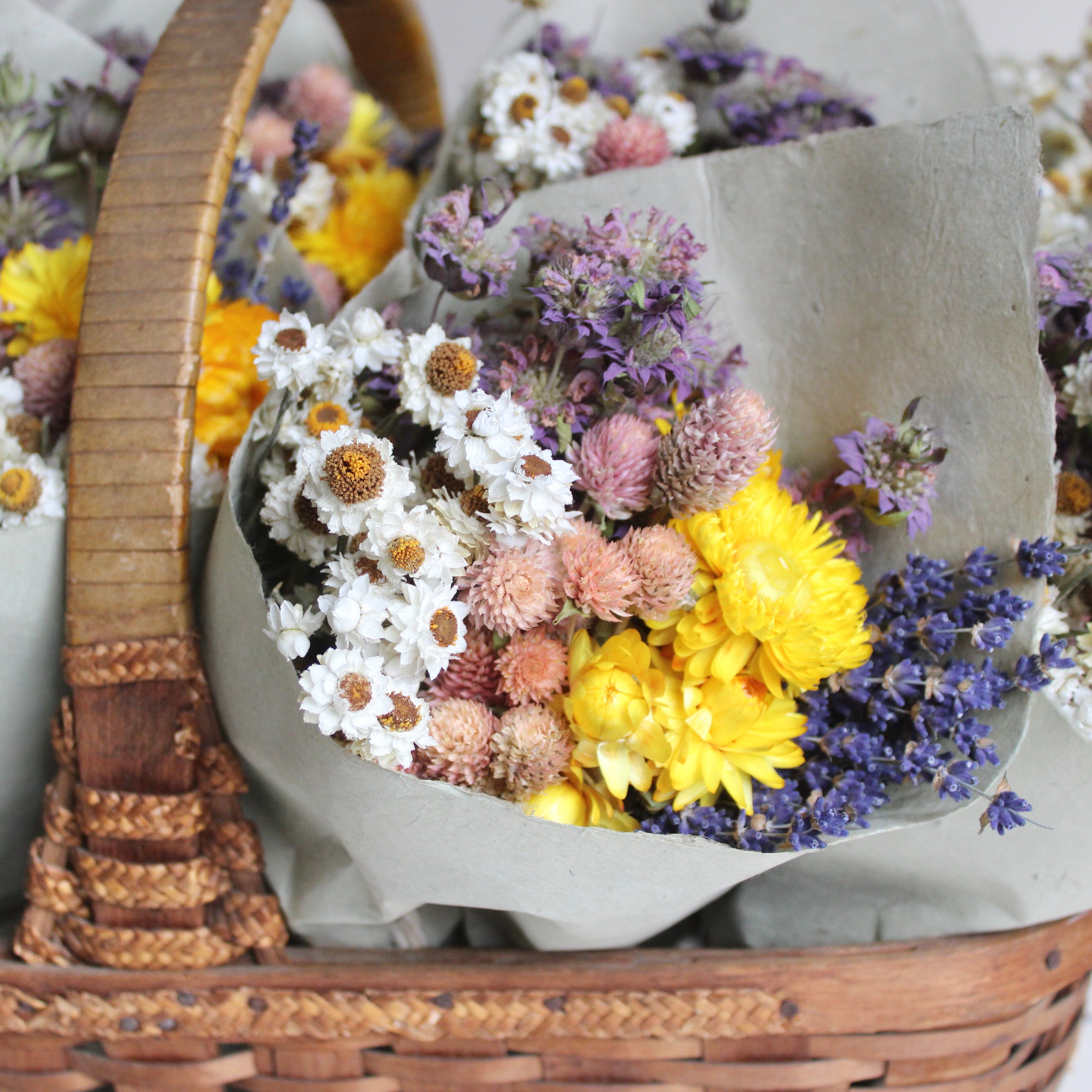 Homegrown Bouquet features lavender, strawflower, gomphrena, ammobium, and lemon mint.