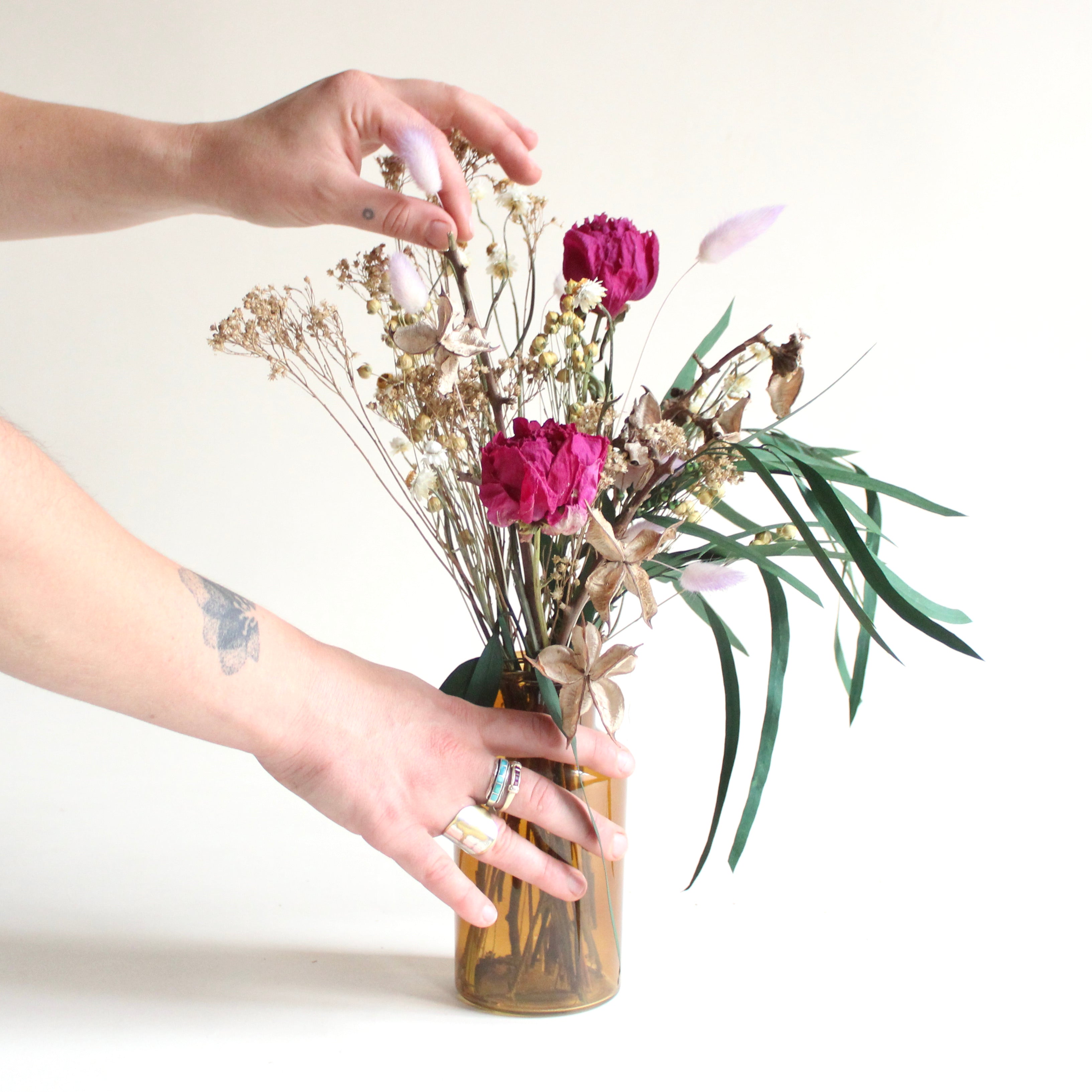 Be your own florist! Create a long lasting dried flower arrangement with In The Garden DIY Kit. Each kit includes flowers, a glass vase, and an easy to follow step by step guide including universal tips and tricks for any and all future floristry.