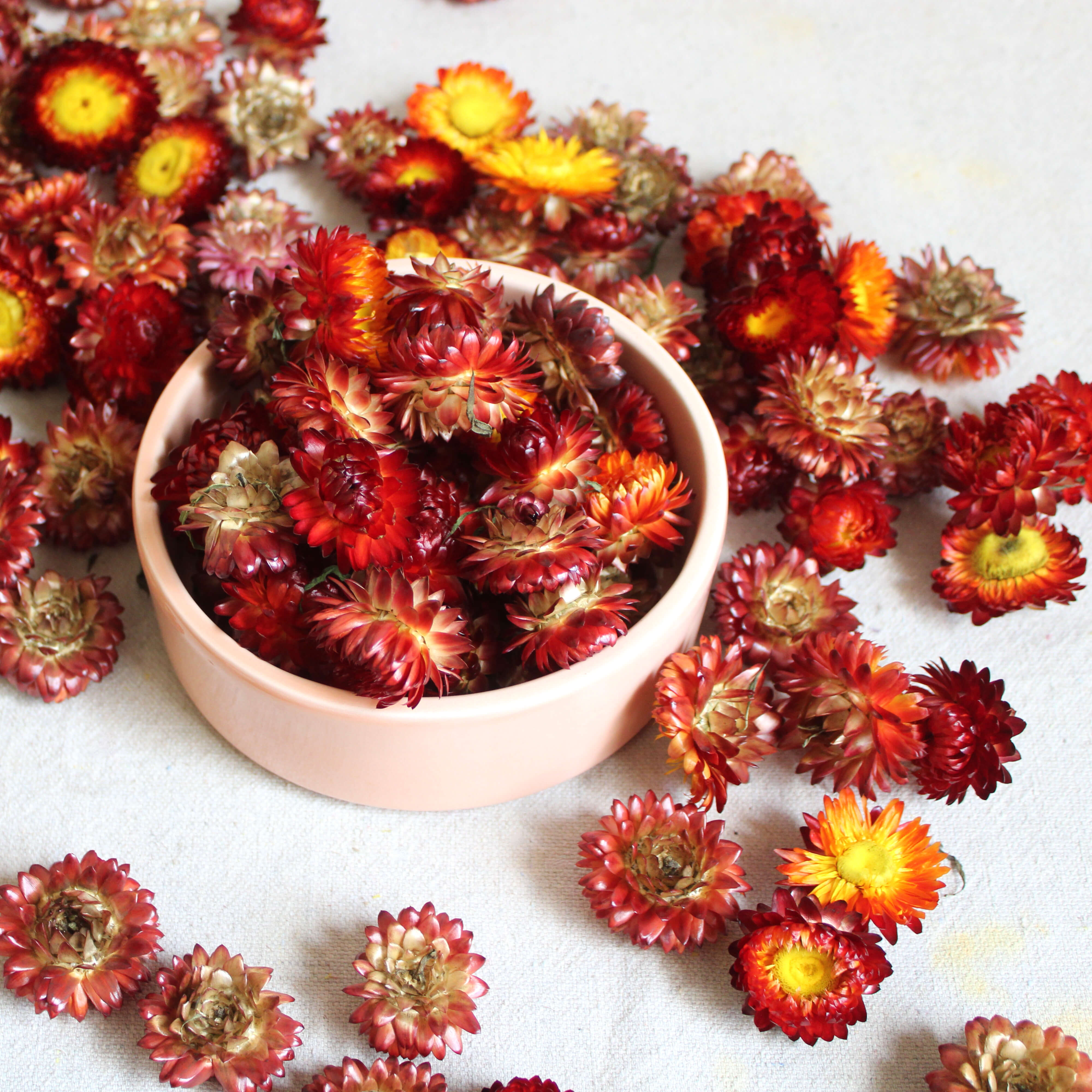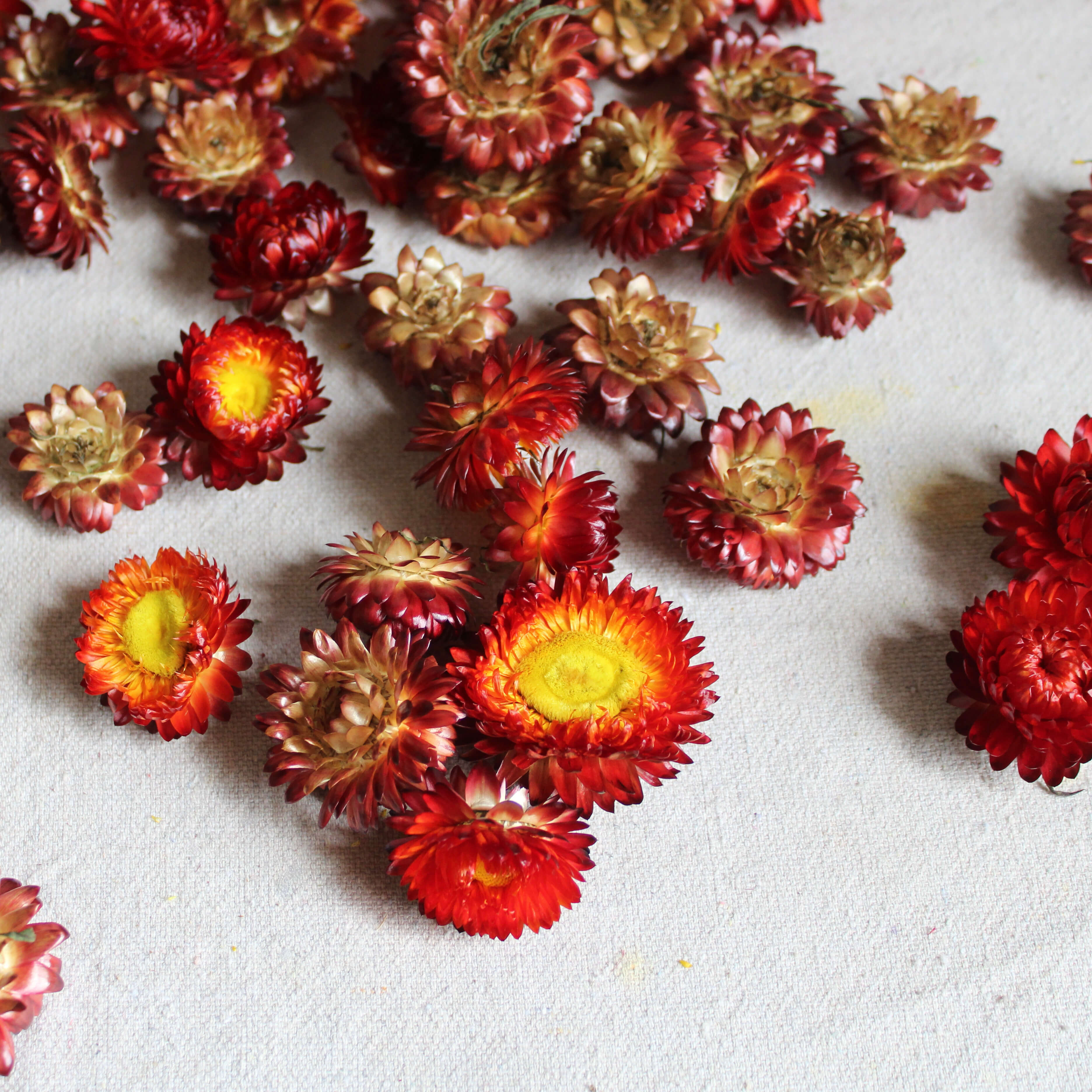 Dress a wreath, adorn a flower crown, string a garland, and so much more with dried strawflower heads. These little long lasting bursts of color are a wonderful addition to any crafter's or florist's collection. There are approximately 150 to 170 heads per 3oz. bag.