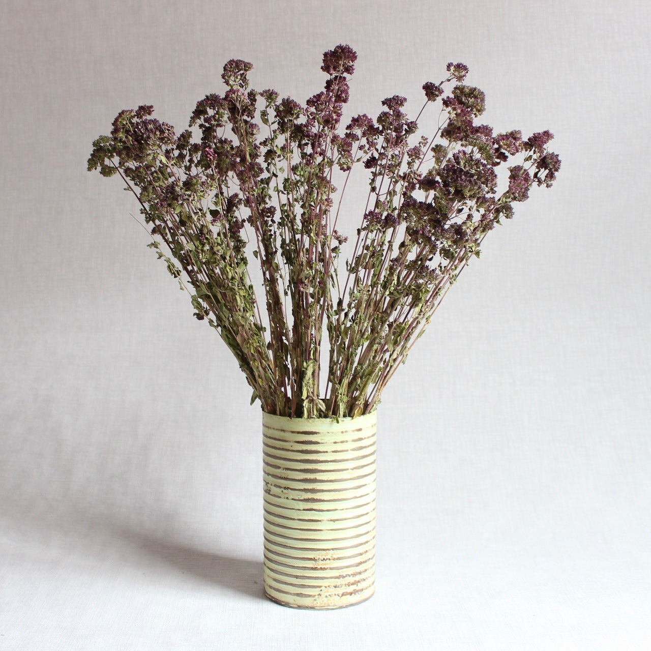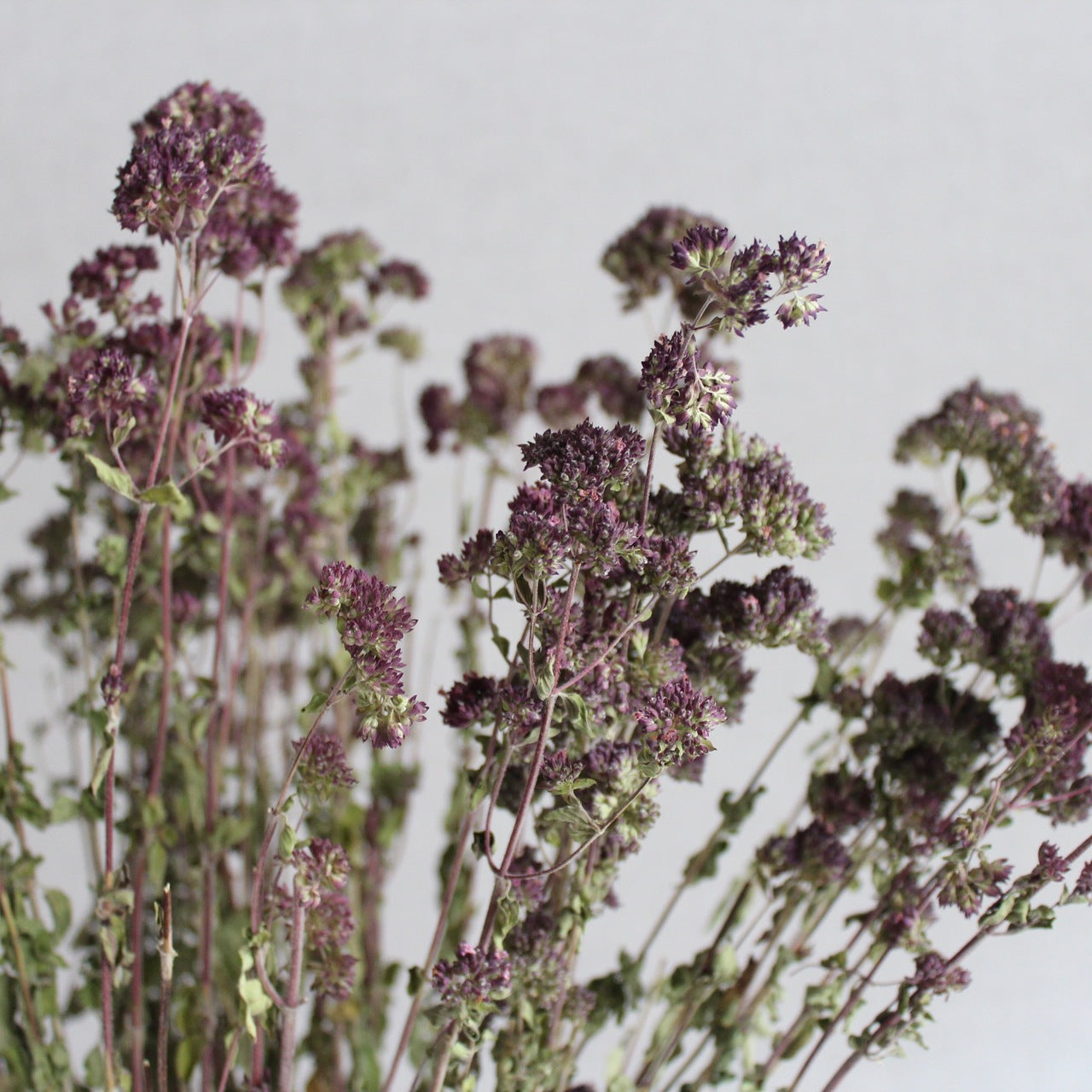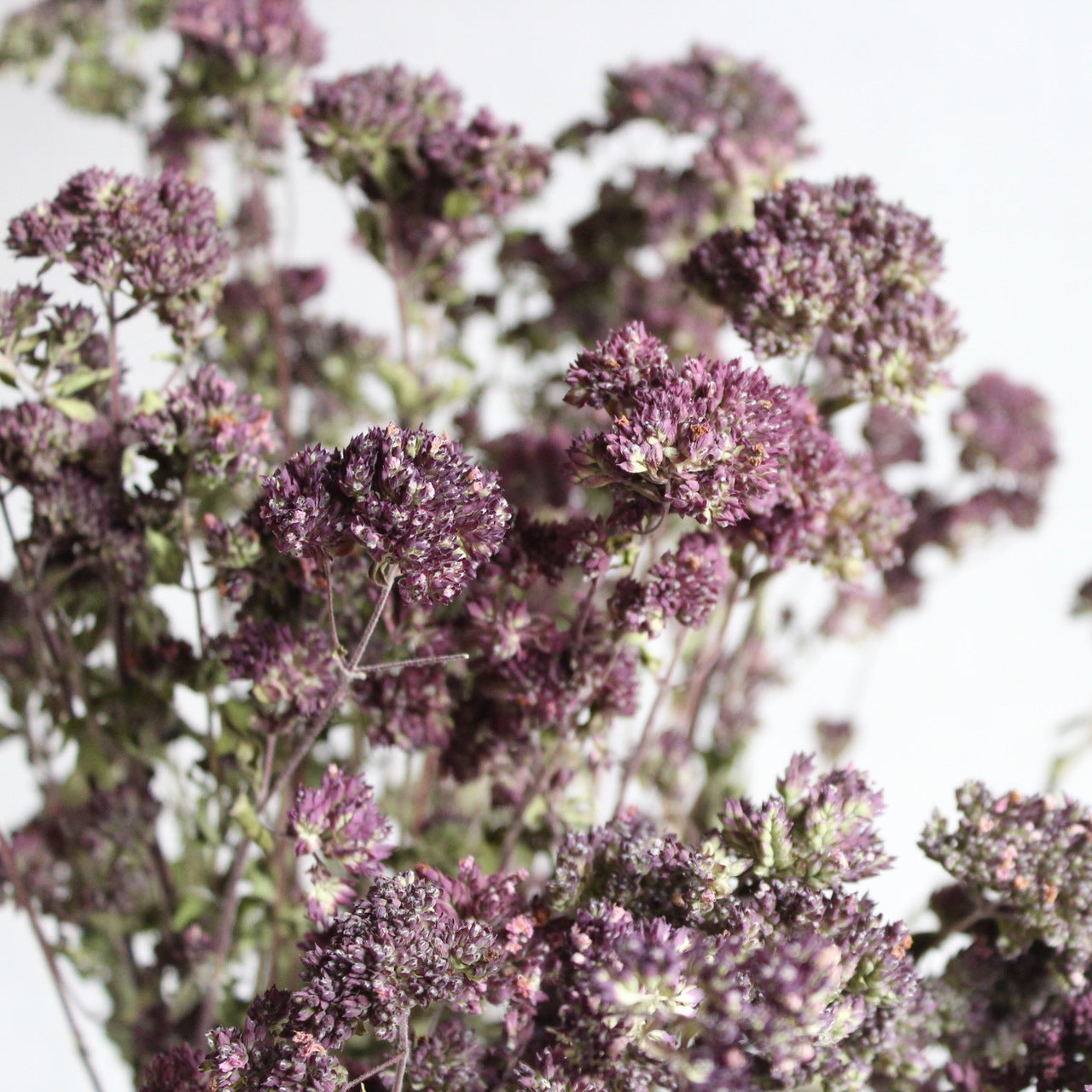Naturally dried greek oregano has been cut and harvested, yet still carries its signature scent. Agitated just slightly and you'll get a whiff of the perennial herb. Aside from the soothing aroma, greek oregano boasts an attractive shade of purple, a color that comes naturally to the plant without any enhancement. Perfect for filler in your arrangements, replacing green foliage with purple will modernize your creations.