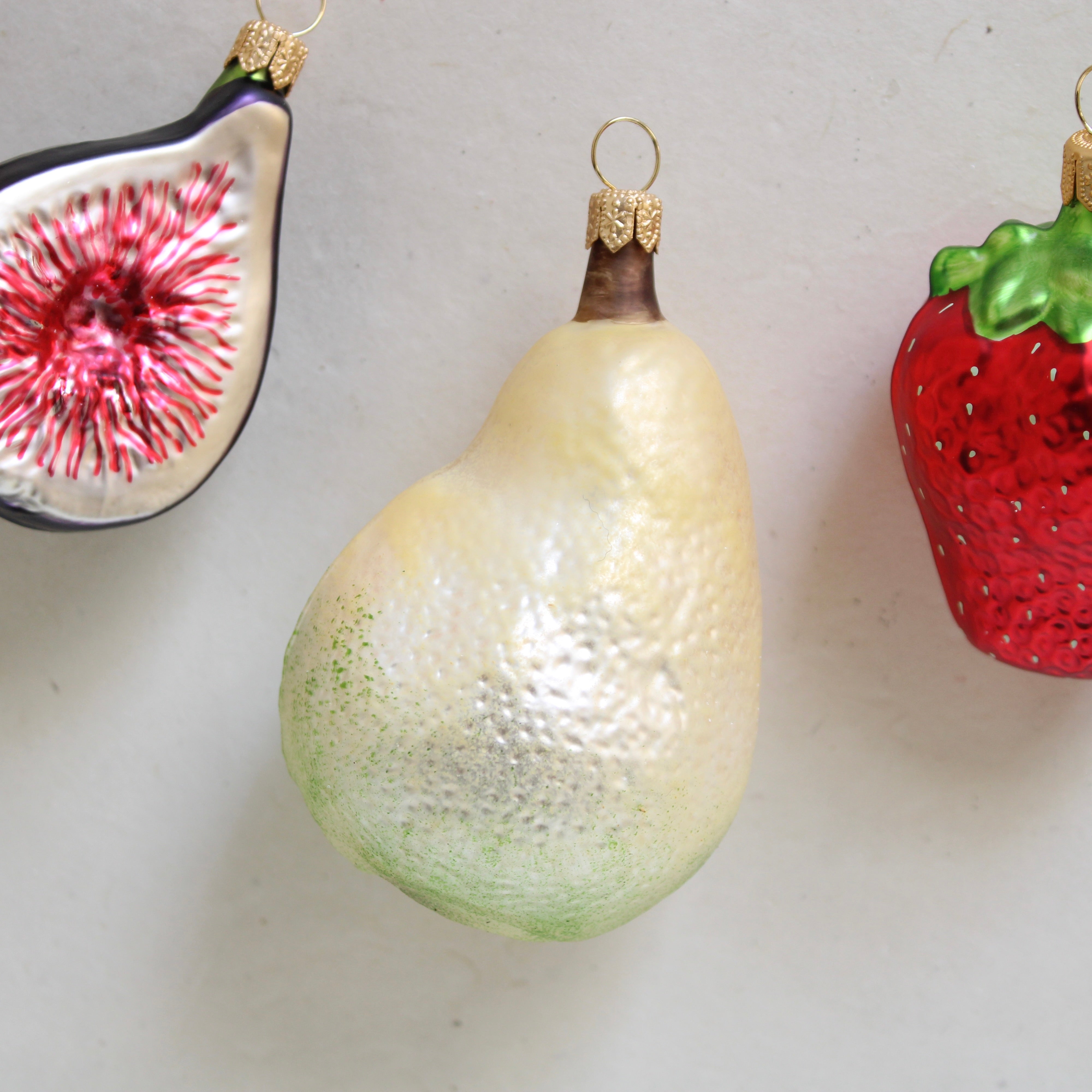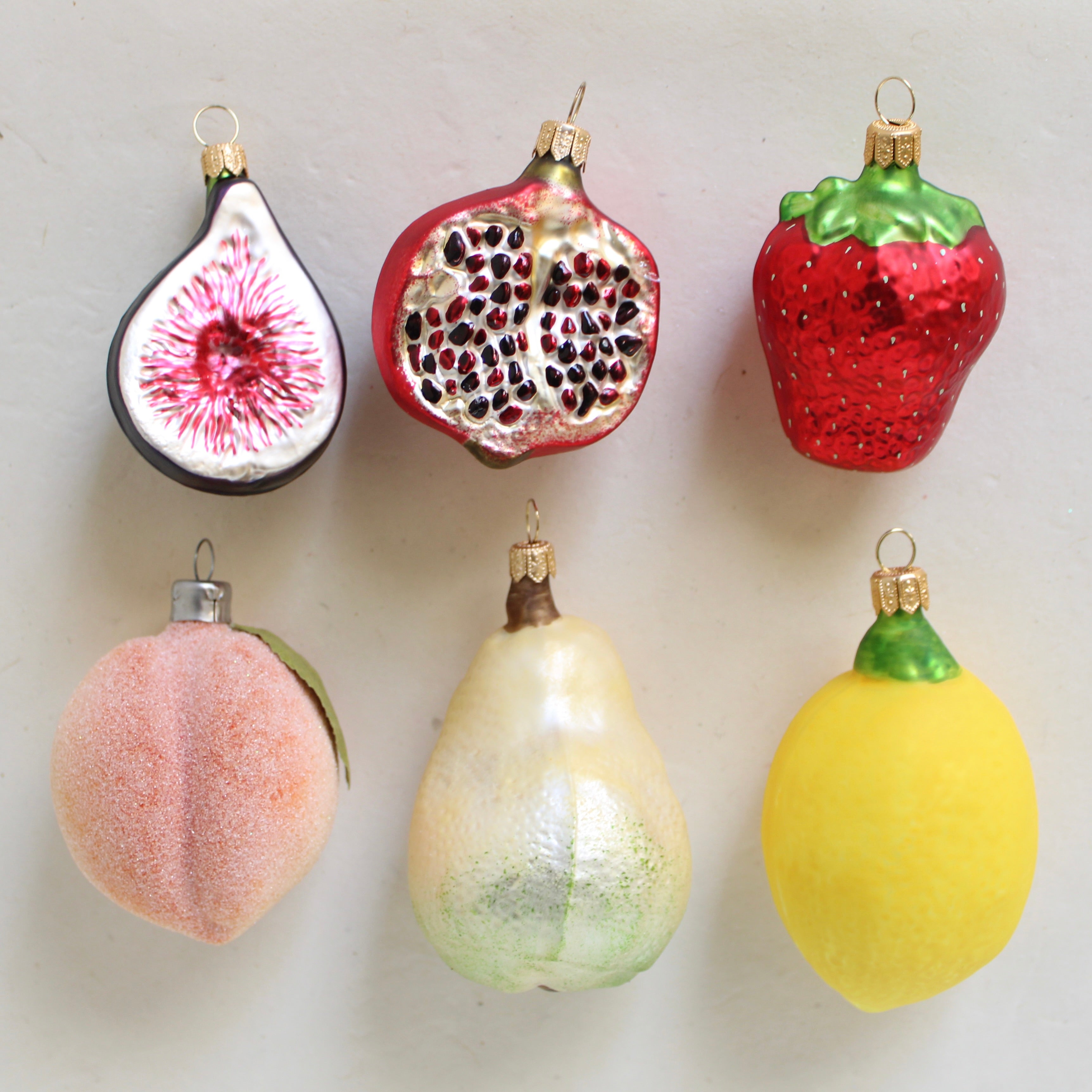 Like little jewels for the tree, these handblown glass ornaments are treasures to keep for years to come. Choose a favorite fruit or begin a collection—the delicate details on each one are simply irresistible. Extra special and full of charm, they make a thoughtful gift or a shining addition to your own holiday tradition.