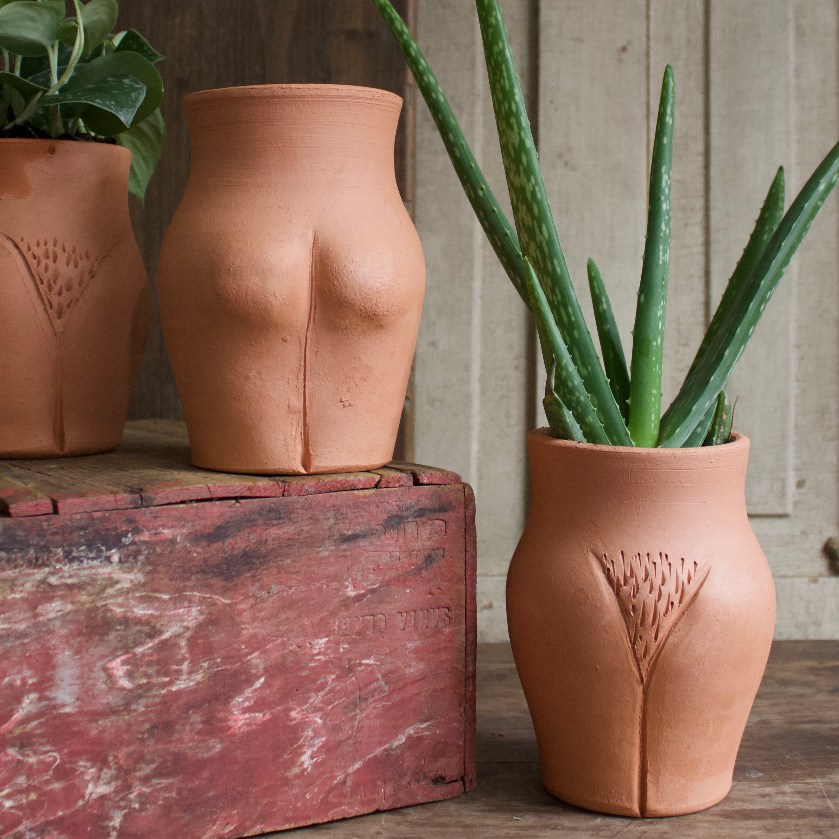 The feminine shape in vase form; these cheeky pots are locally made by artist Eric Hahn. Grow favorite houseplants or display dried flowers in these one of a kind terracotta vessels.