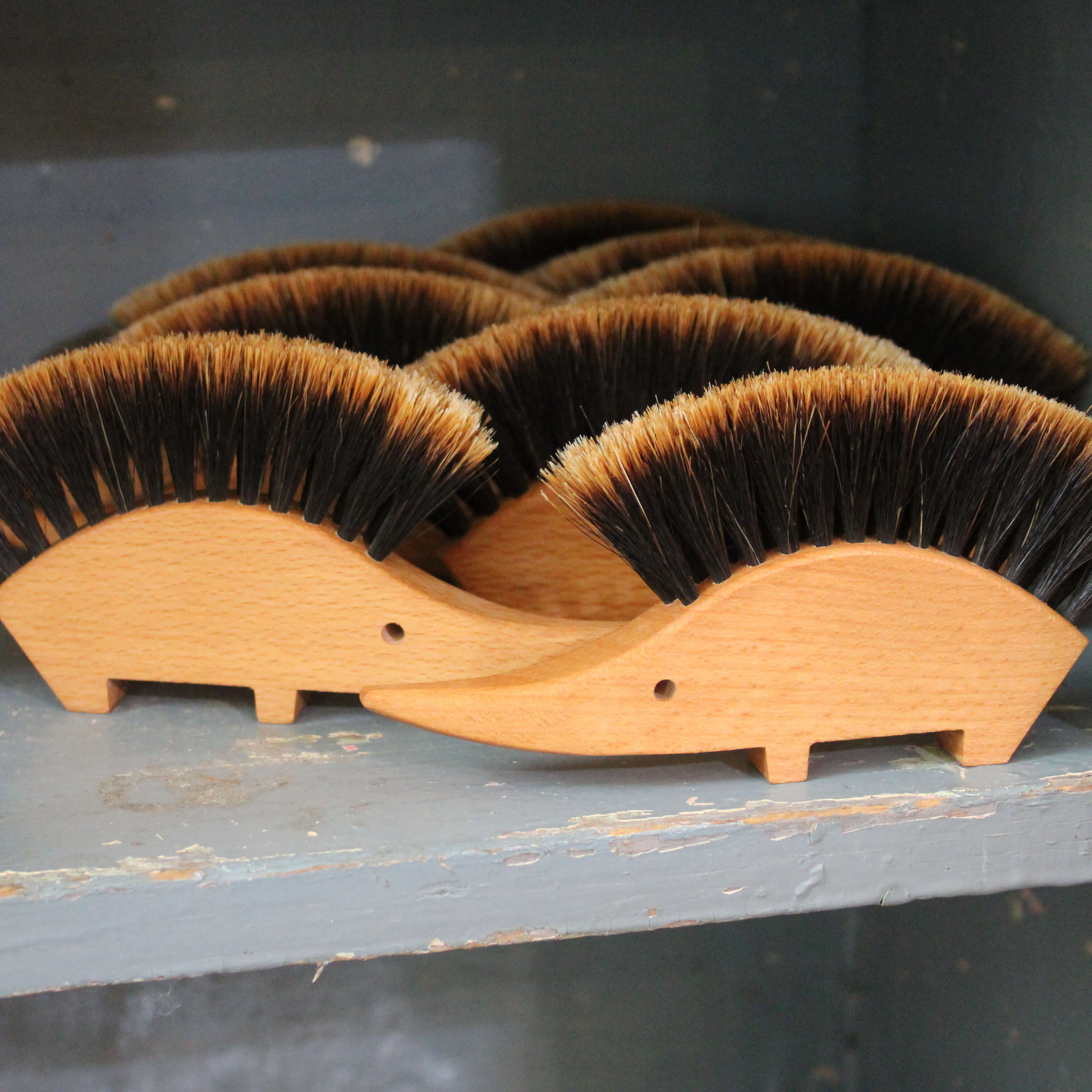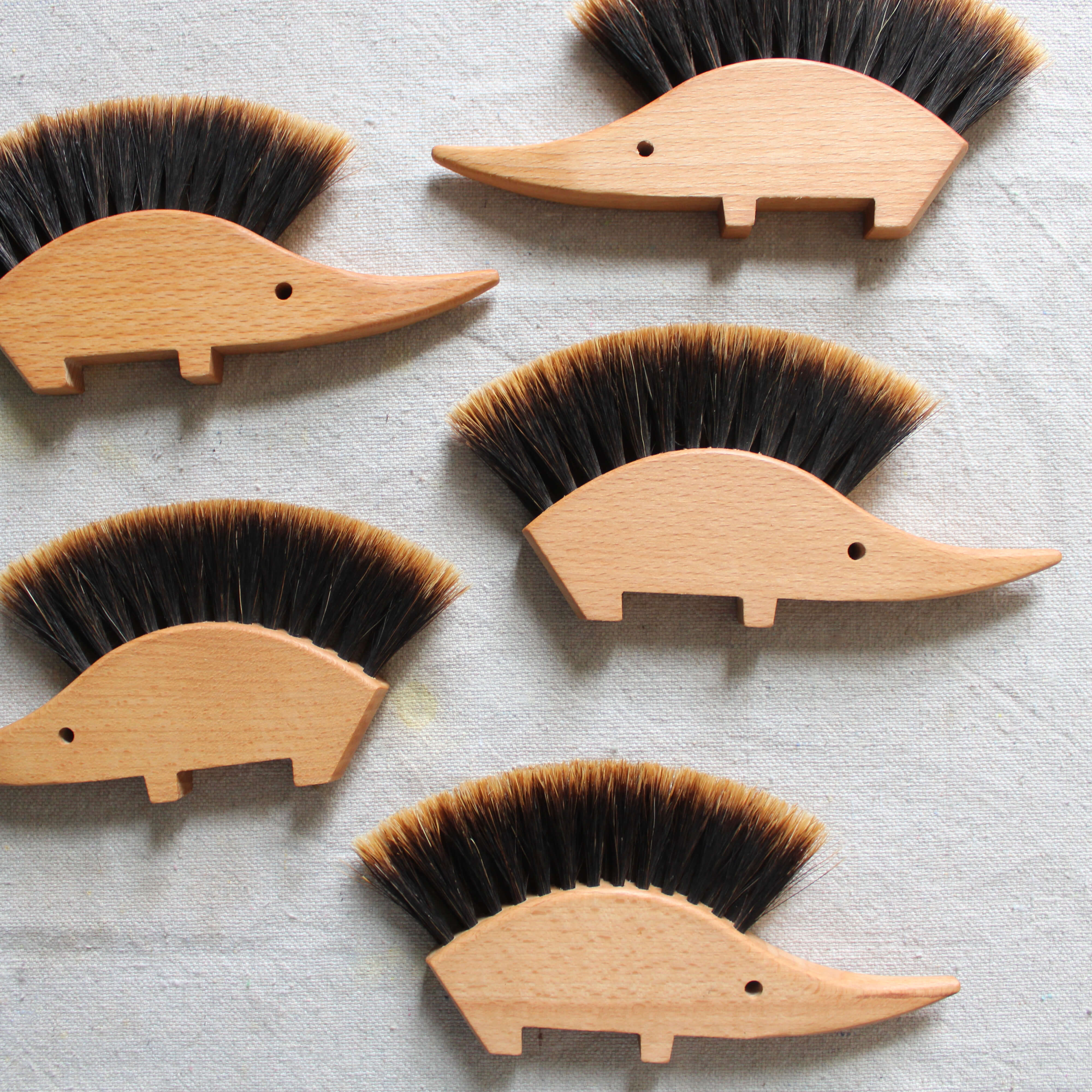Hedgehog Duster is made of oiled beech wood and ombré slotted horse hair. Not only adorable but functional. Keep out on display for a quick table sweep or dusting of fine surfaces.
