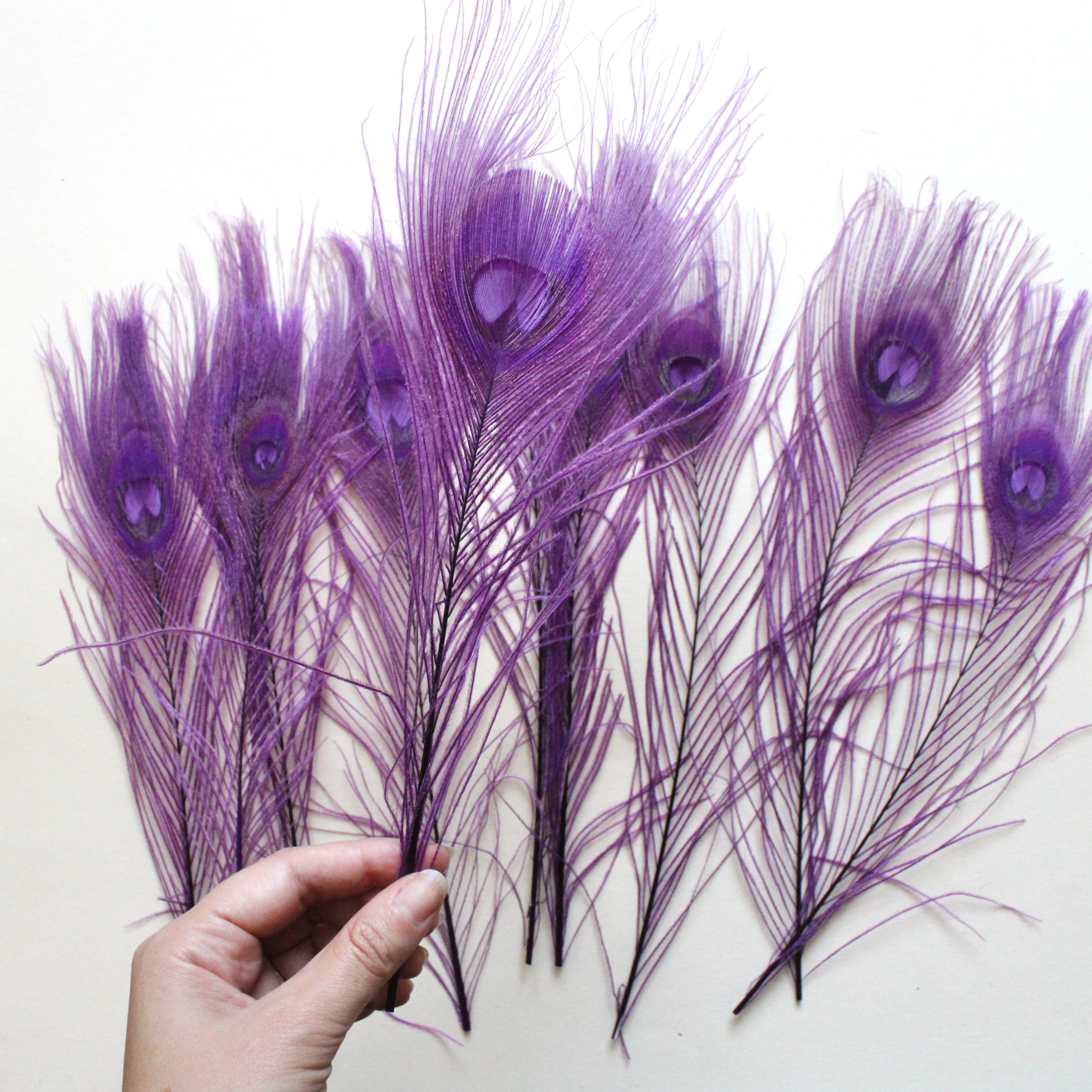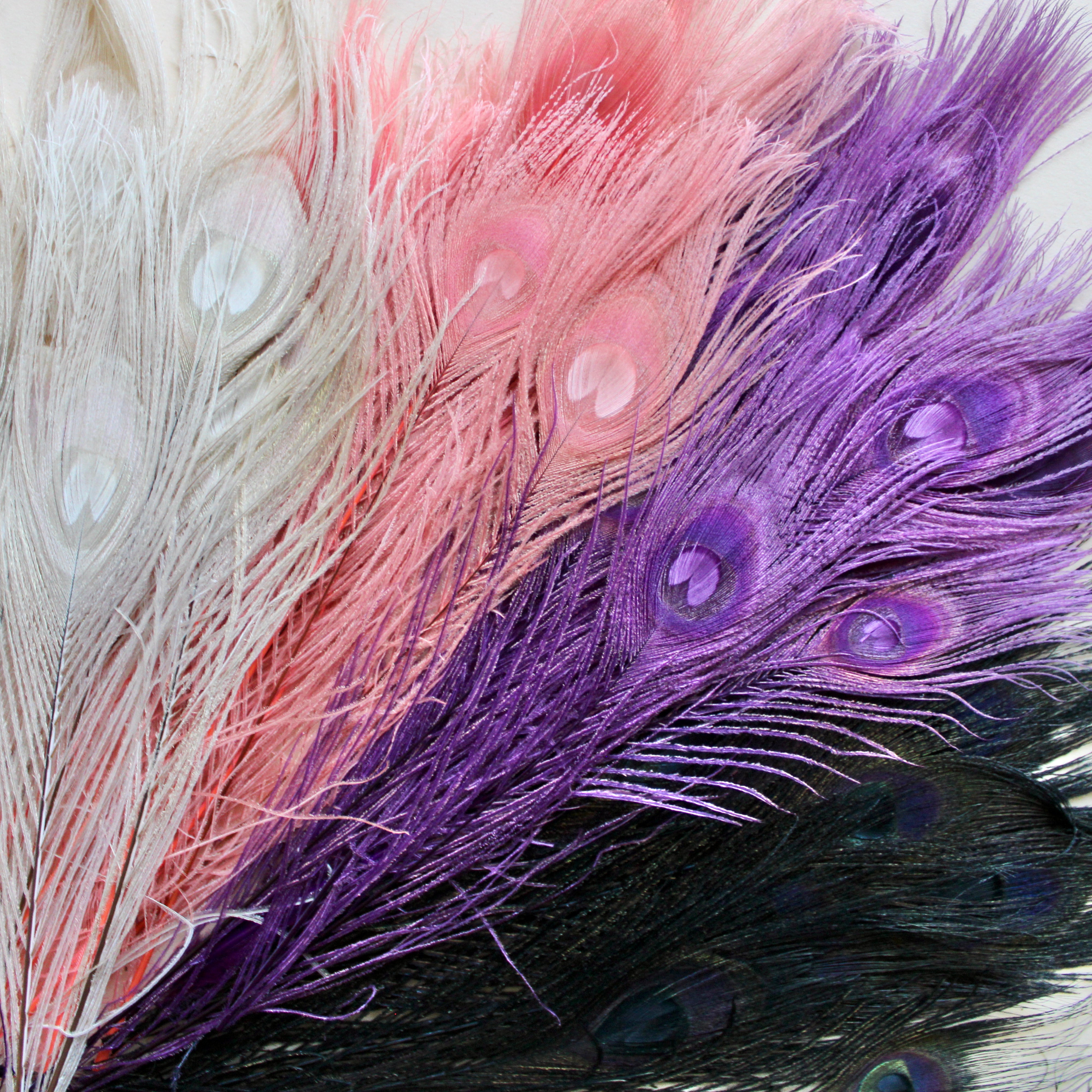 Add a feathery touch to bouquets, arrangements, and wreaths. These ethereal peacock feathers have been dyed, each with a signature iridescent gleam.
