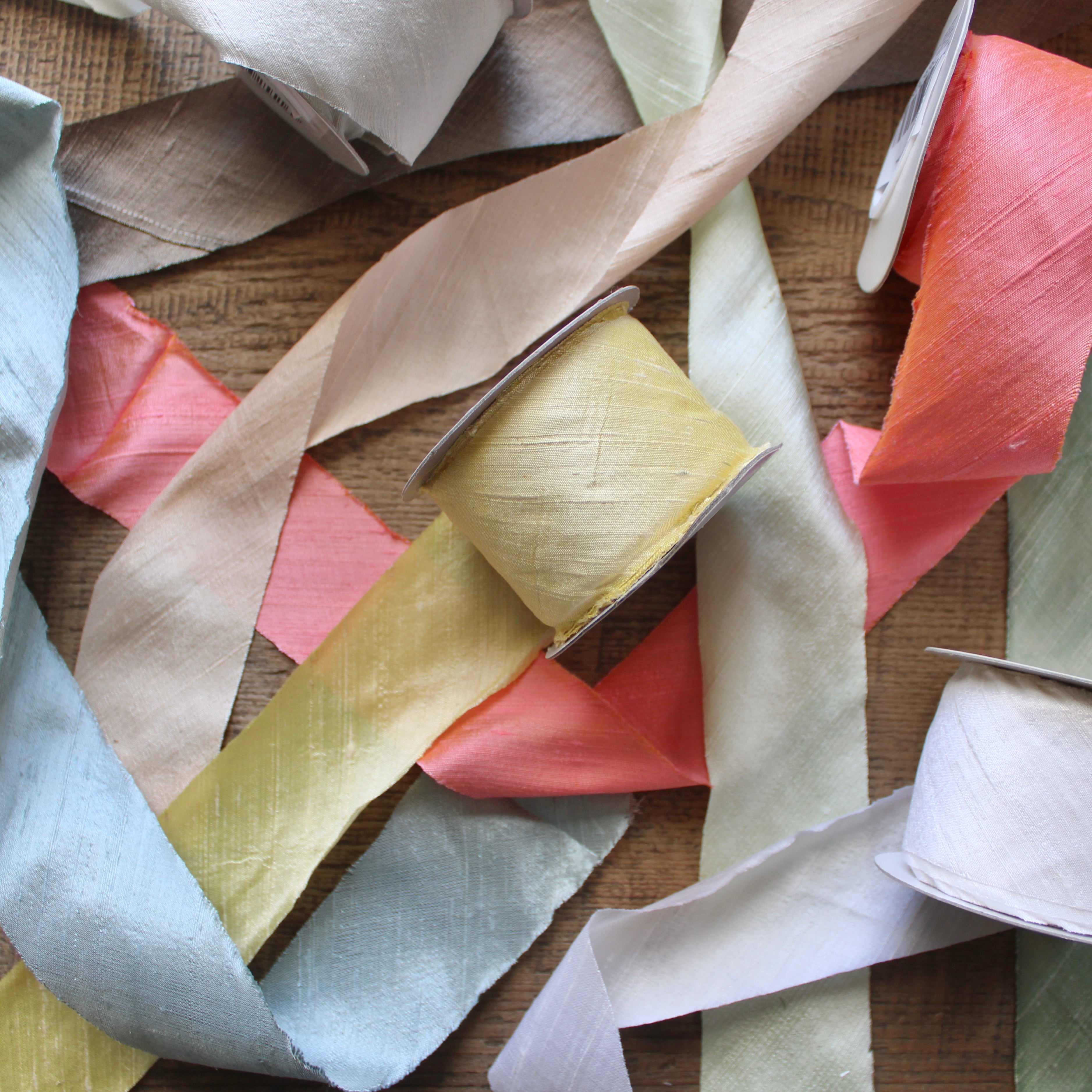 Tie off bouquets, hang wreaths, and bow gifts with luxurious Silk Ribbon available in a rainbow of soft hues.
