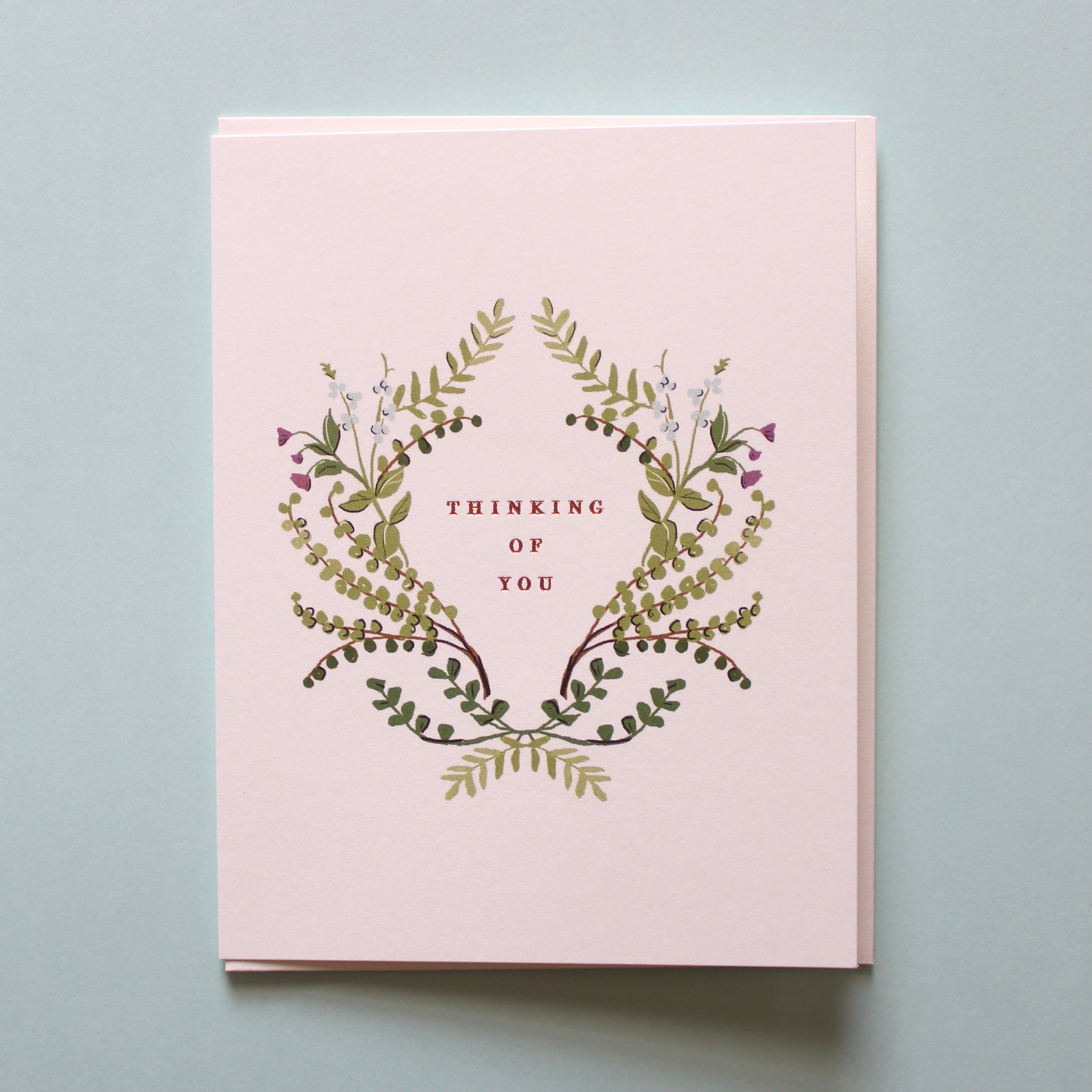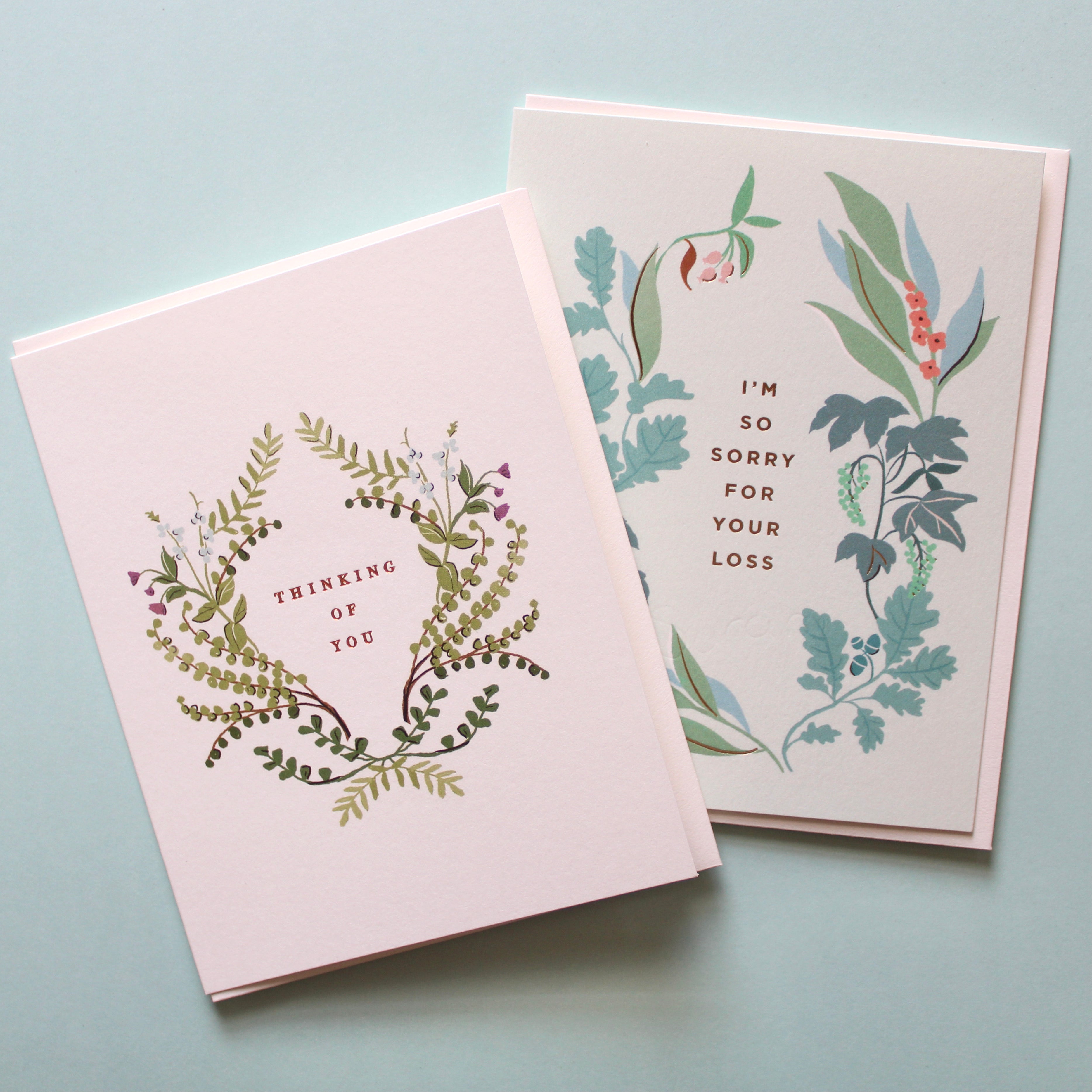 Beautiful warm white cover paper. 4.25 x 5.5". Blank interior. Includes coordinating envelope and plastic sleeve. Made in USA.