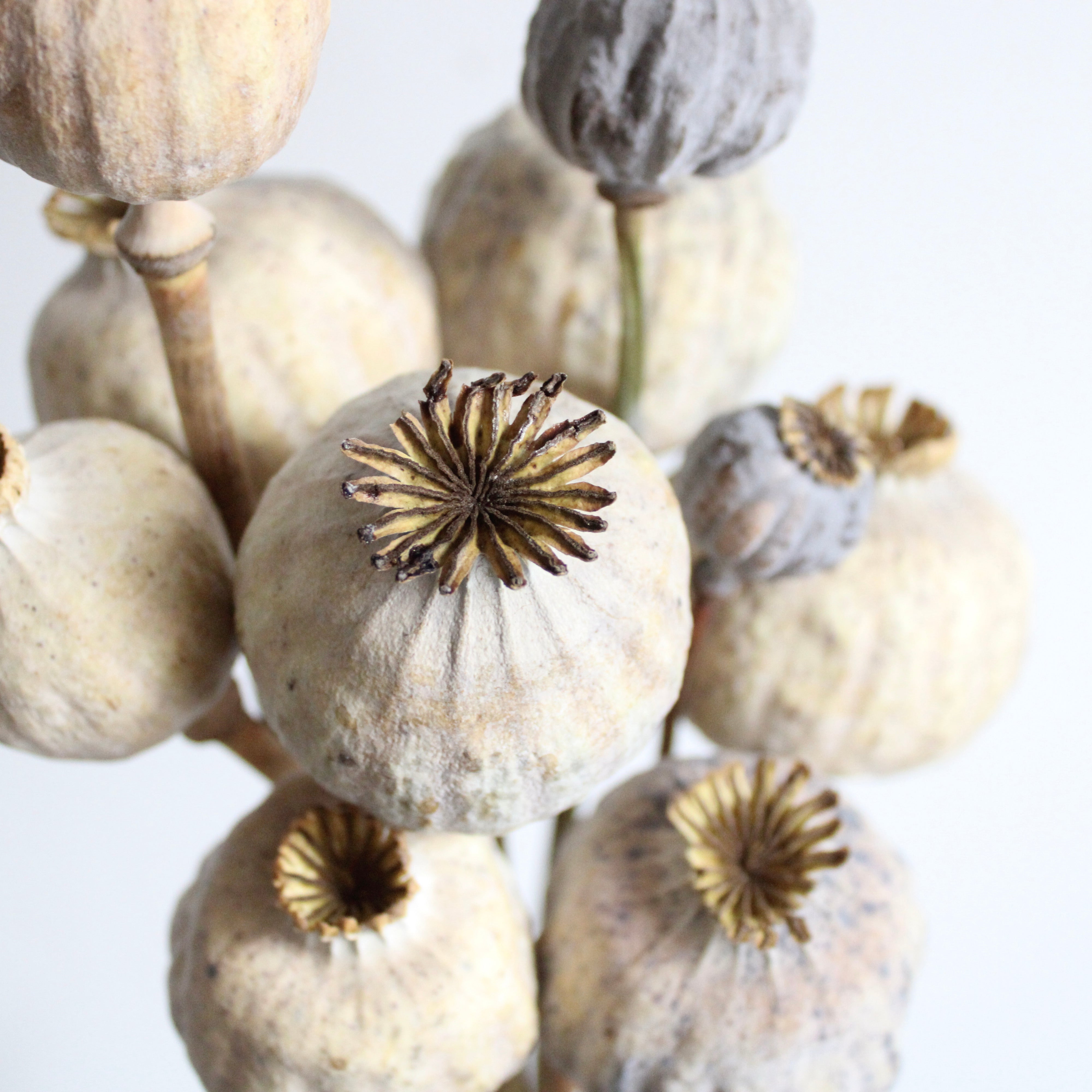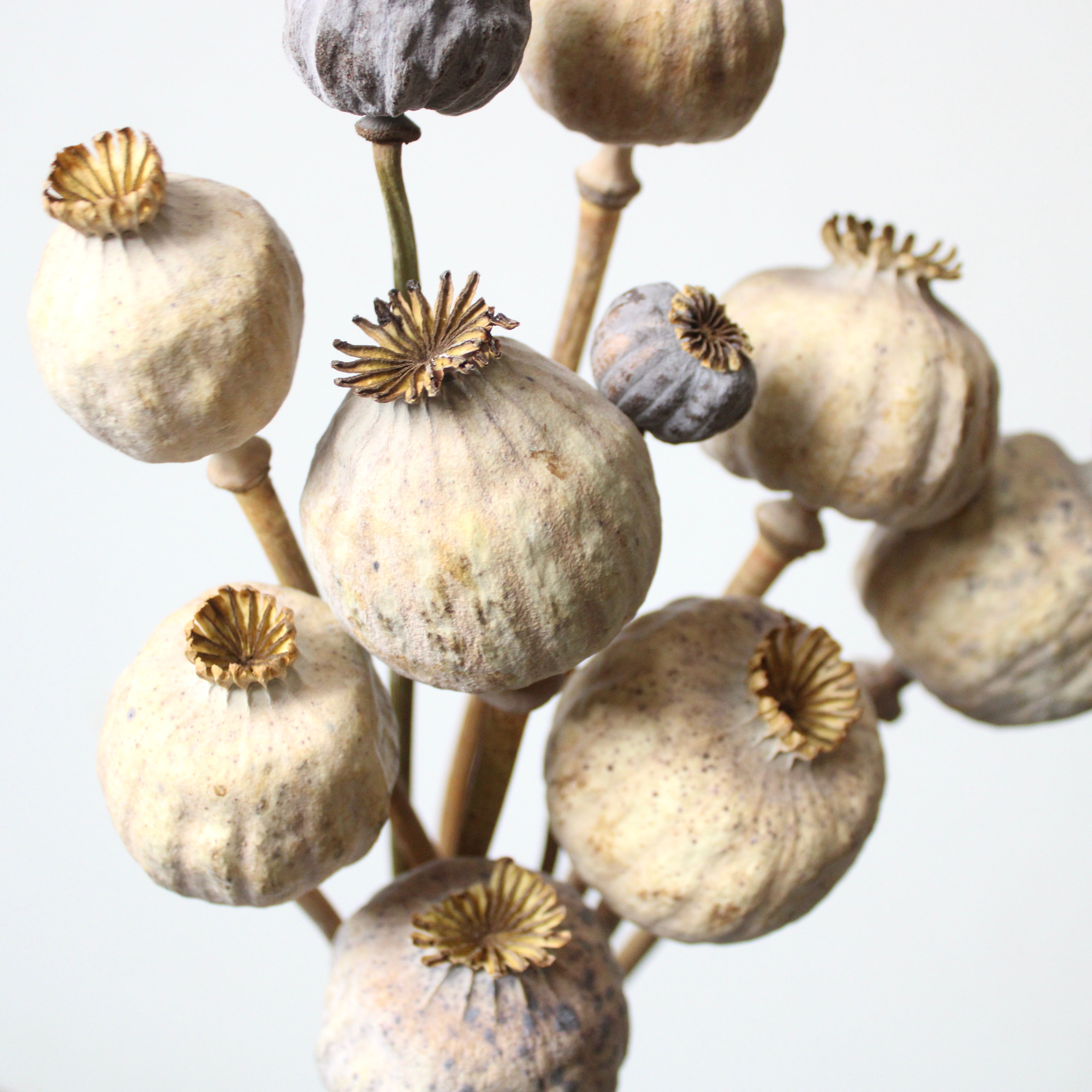 Elevate your dried flower arrangements with the visual intrigue and unique texture of dried giant poppies. Their whimsical shapes add a captivating focal point, making them a standout feature in any design.