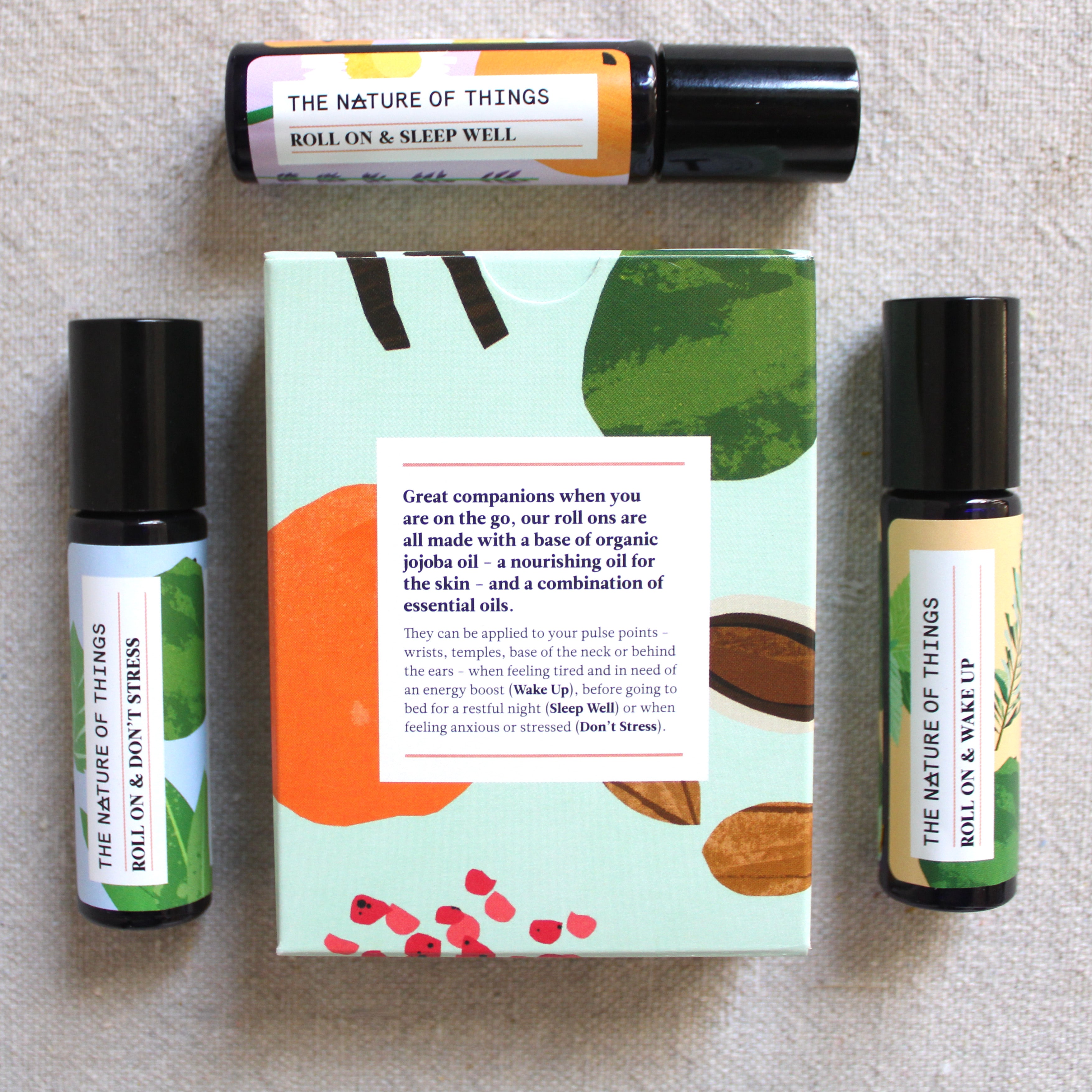 Great companions when you are on the go, our roll ons are all made with a base of organic jojoba oil - a nourishing oil for the skin - and a combination of essential oils.
