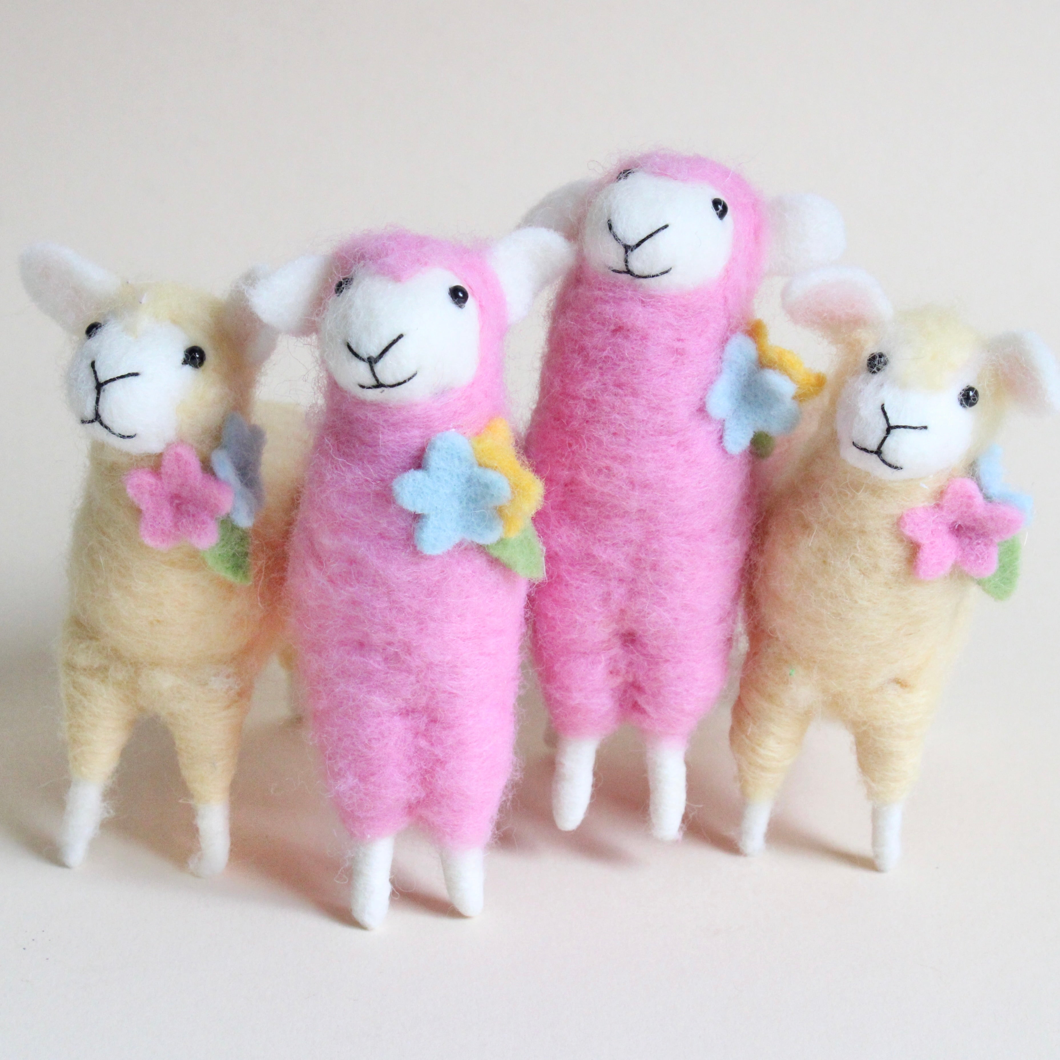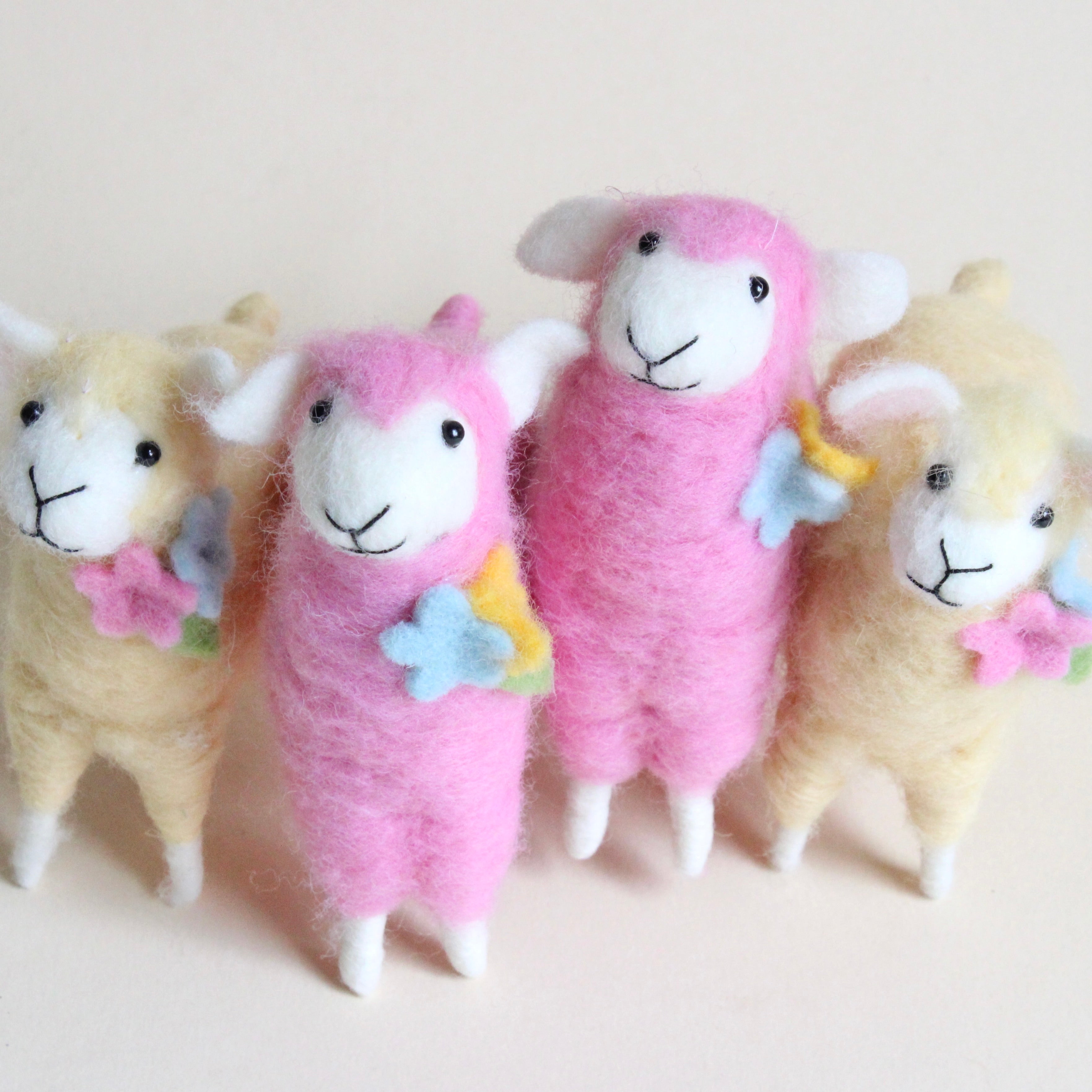 The sweetest little felt sheep offered in pink and yellow to brighten seasonal decorating. These smiling sweeties are certain to bring a smile to you too!