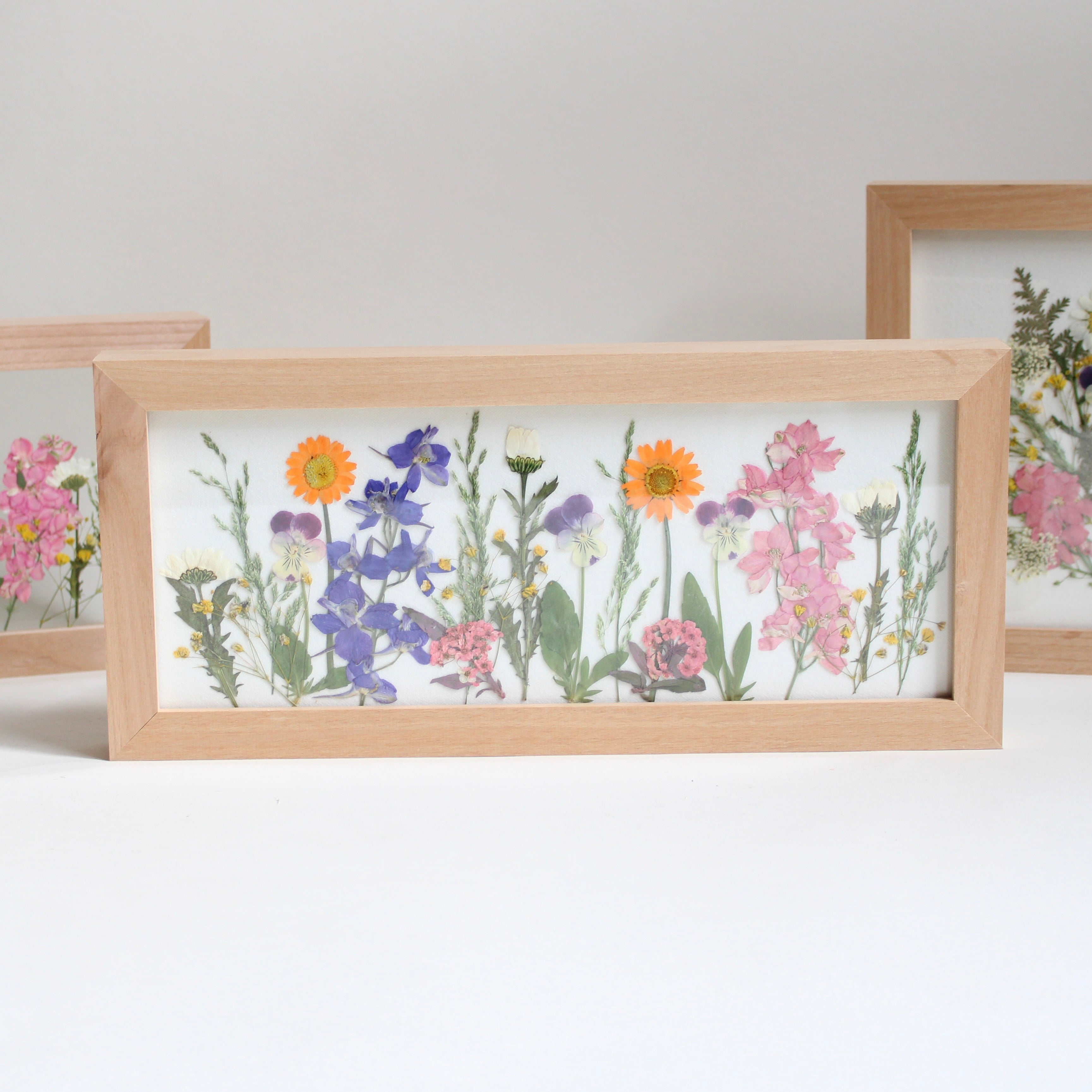 Bring flowers home pressed and framed—an everlasting memento of colorful garden days. Cosmos, pansies, ferns, and more are thoughtfully arranged behind glass in a timeless art made to stand or hang. The Cosmo and Pansy frames are just right for a bookshelf or mantel, while the larger frames are meant for the wall. A small way to keep the wonder of flowers close, all year long.