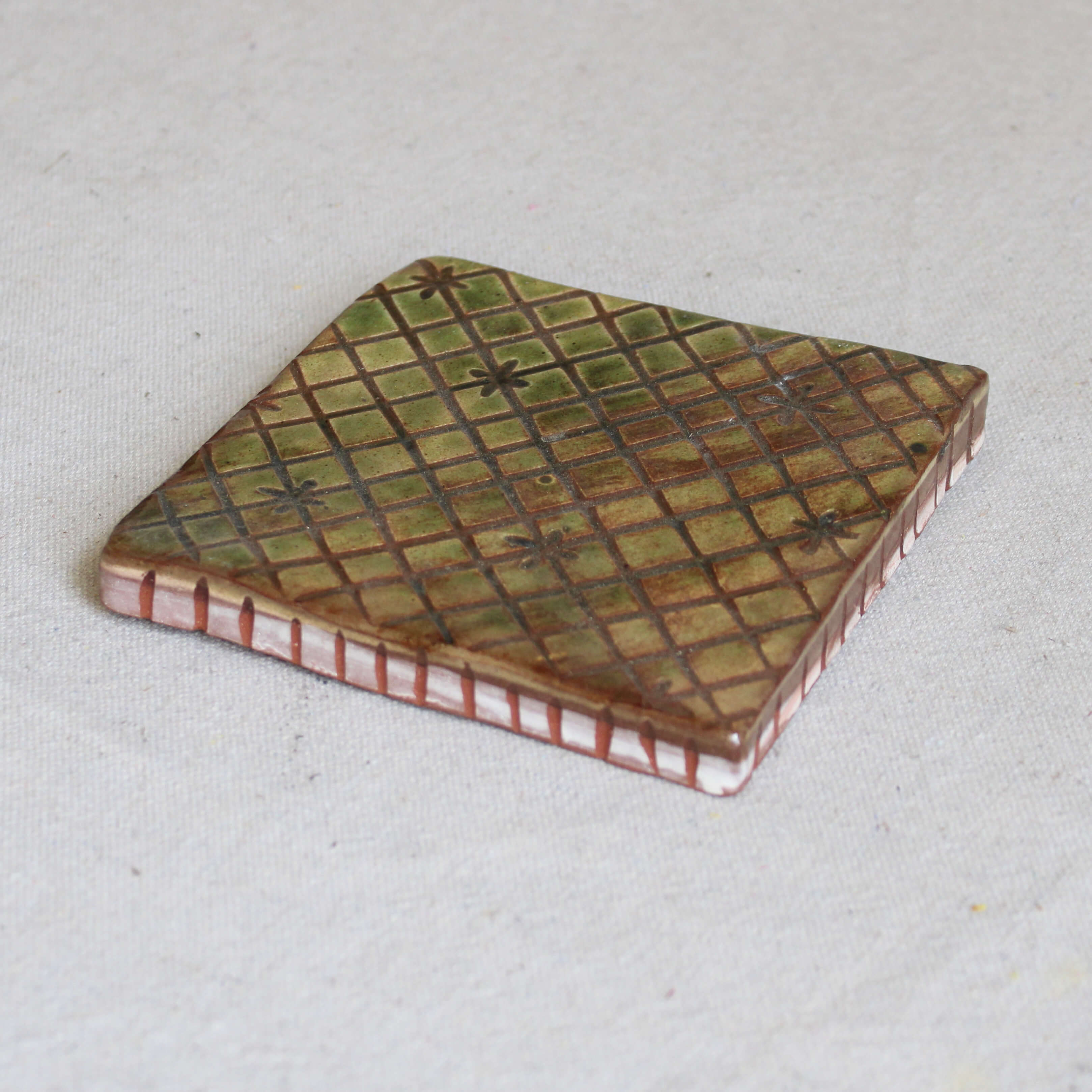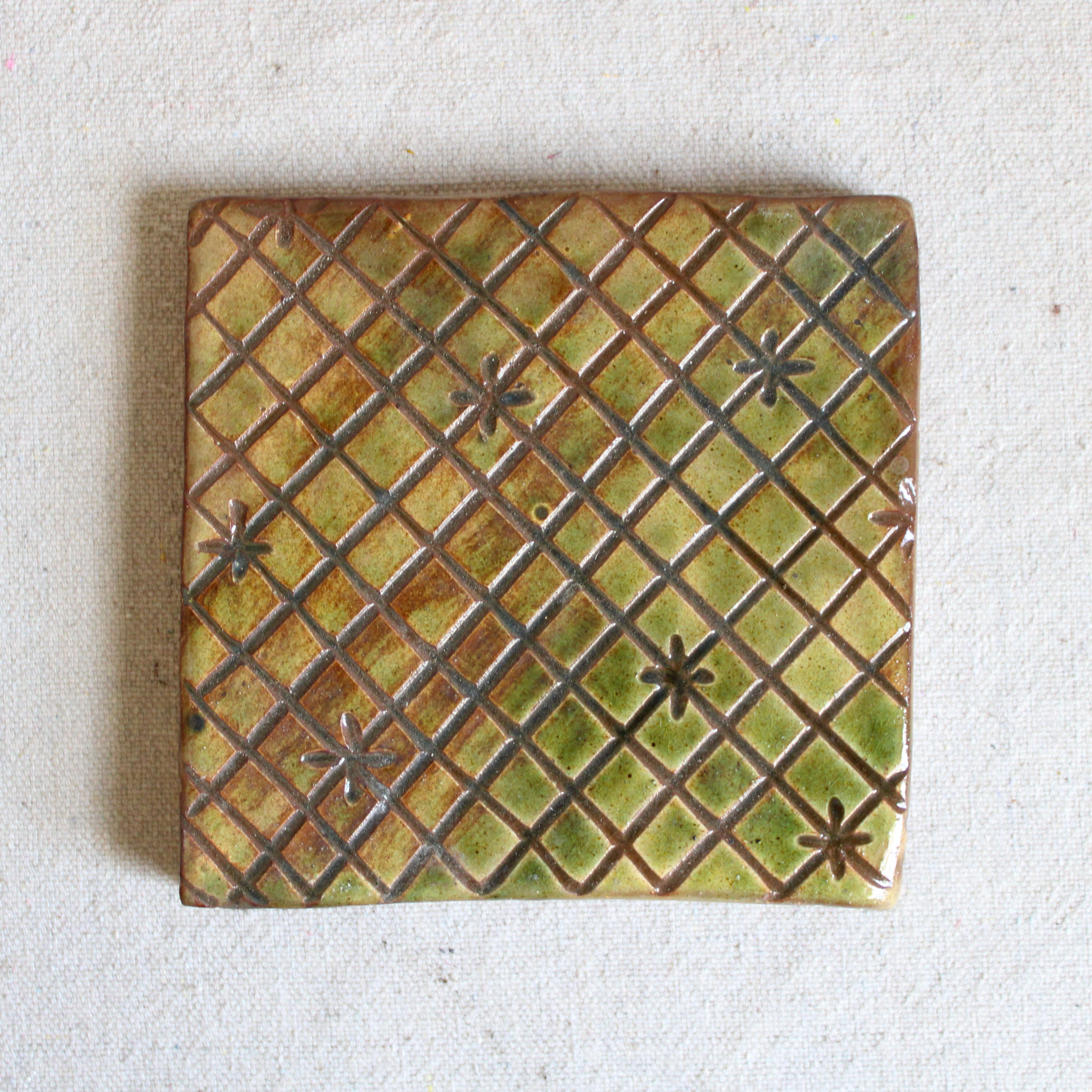 Designed for use as a trivet , this hand formed earthenware tile will grace any fine kitchen or dining table.