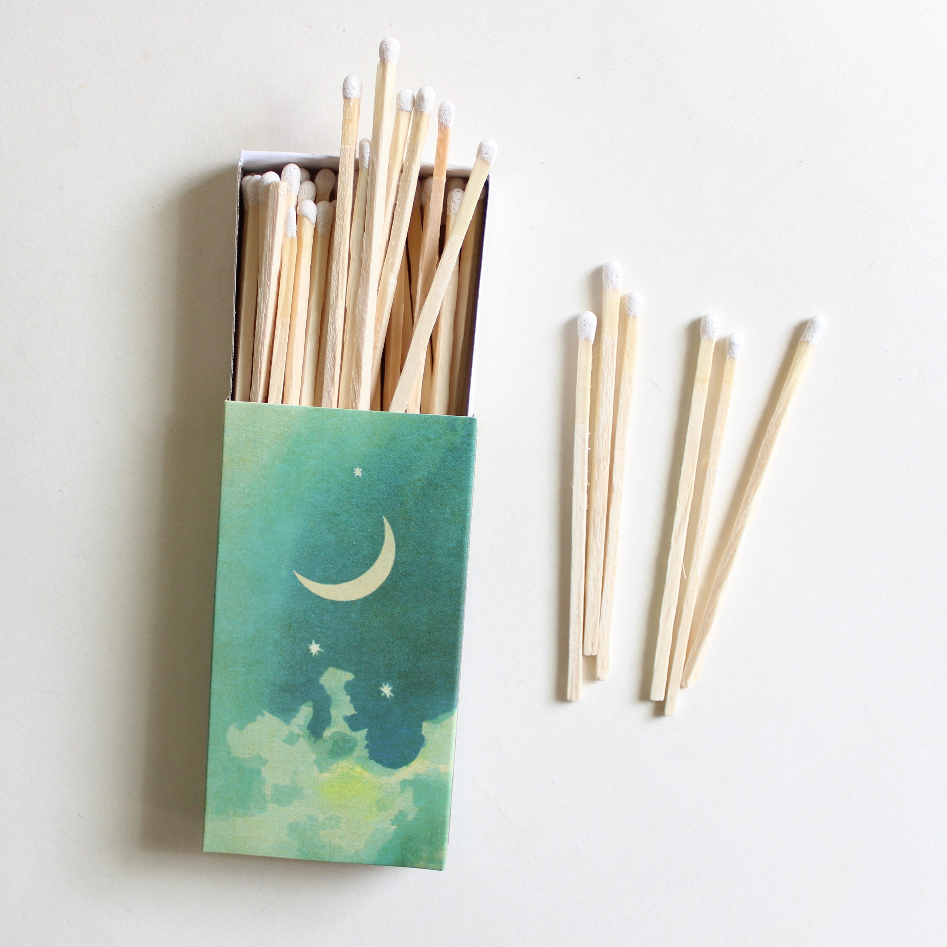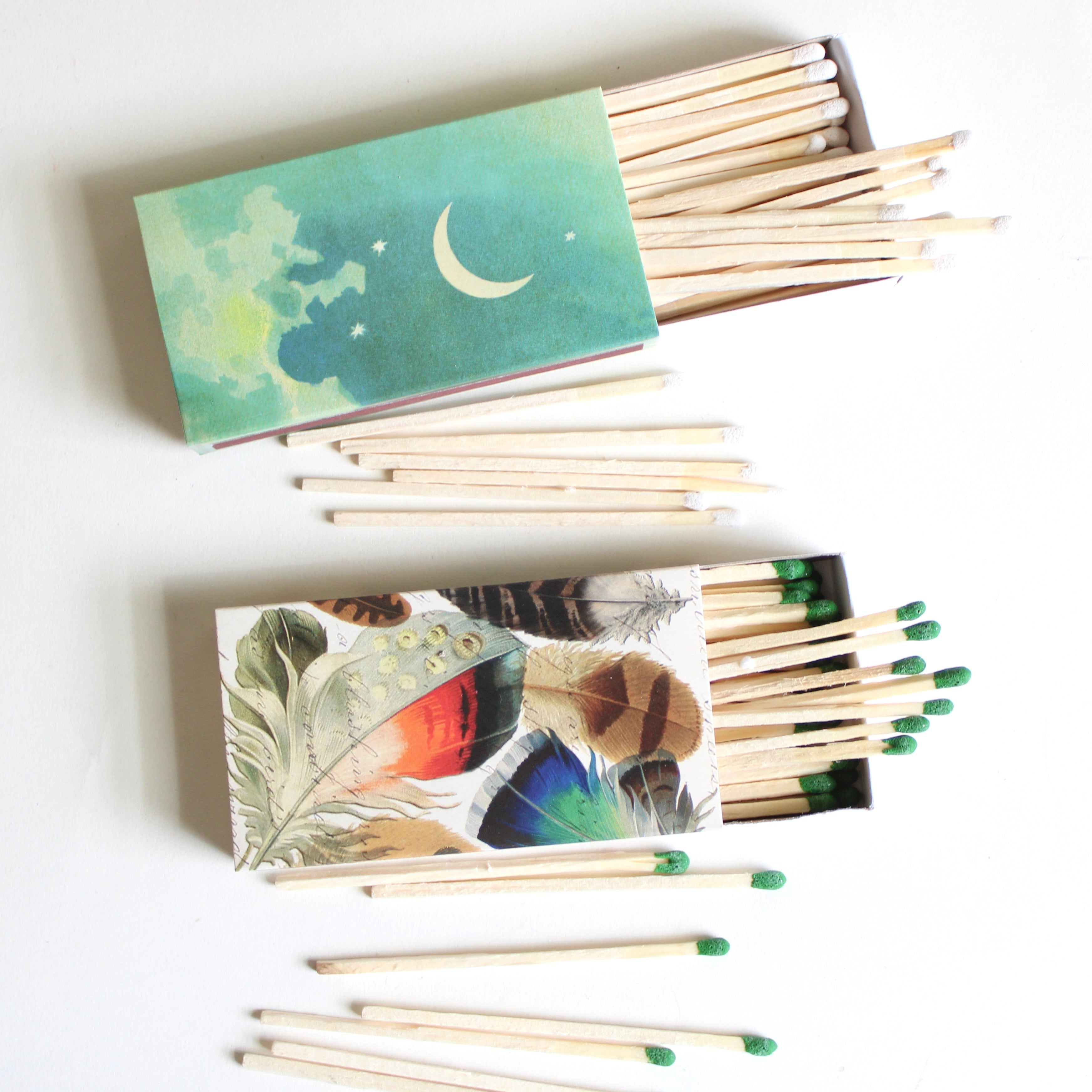 Form and function meet in this beautifully crafted matchbox—one you’ll want to keep on display. Choose from feather or moonlit sky designs, each a small everyday object made lovely.