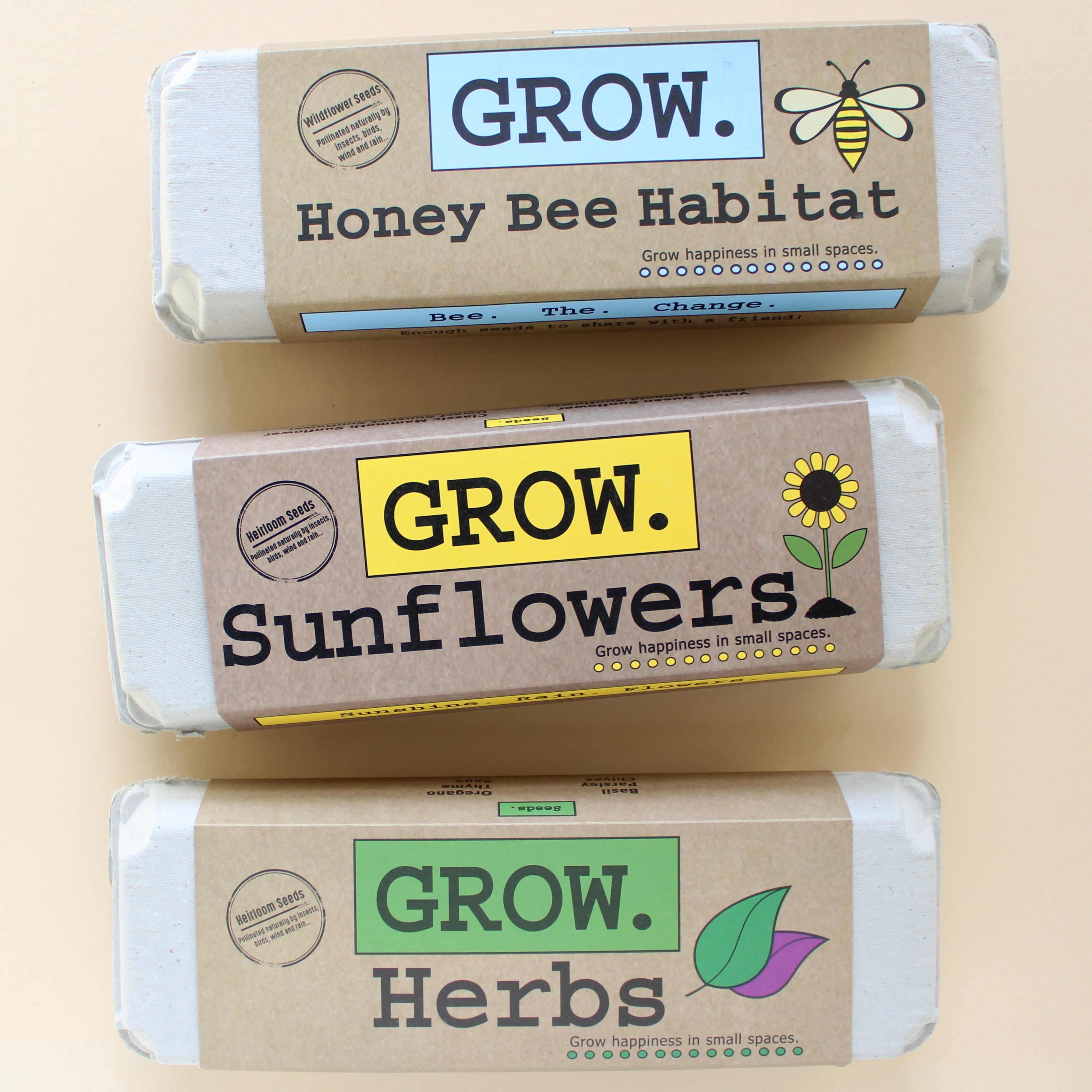 6 packages of Heirloom Sunflower Seeds, Starter Soil, Wooden Plant ID Stakes, Growing Instructions, Pencil & 100% Recycled Fiber Egg Carton Planter!