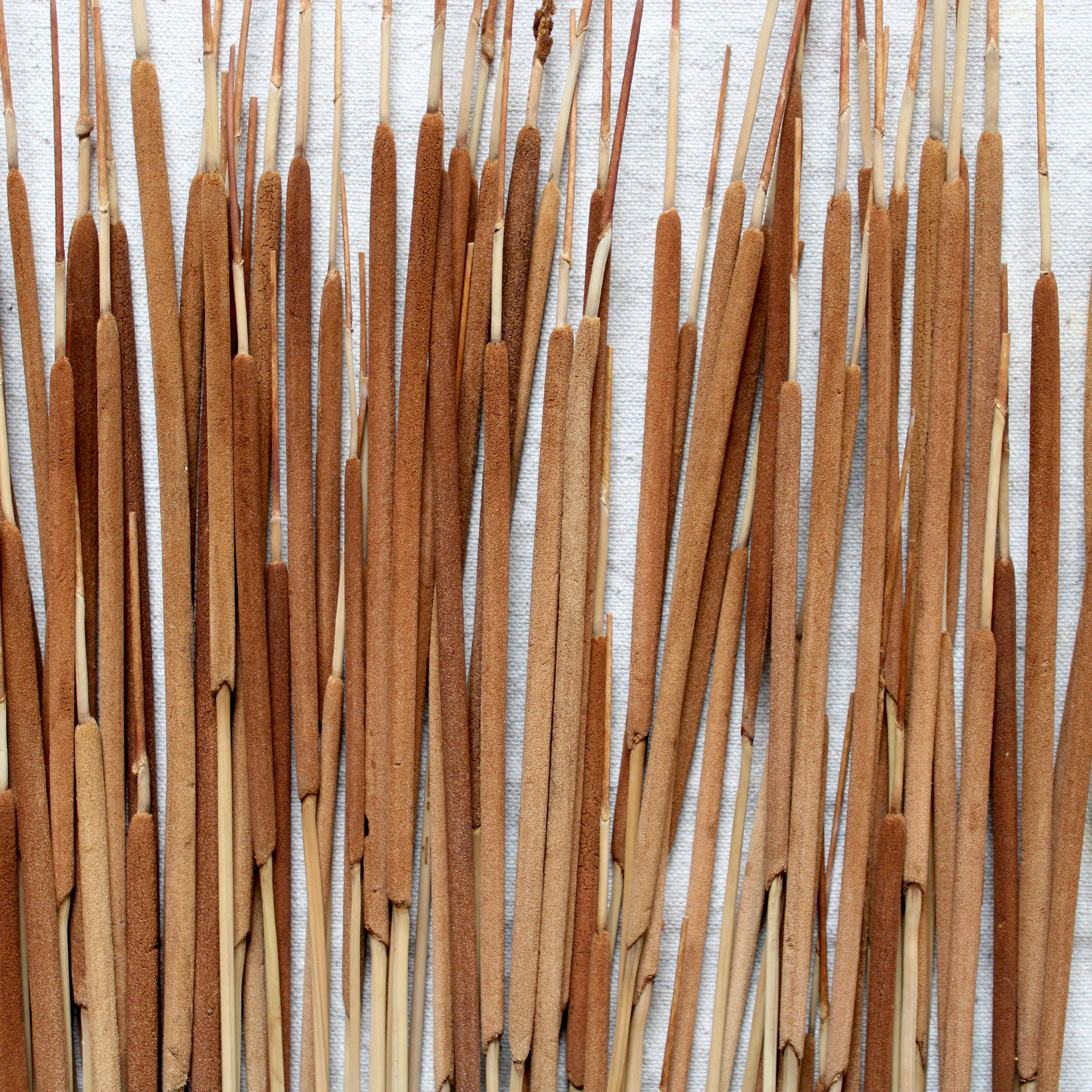 Create a tonal arrangement with deep, rich hues of natural tans and browns featuring dried Pencil Cattails. We love these unusual branches for adding intrigue, texture, and height to arrangements.