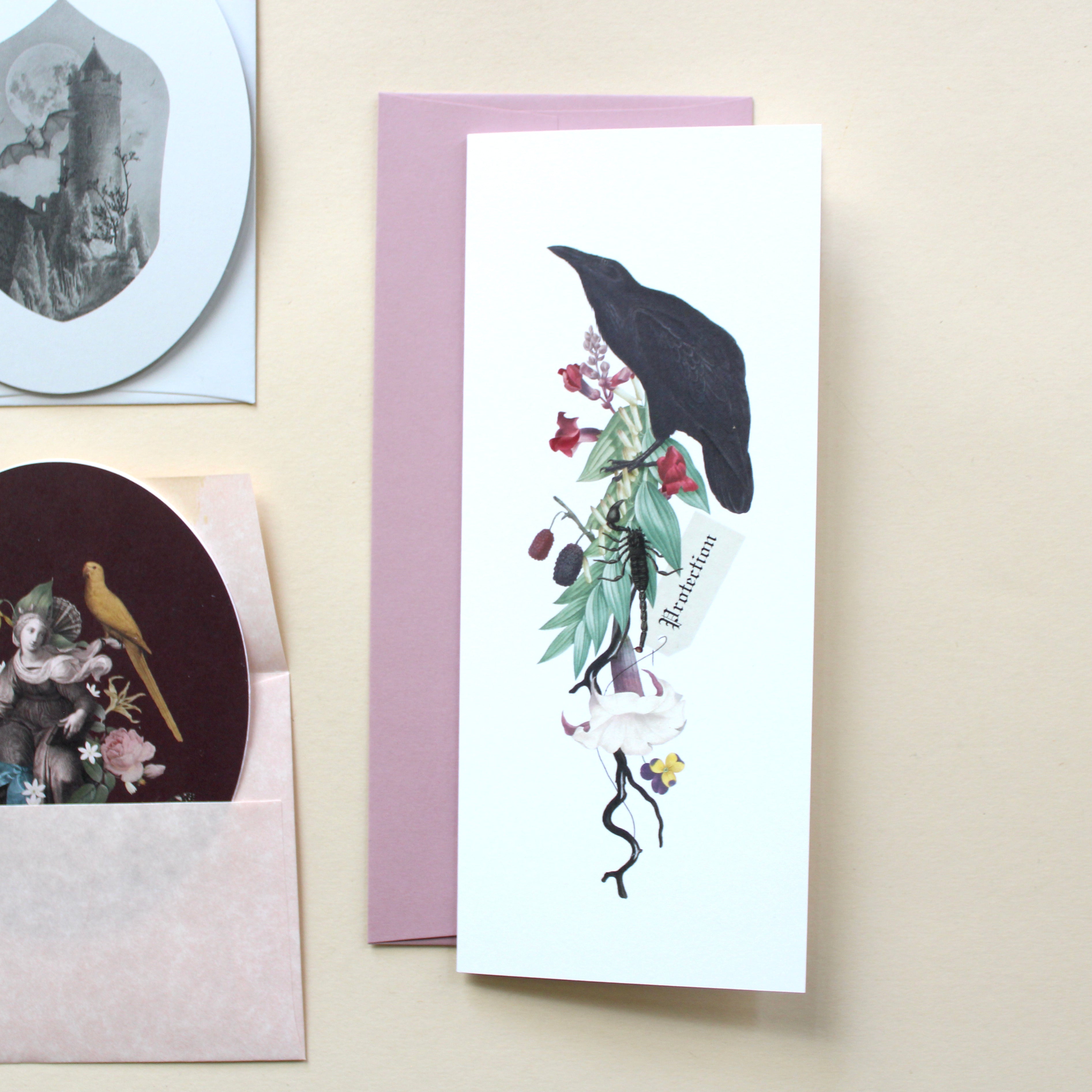 For long-distance notes or as a striking addition to a gift, this fantastical protection card leaves space inside for your own message—say exactly what you mean, your way.